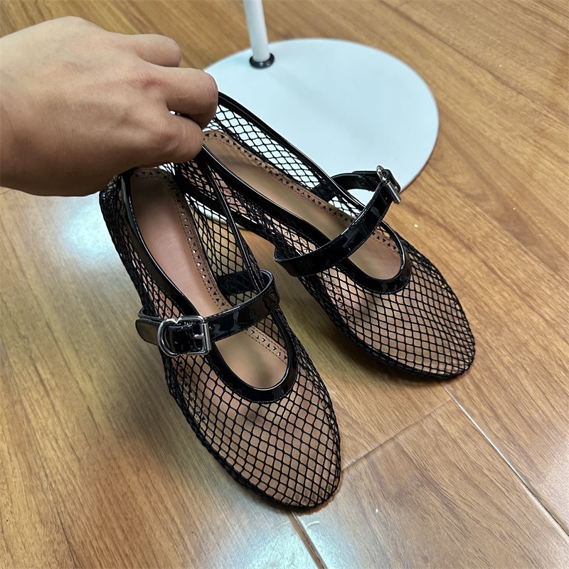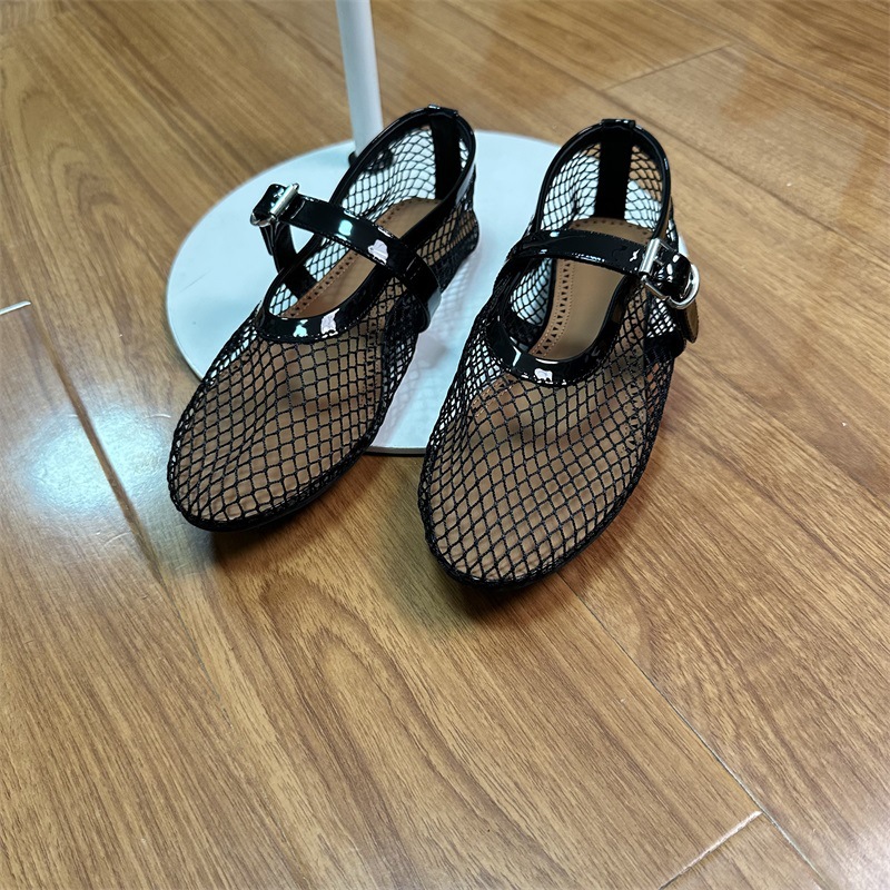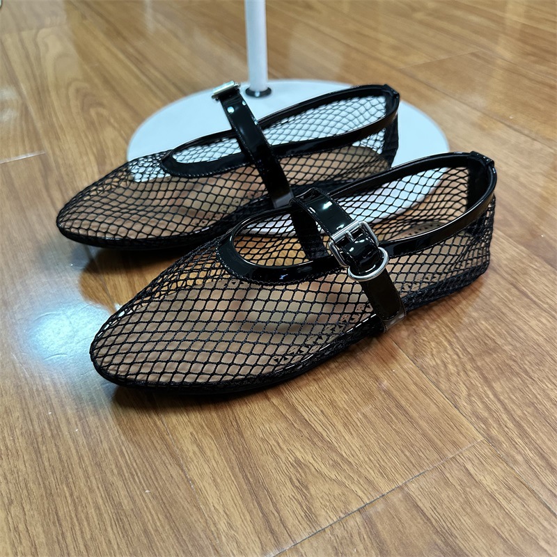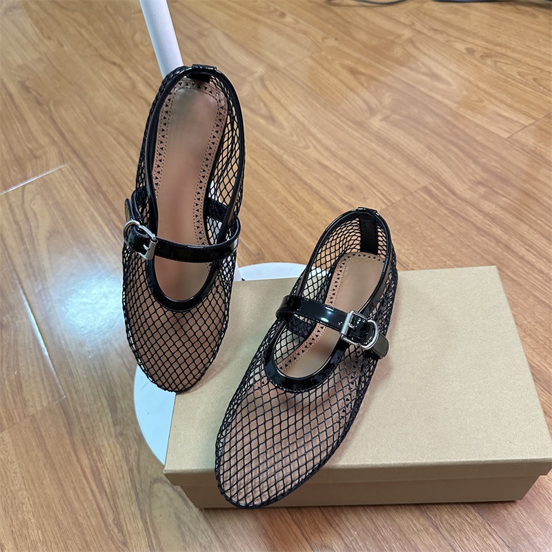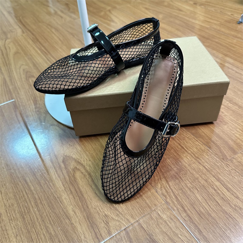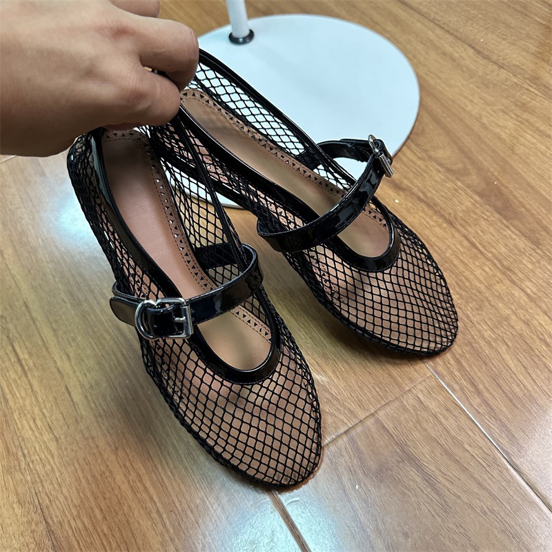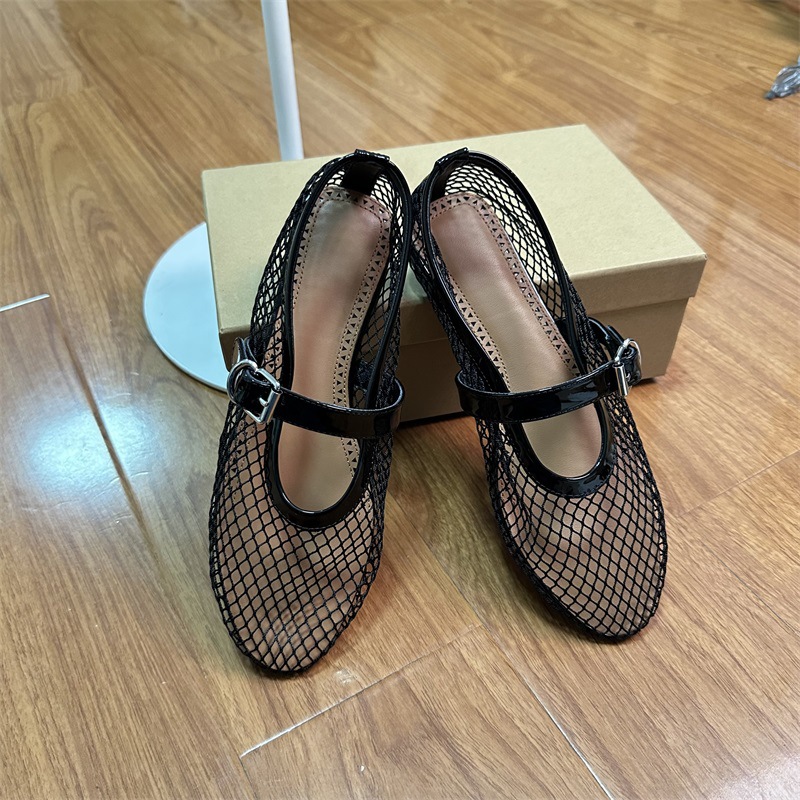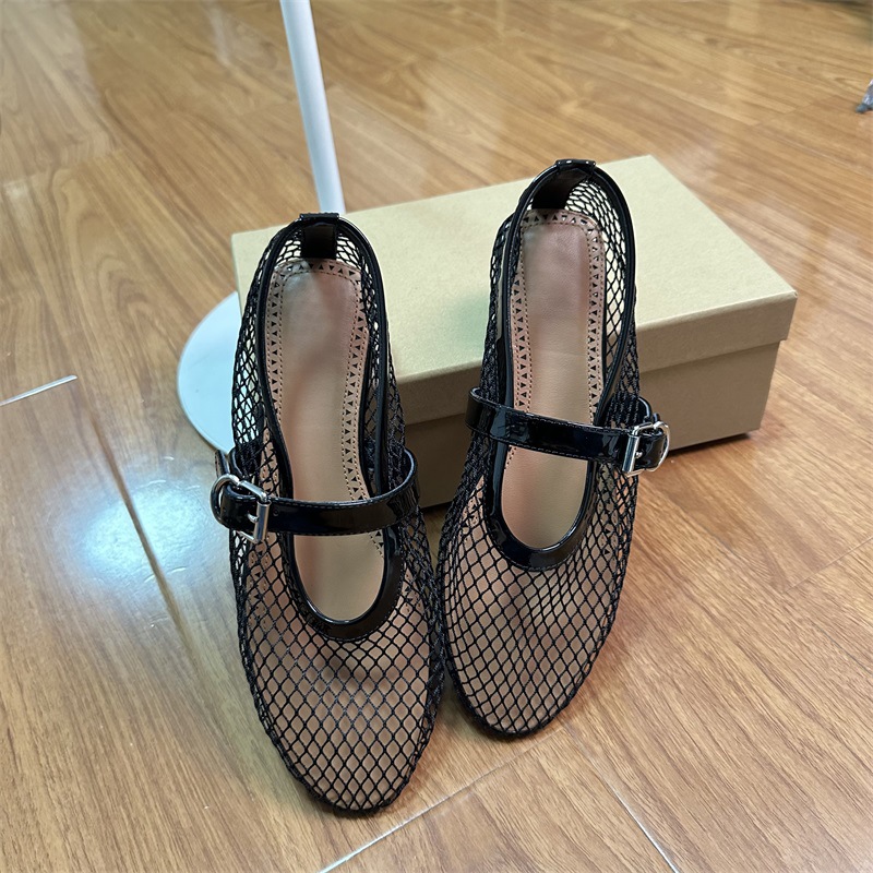 니치 퓨어 오리지널 새로운 정품 가죽 플랫 피스넷 신발 여성용 프렌치 레트로 할로우 통기성 짠 섹시한 메리 제인 신발