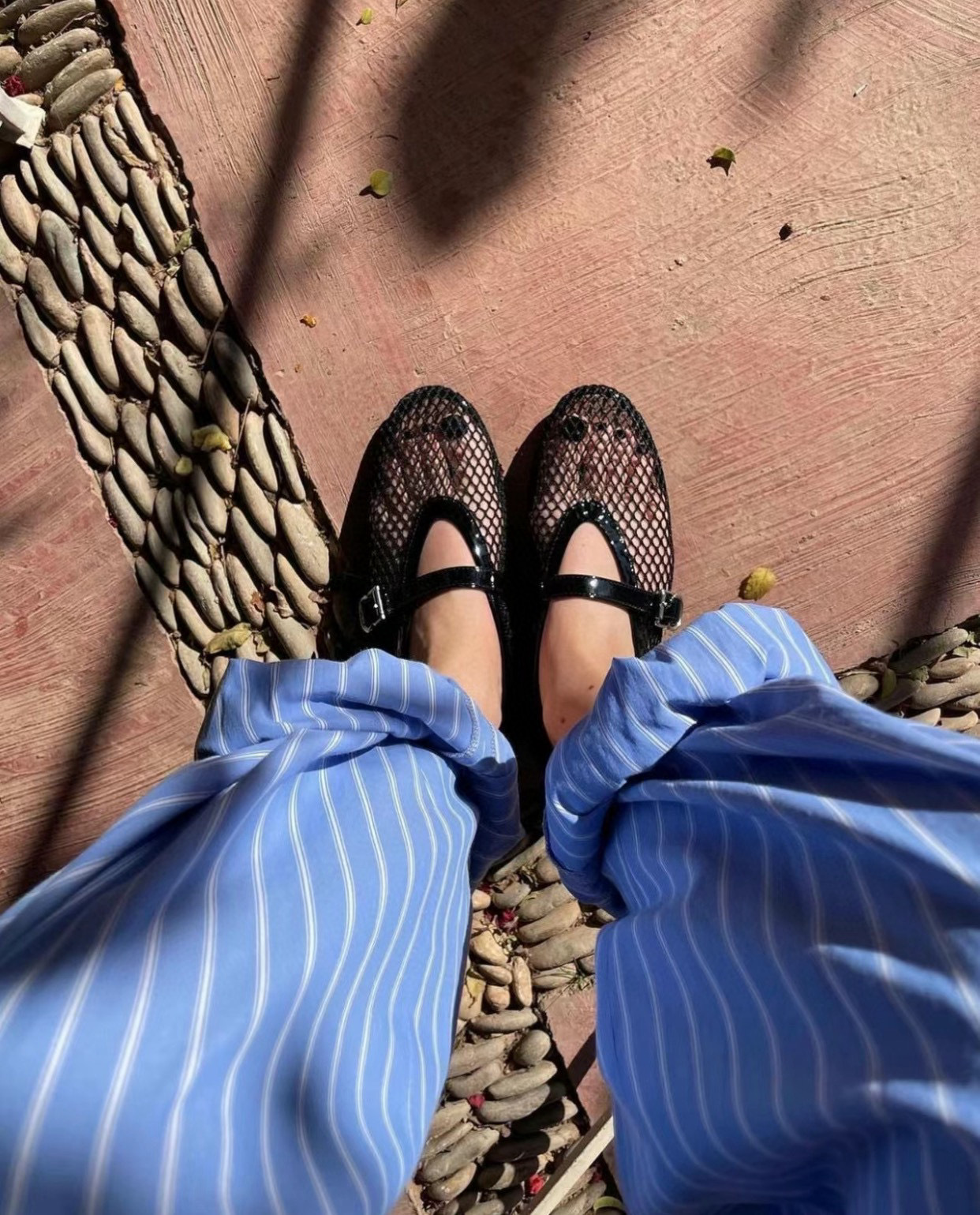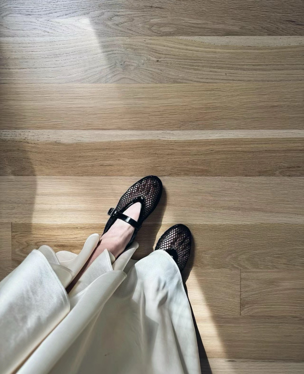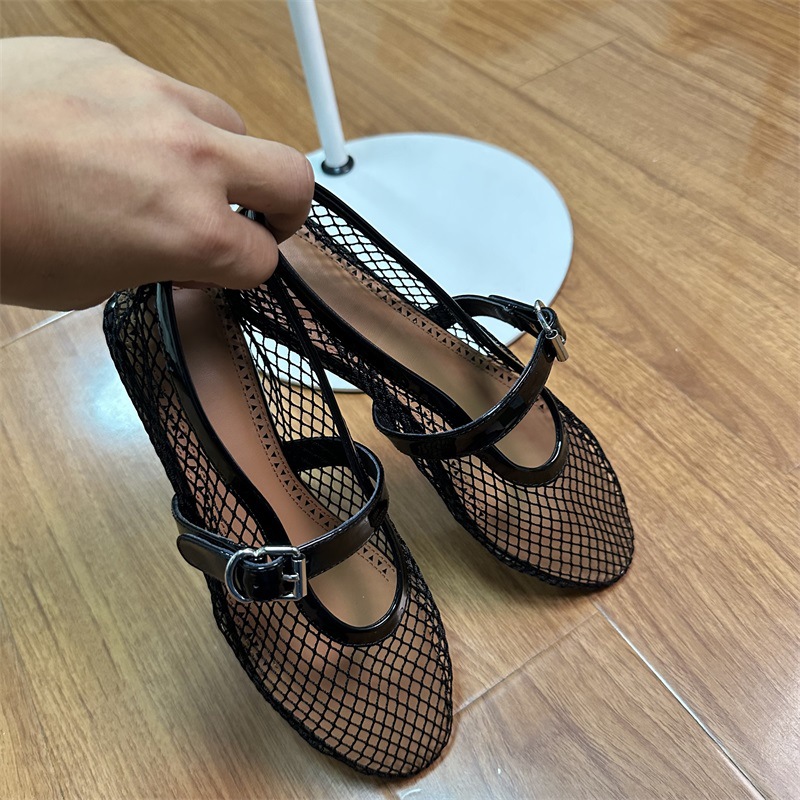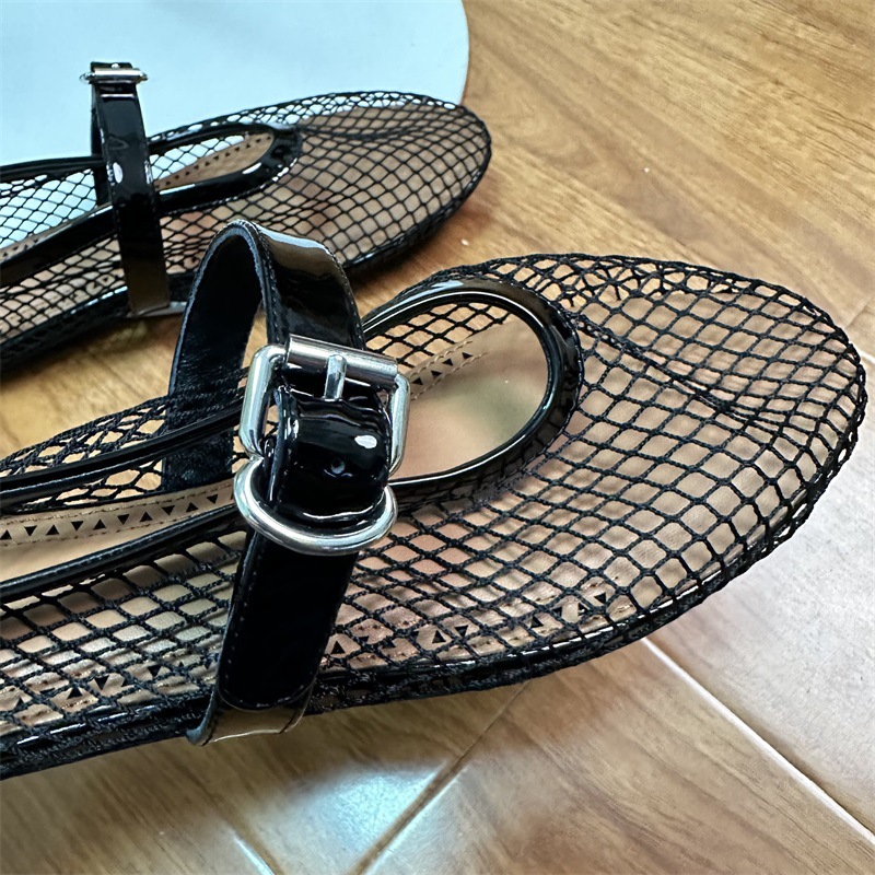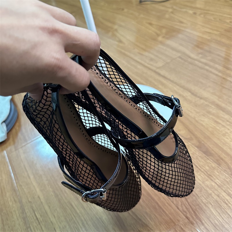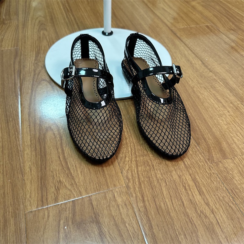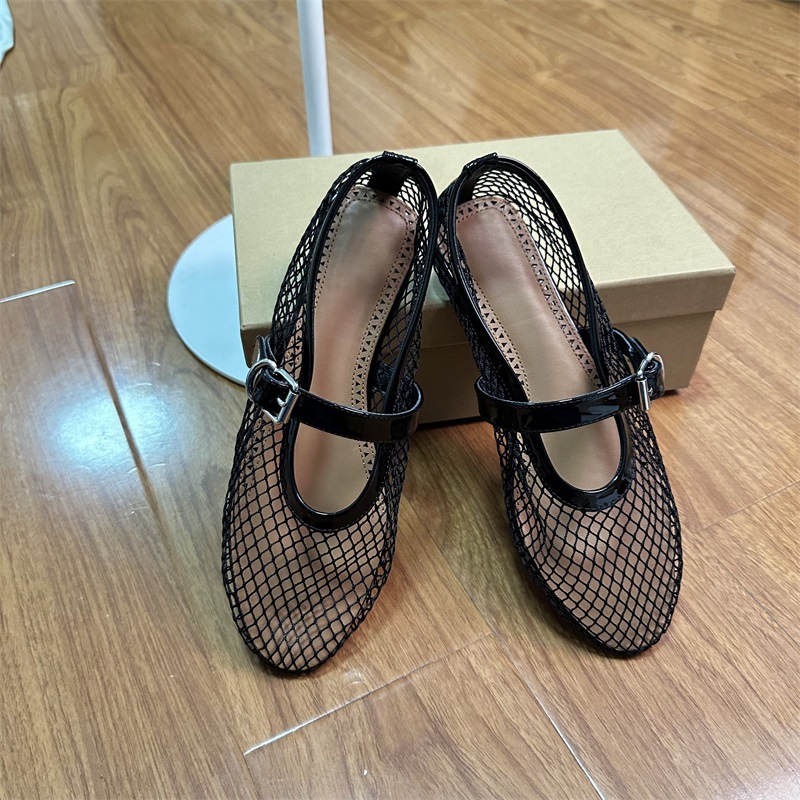 니치 퓨어 오리지널 새로운 정품 가죽 플랫 피스넷 신발 여성용 프렌치 레트로 할로우 통기성 짠 섹시한 메리 제인 신발