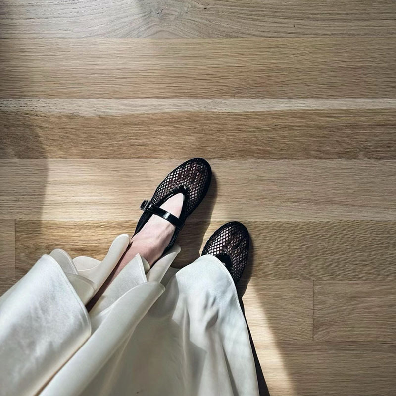 니치 퓨어 오리지널 새로운 정품 가죽 플랫 피스넷 신발 여성용 프렌치 레트로 할로우 통기성 짠 섹시한 메리 제인 신발스토어 가기