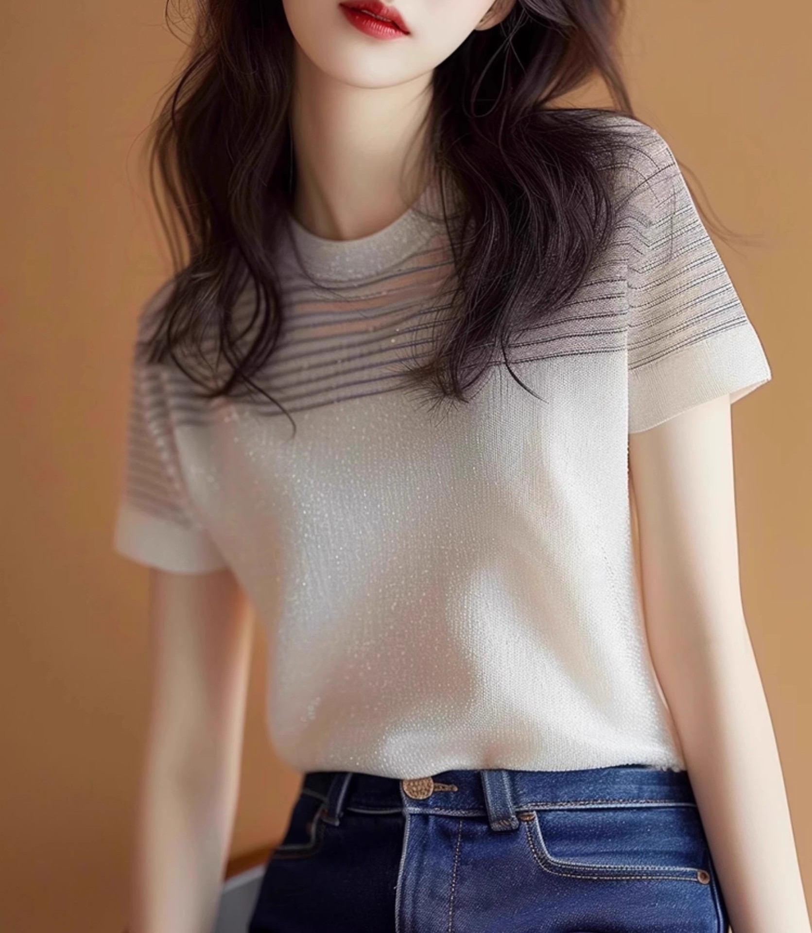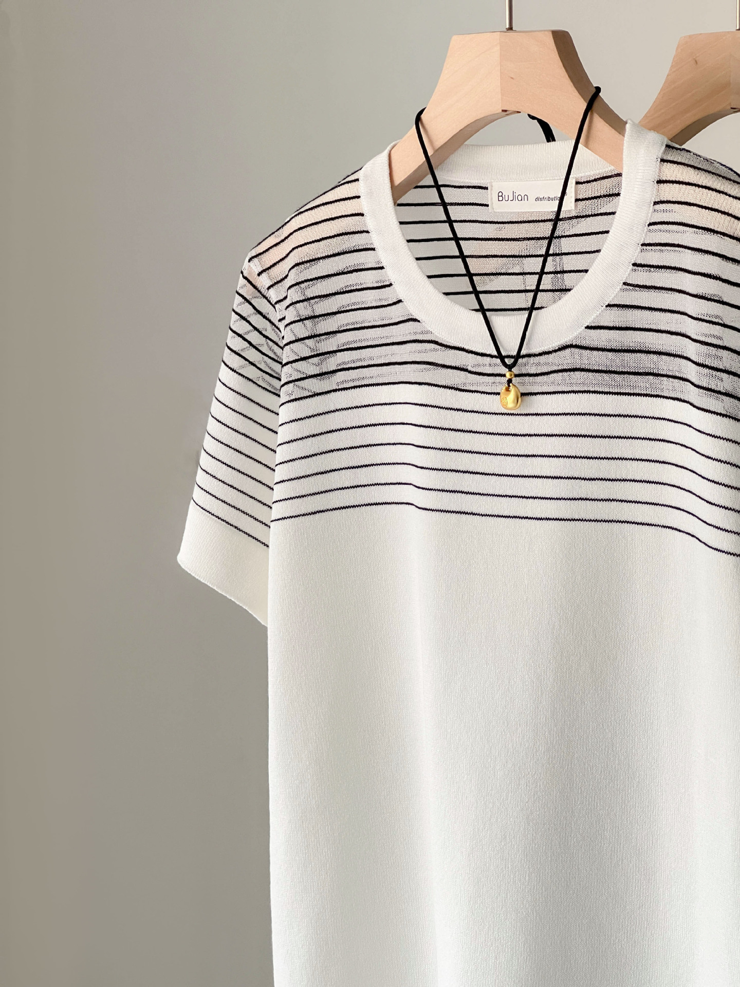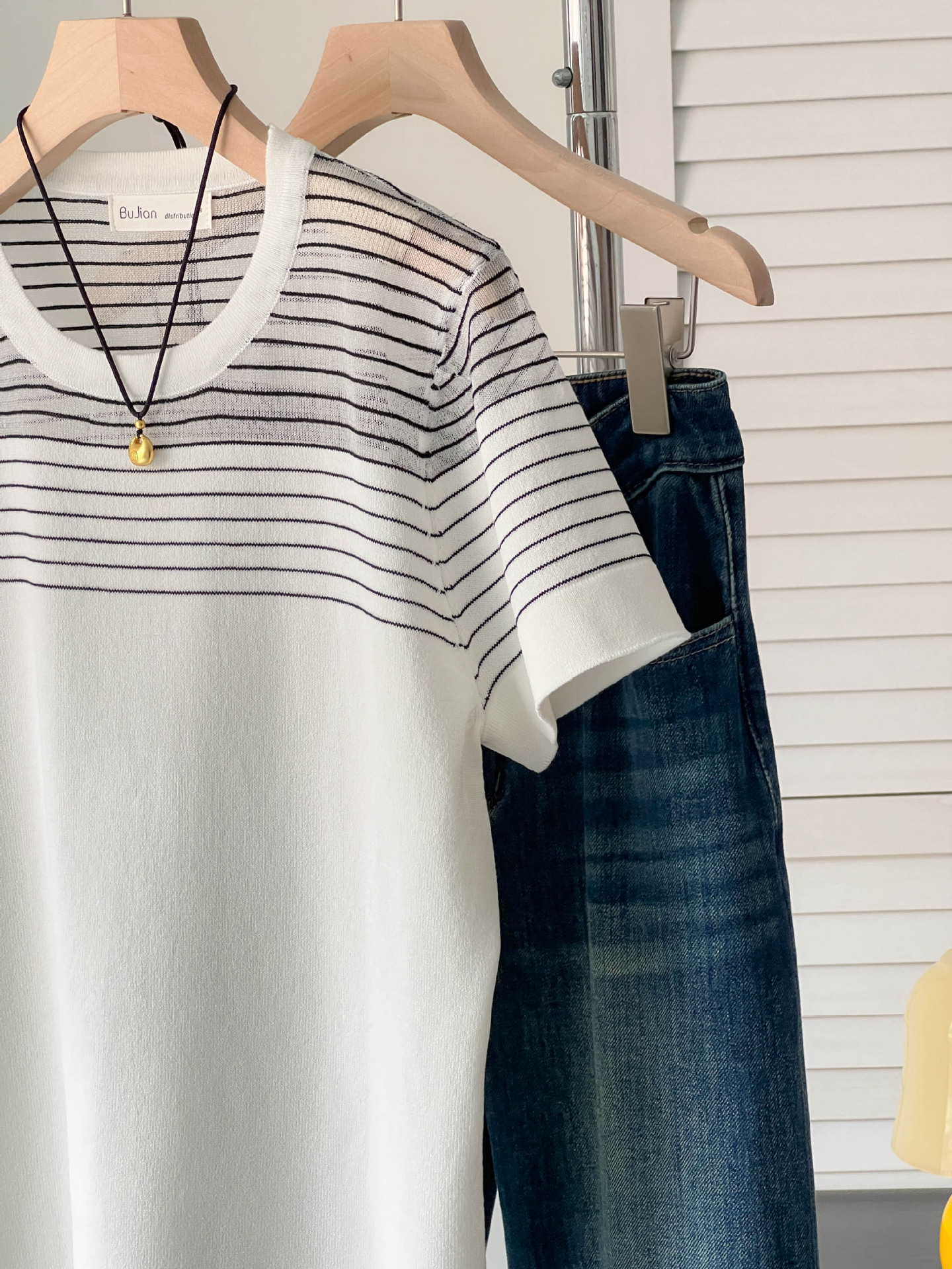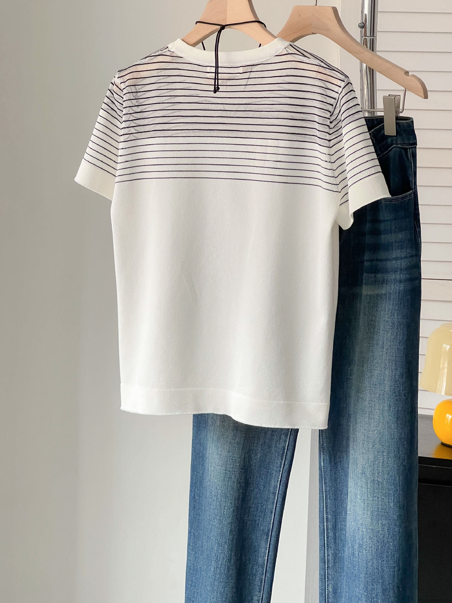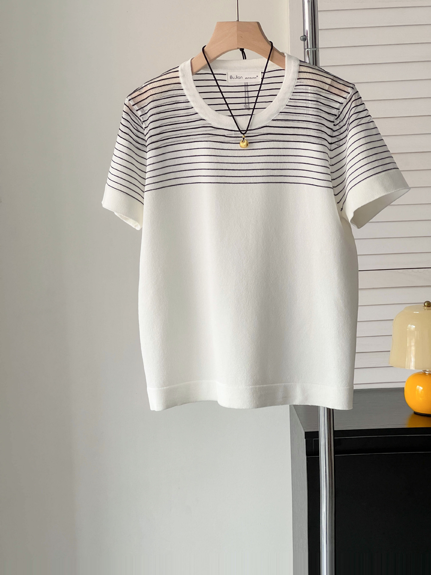 반팔 티셔츠 여성 2024 년 새로운 여름 유럽 셔츠 디자이너 여성 틈새 프랑스 크루 넥 탑