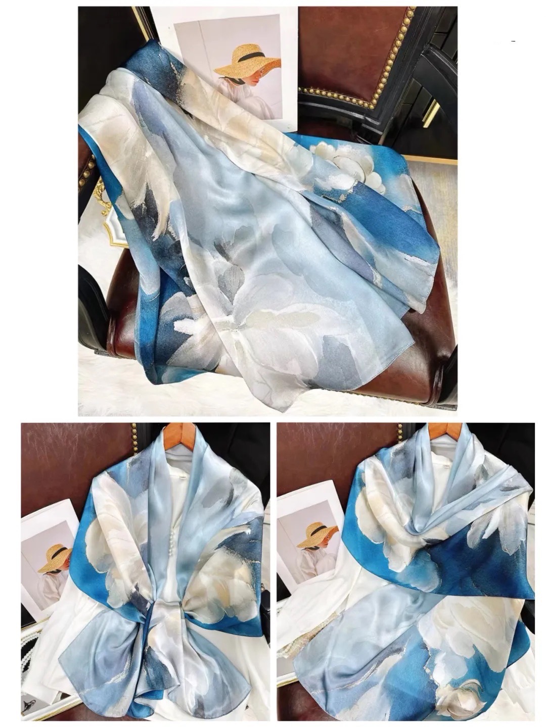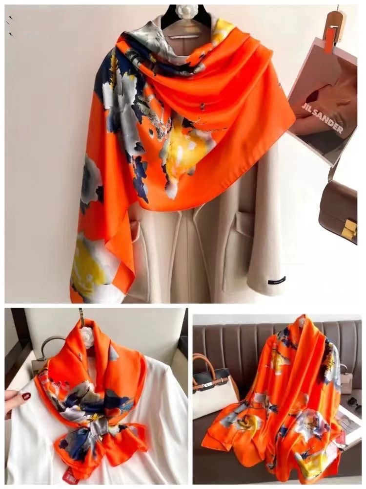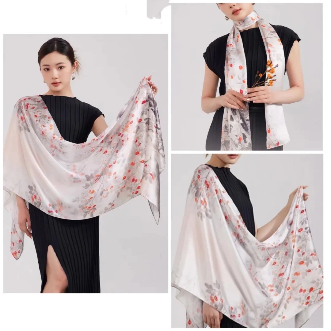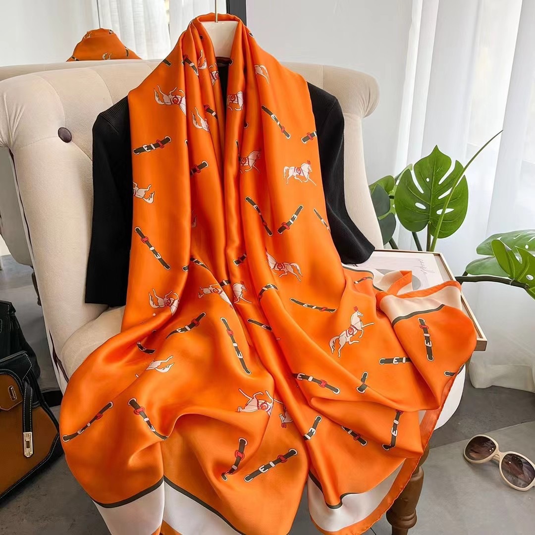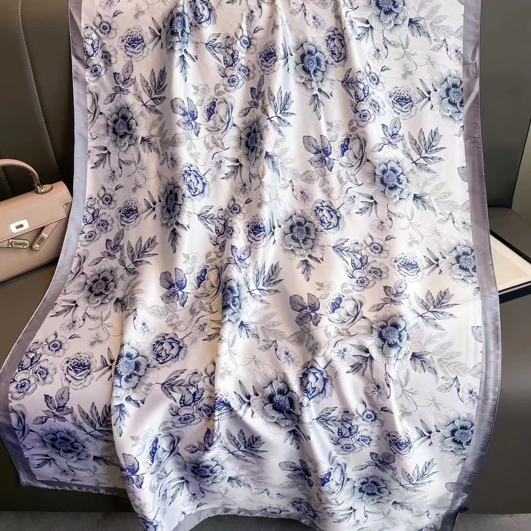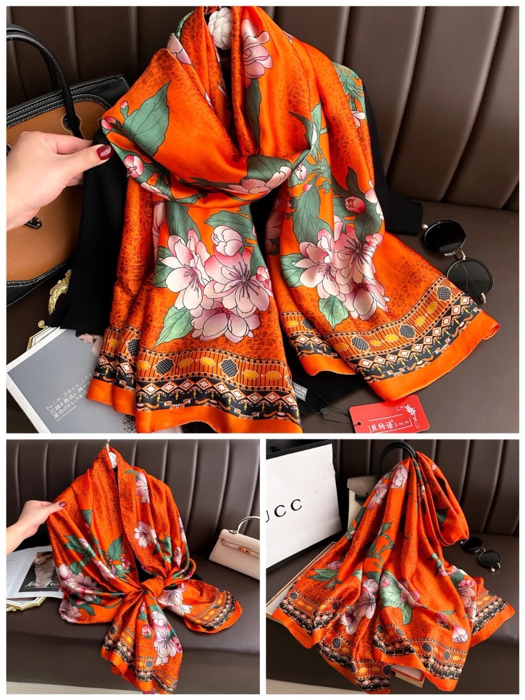24 봄과 여름 새로운 인쇄 된 리 브로케이드 새틴 긴 스카프 여름 태양 보호 목도리 외국 스타일 해변 새로운 실크 새틴 스카프