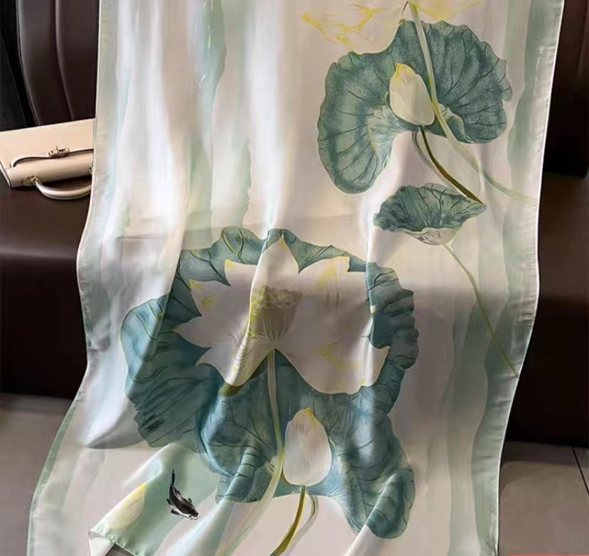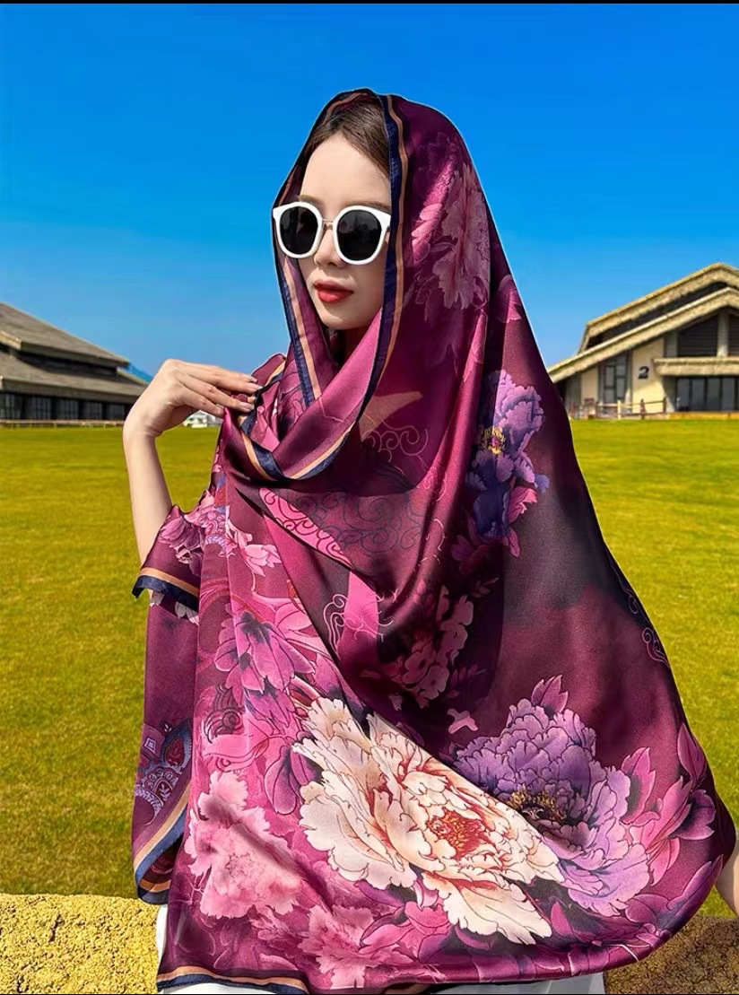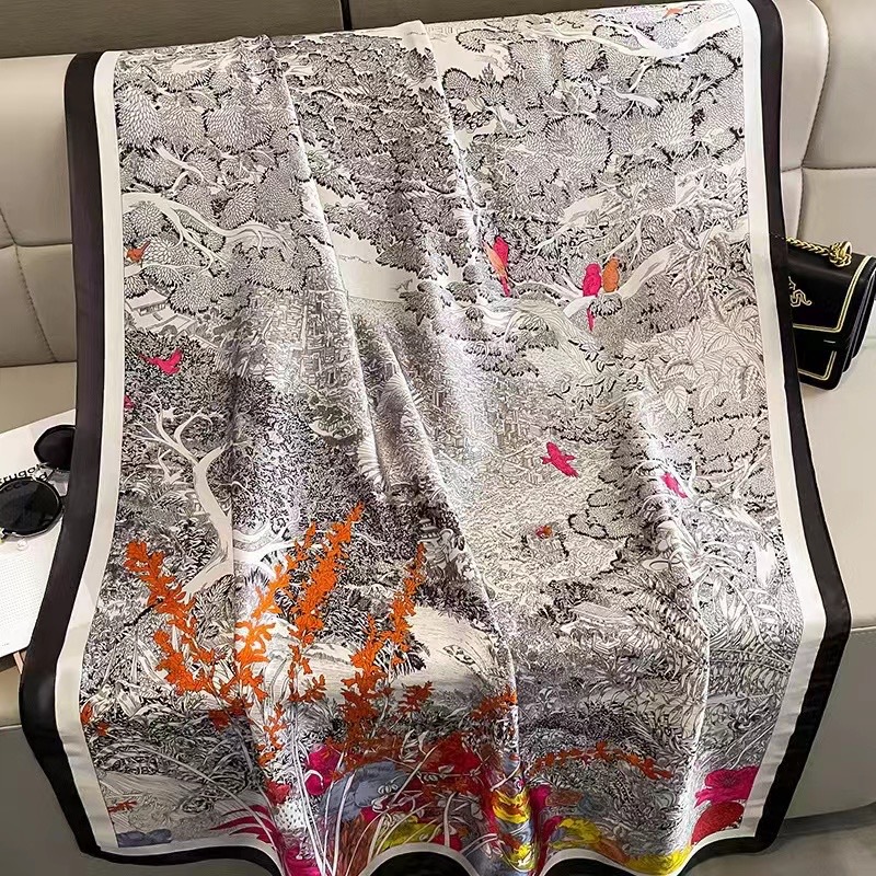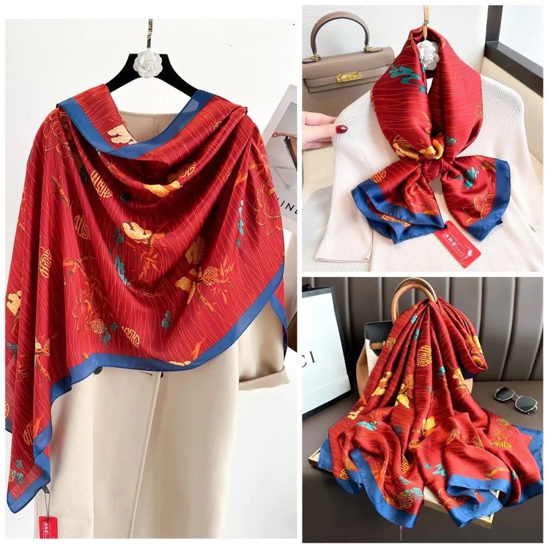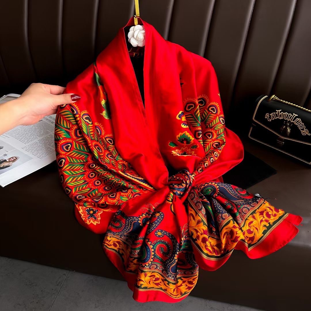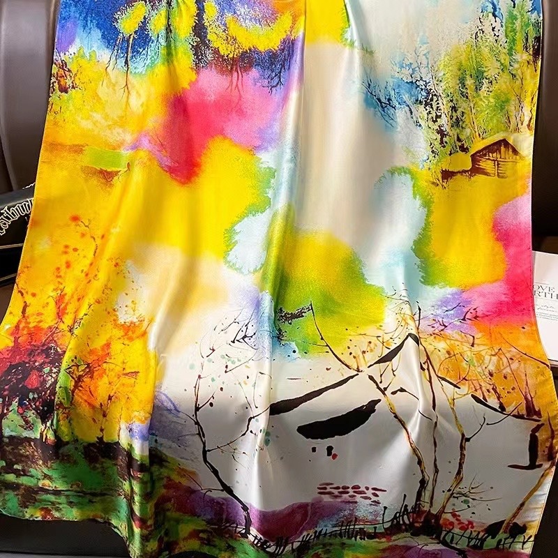 24 봄과 여름 새로운 인쇄 된 리 브로케이드 새틴 긴 스카프 여름 태양 보호 목도리 외국 스타일 해변 새로운 실크 새틴 스카프