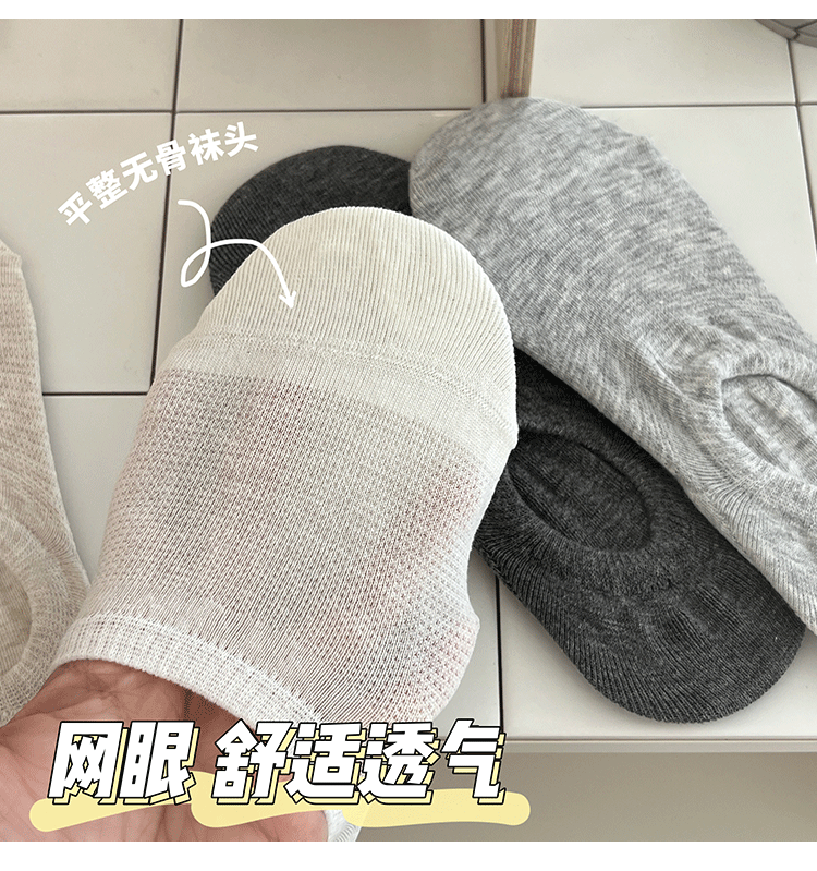 기본 조커 컬러 매칭 "뼈없는 메쉬 보트 양말 여성 보이지 않는 여름 얇은 빗질 코튼 양말 여성용 짧은 양말 미끄럼 방지
