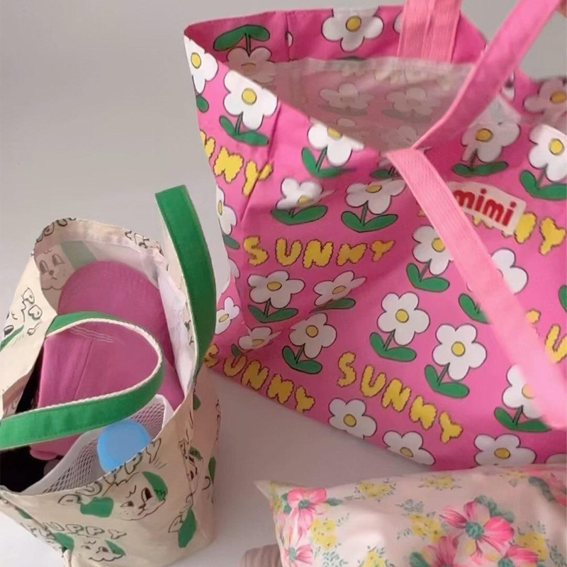 Ins 스타일 한국 핸드 백 방수 가방 비치 백 도시락 점심 가방 귀여운 인쇄 3 차원 어깨 핸드백스토어 가기