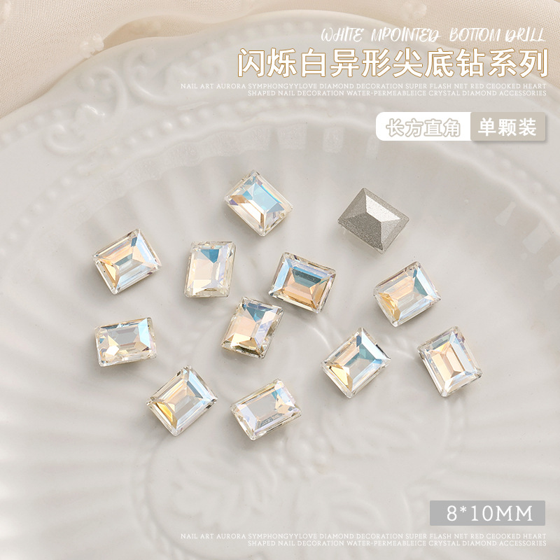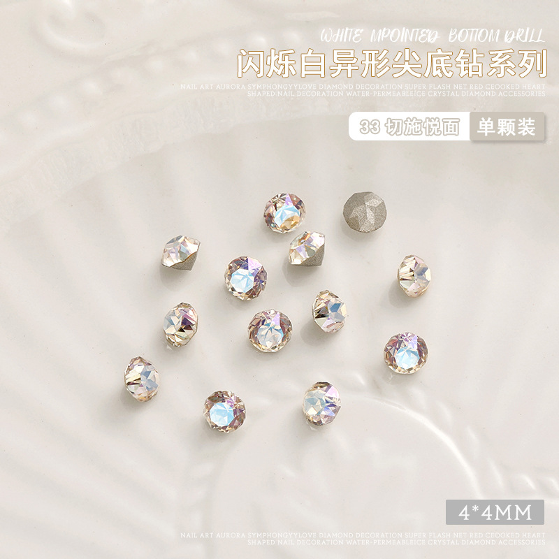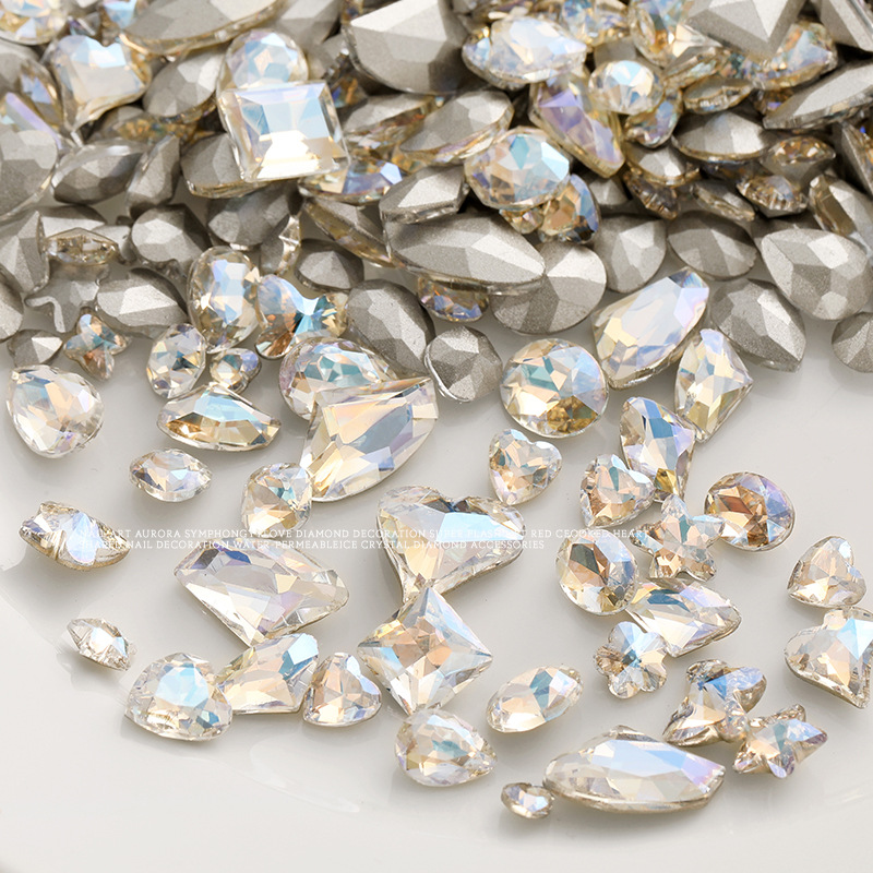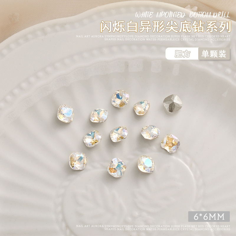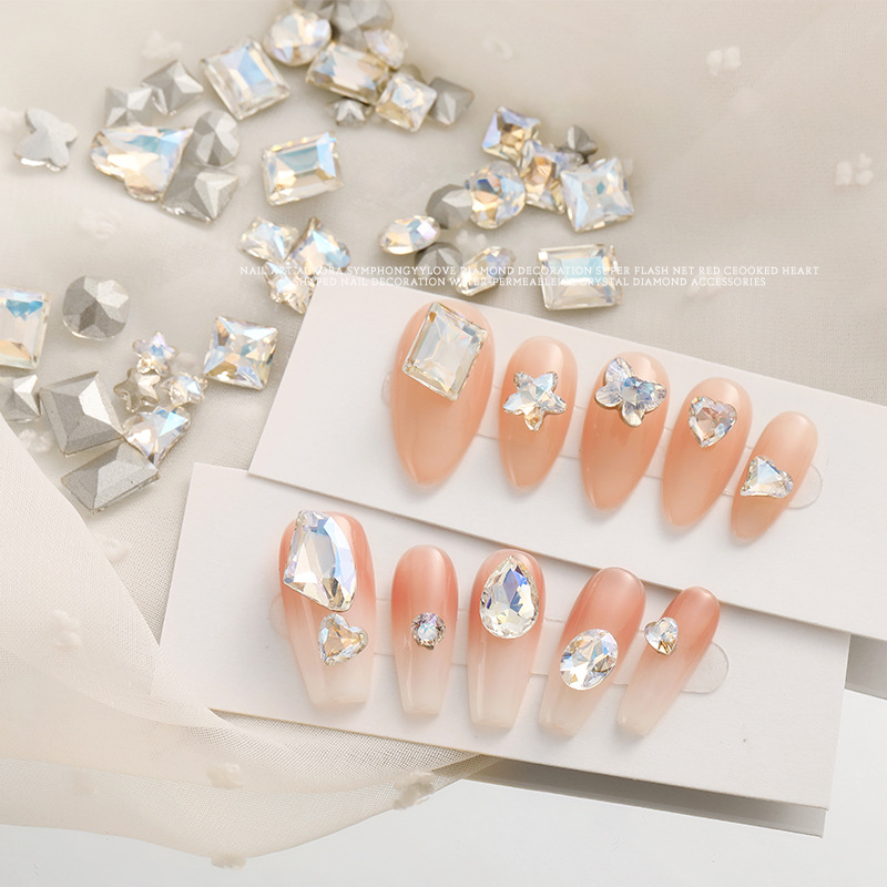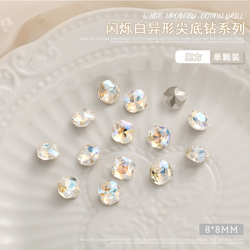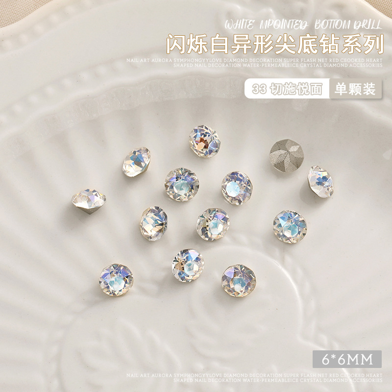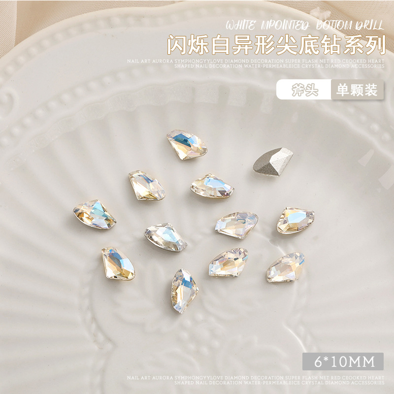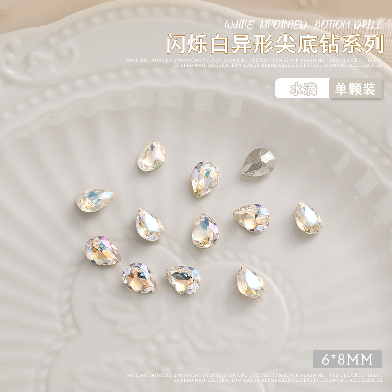 화이트 뾰족한 바닥의 초반짝이 특수 모양 네일 크리스탈 다이아몬드, 편심 하트 모양 라운드 다이아몬드, 네일 아트 장식품 도매, 반짝이는 다이아몬드스토어 가기