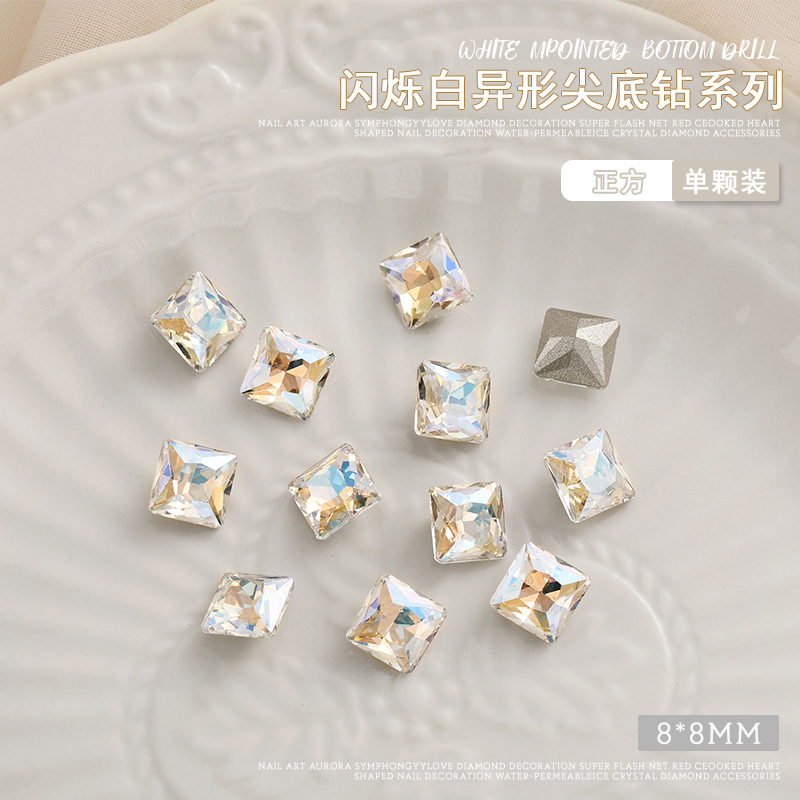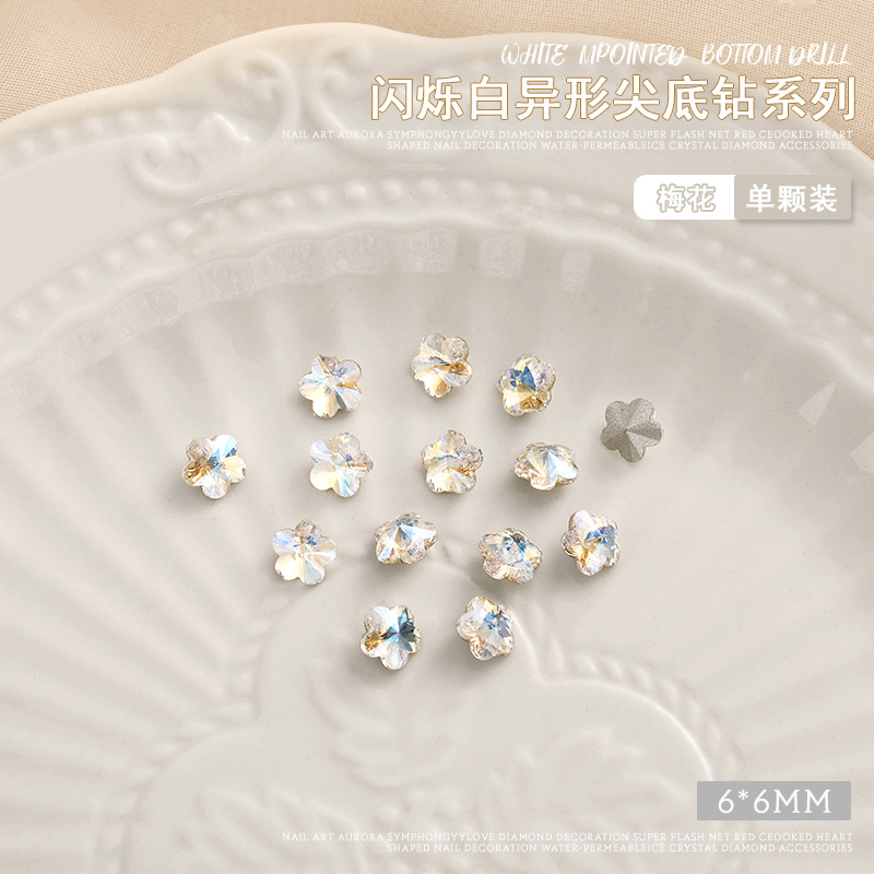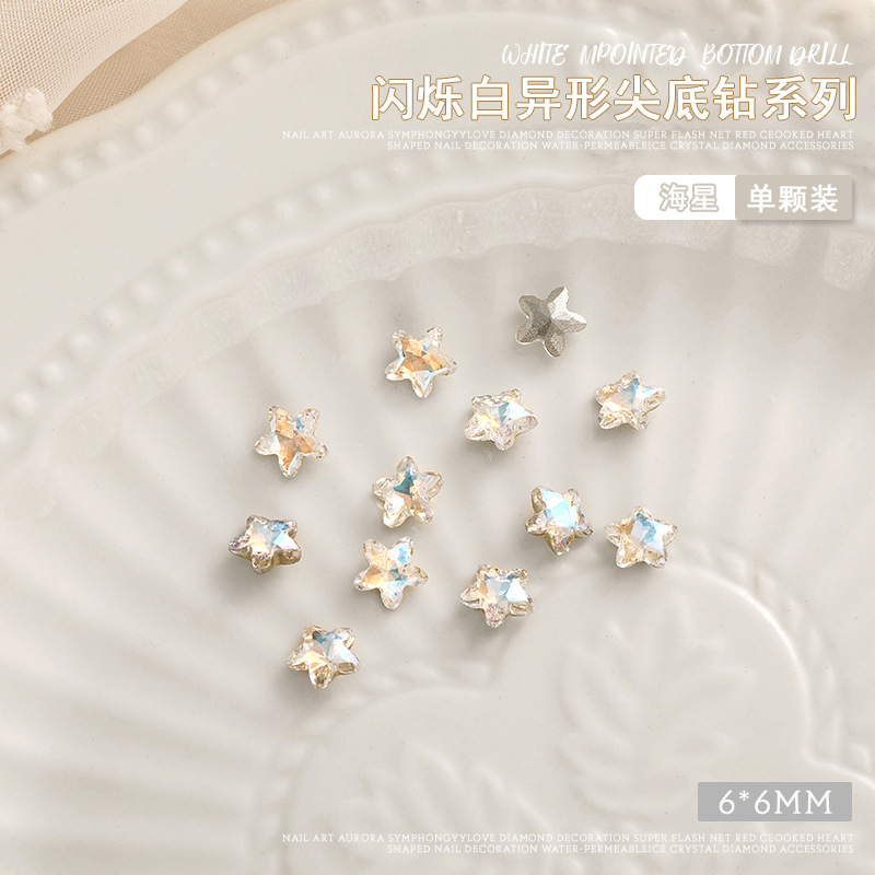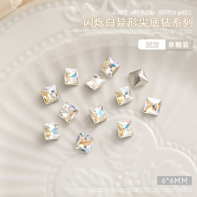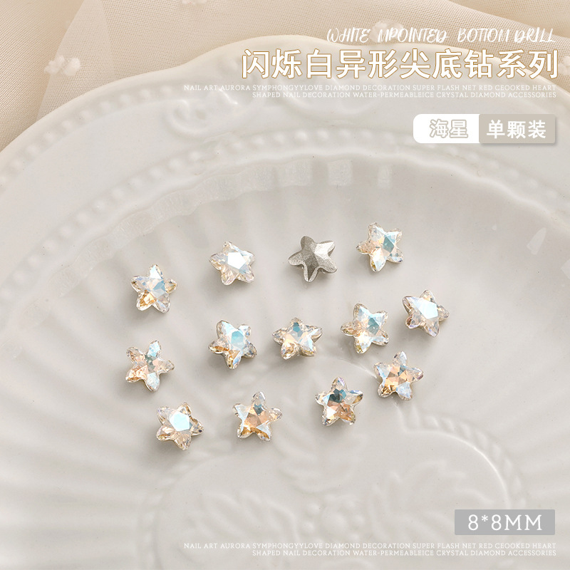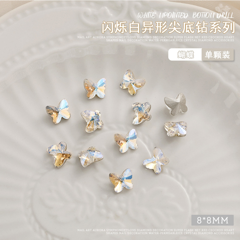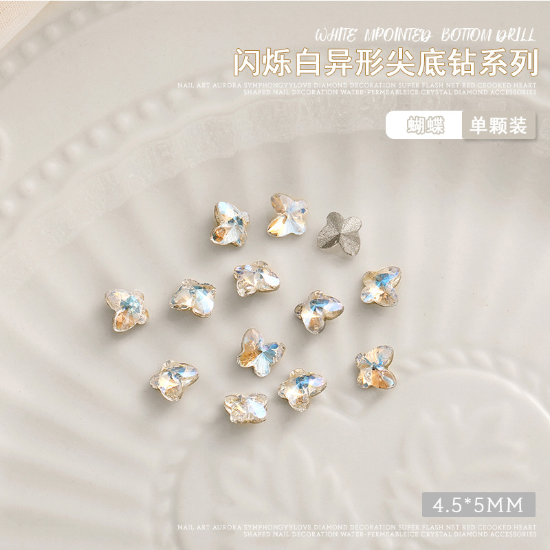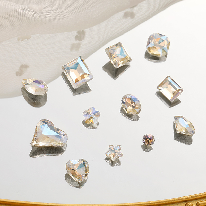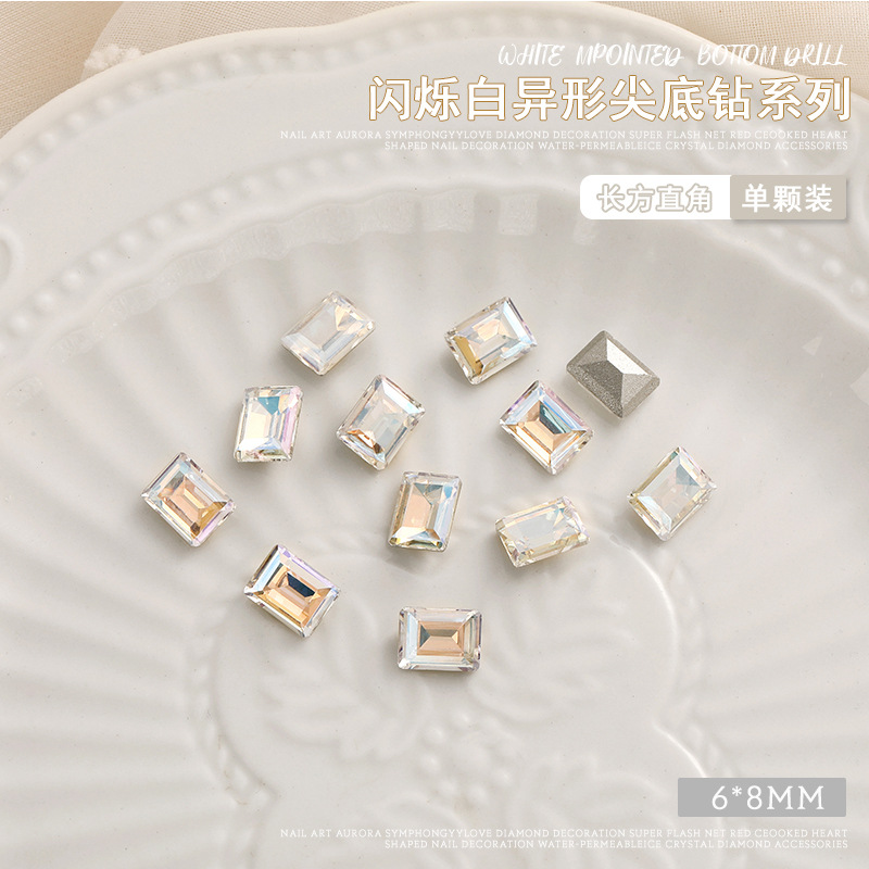 화이트 뾰족한 바닥의 초반짝이 특수 모양 네일 크리스탈 다이아몬드, 편심 하트 모양 라운드 다이아몬드, 네일 아트 장식품 도매, 반짝이는 다이아몬드스토어 가기