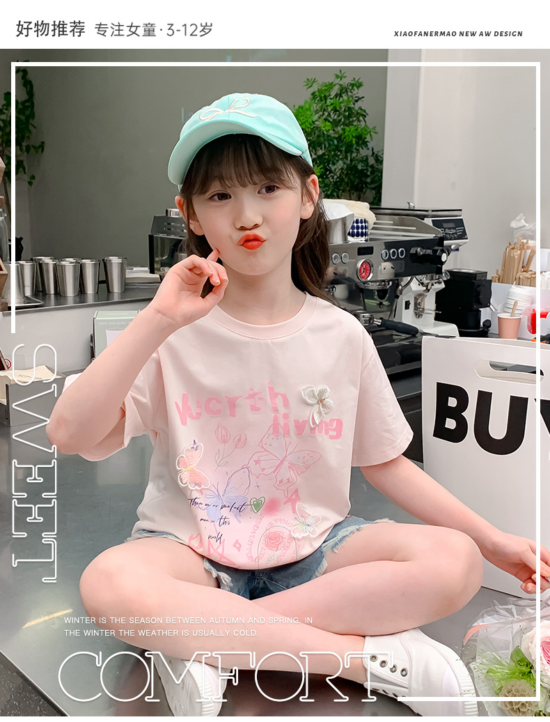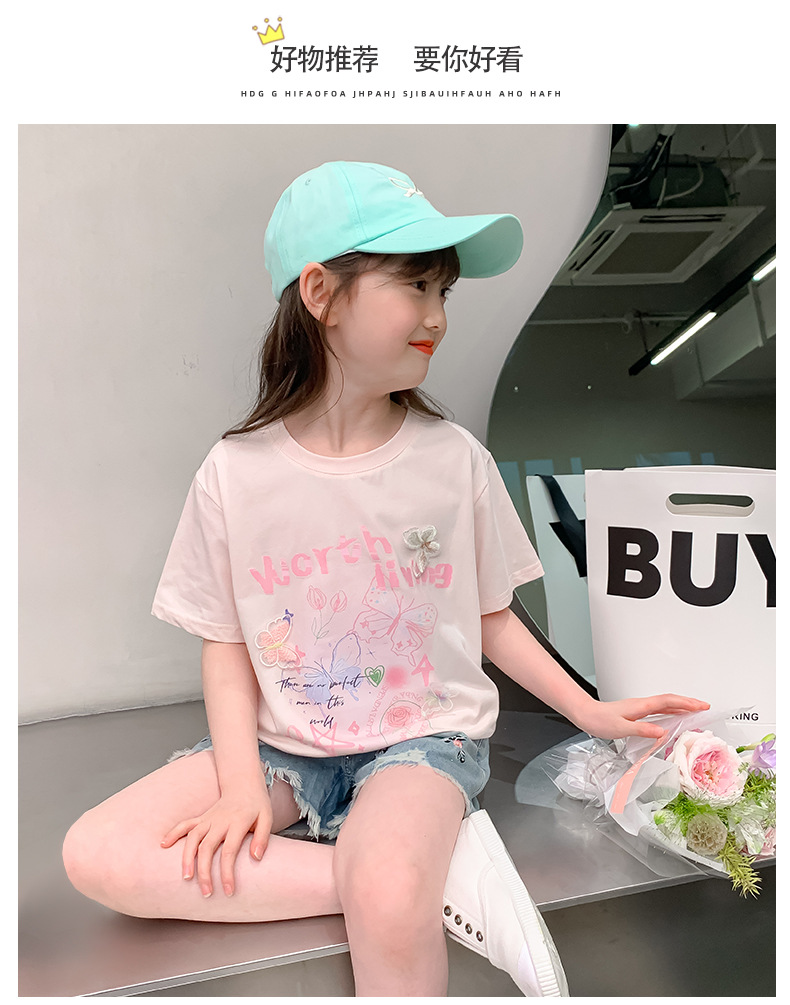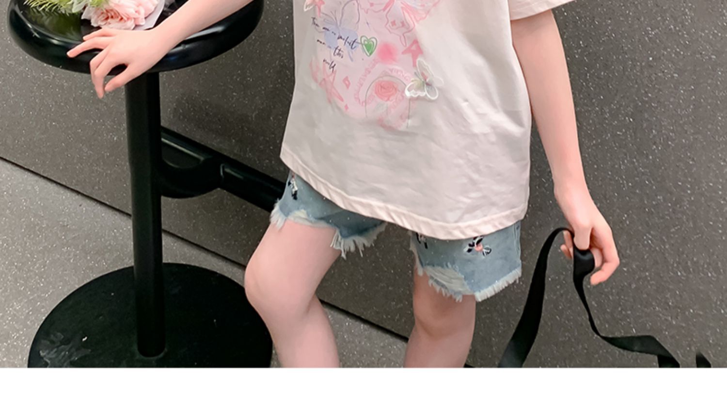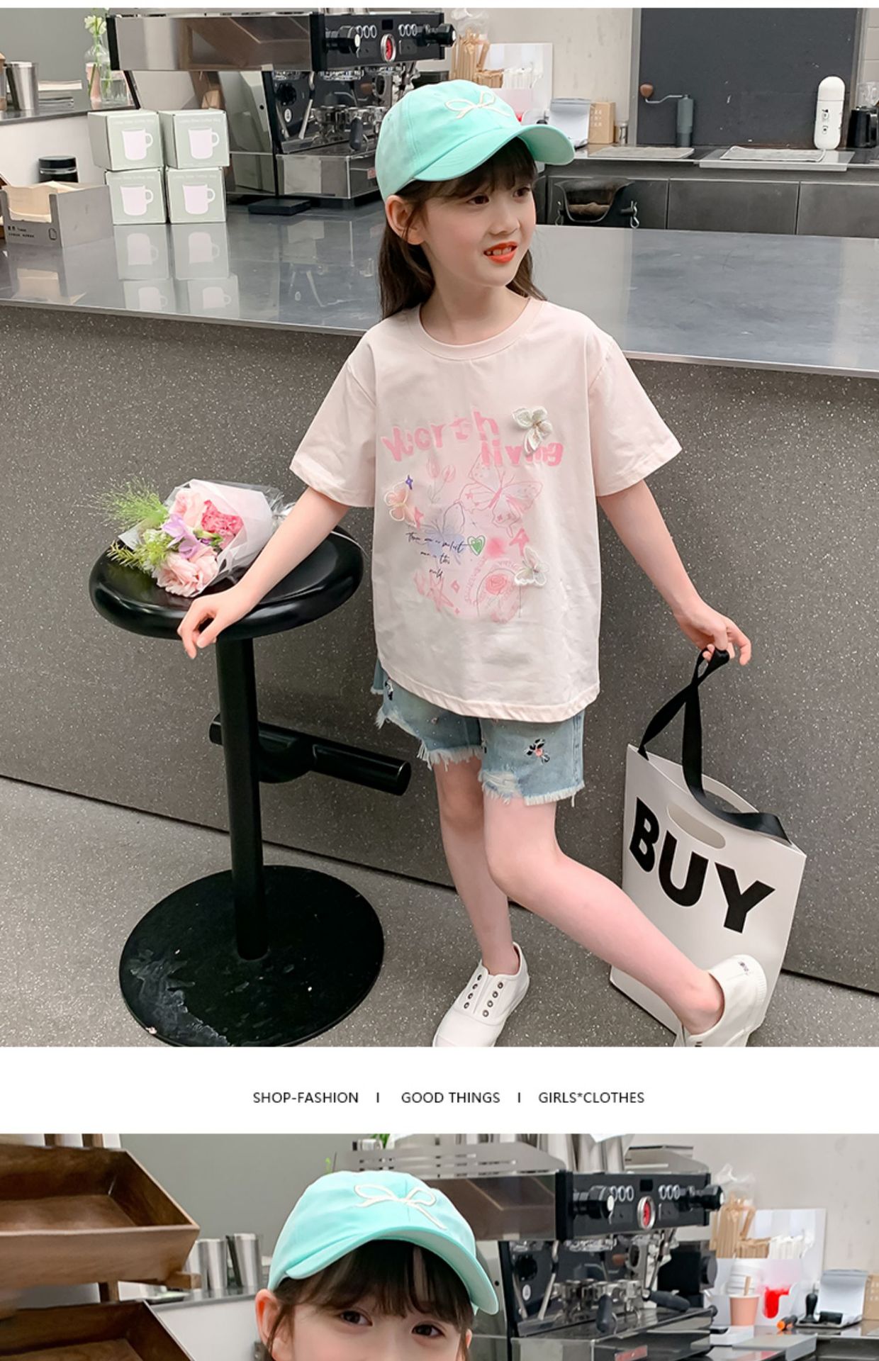 여자 반팔 세트 2024 여름 새 어린이 한국식 서양식 티셔츠 걸스 데님 반바지 투피스 세트스토어 가기