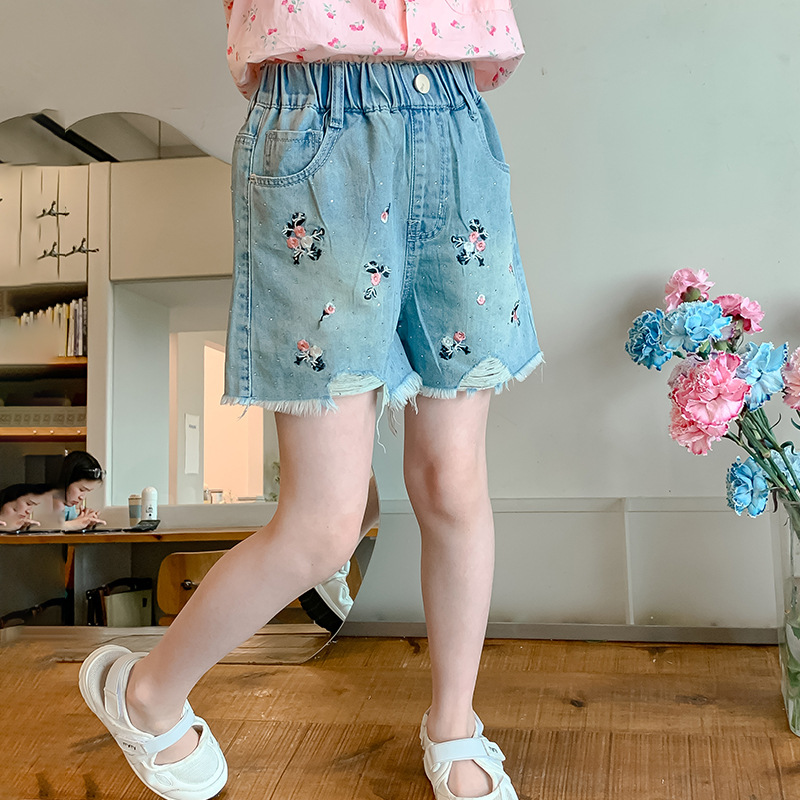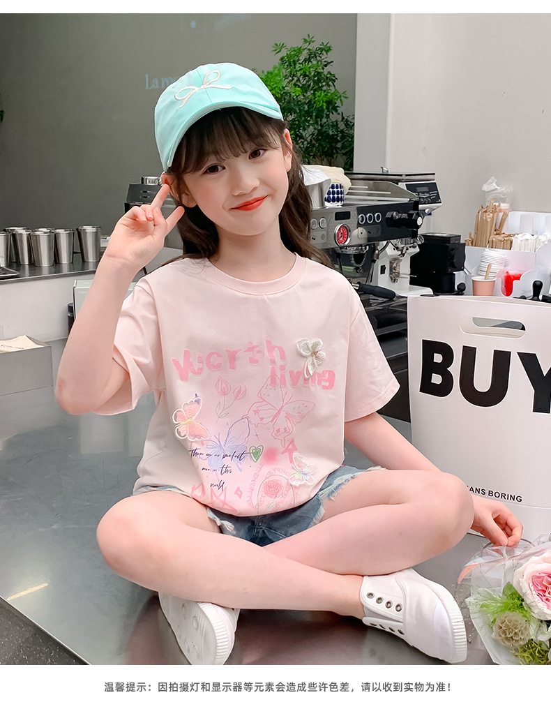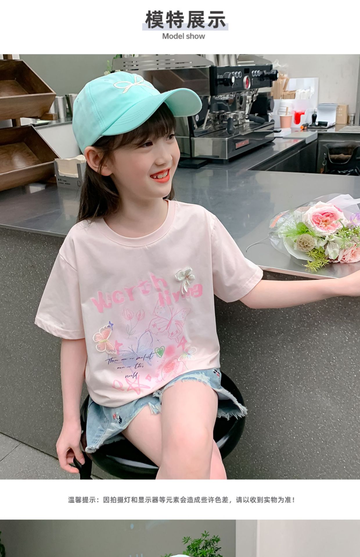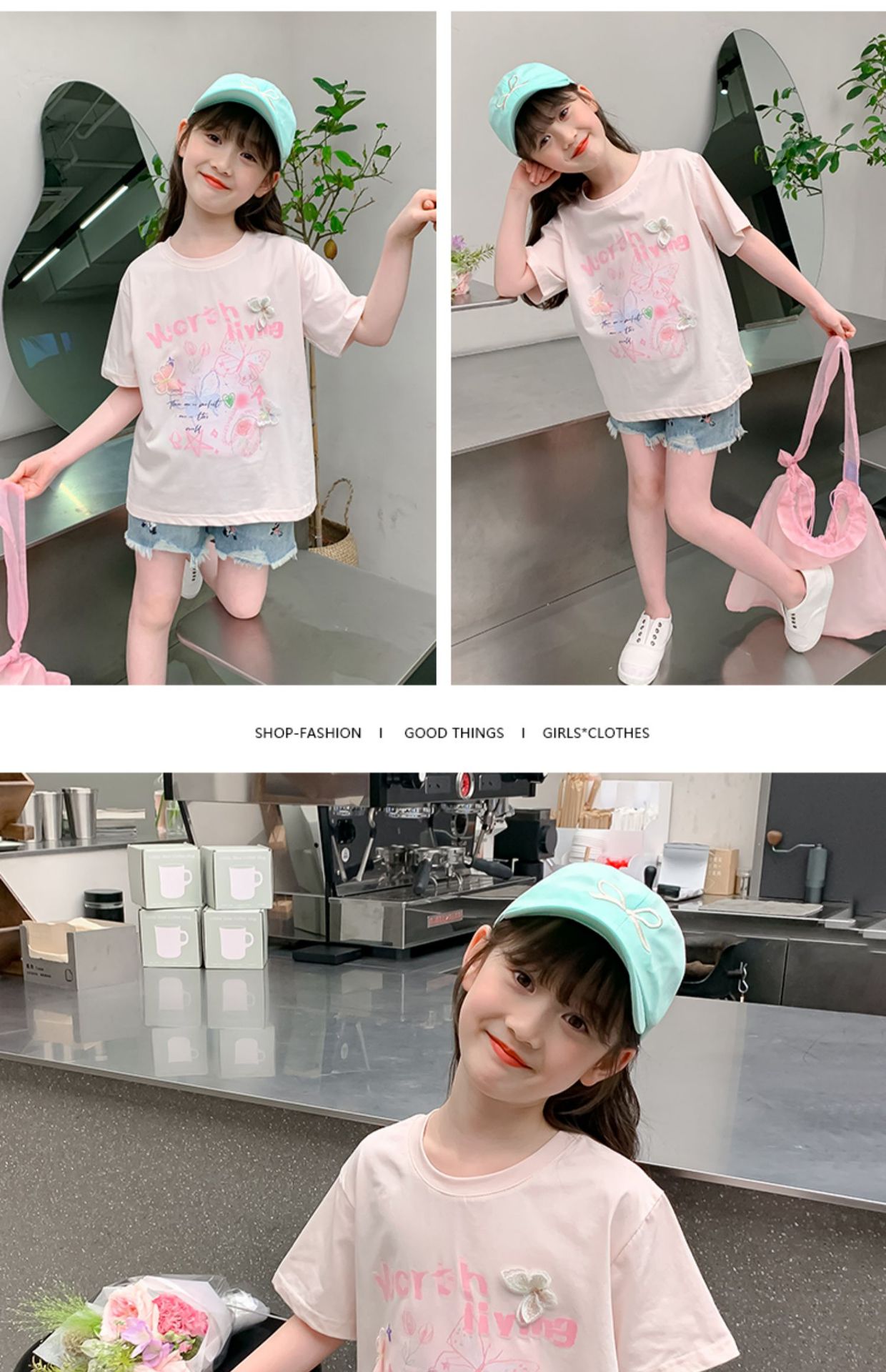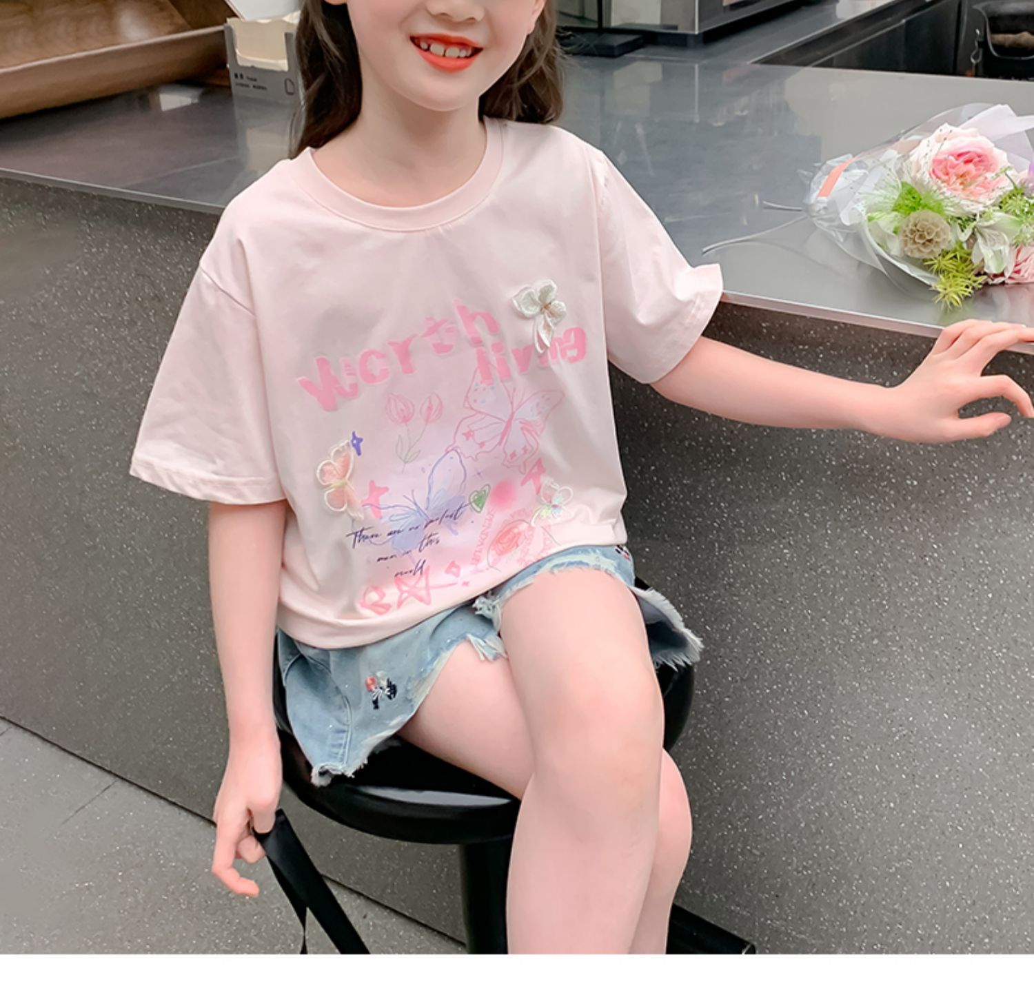 여자 반팔 세트 2024 여름 새 어린이 한국식 서양식 티셔츠 걸스 데님 반바지 투피스 세트