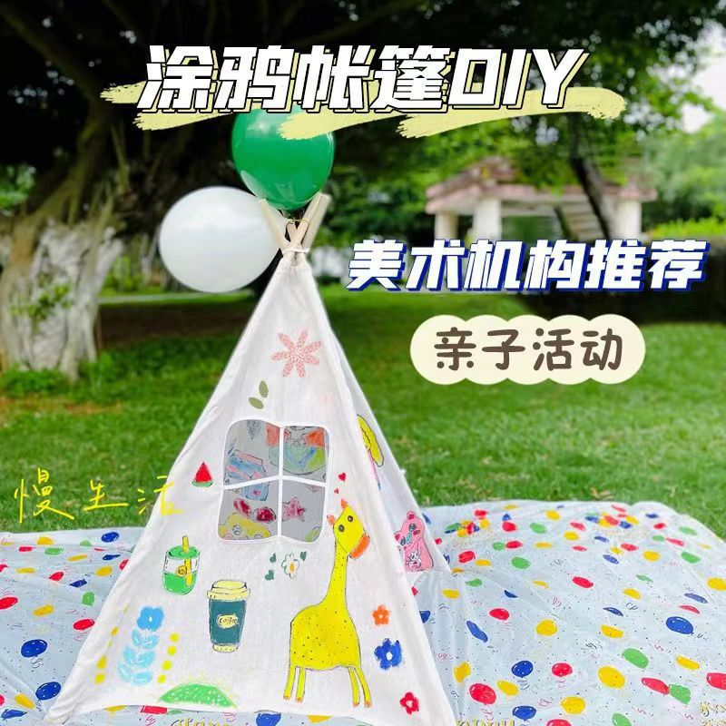 어린이 그림 텐트 유치원 손으로 그린 낙서 DIY 페인트 천 피크닉 부모-자녀 활동 나들이 게임 하우스스토어 가기