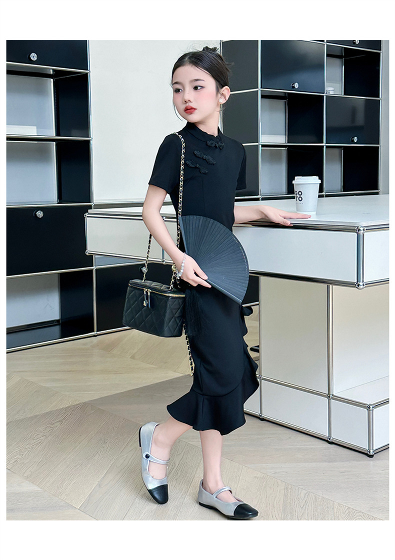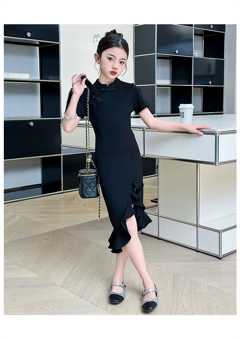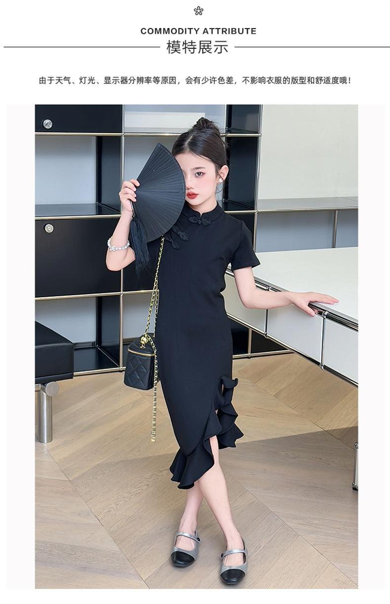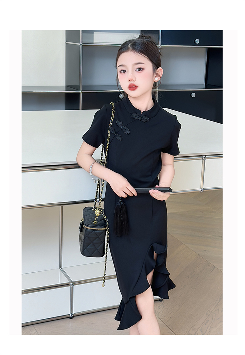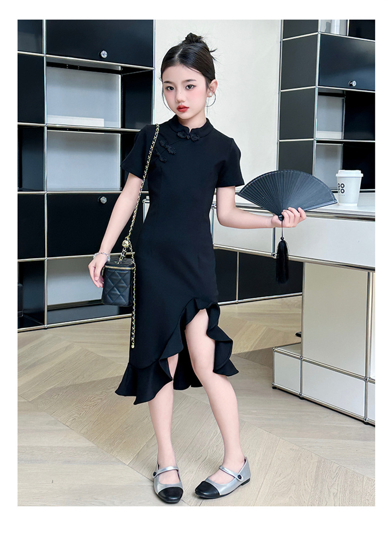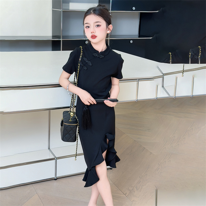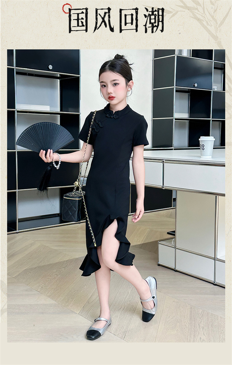 여아용 불규칙 드레스 여름 신상 중국풍 러플 슬릿 힙 커버 피쉬테일 스커트 슬림 레트로 치파오 드레스