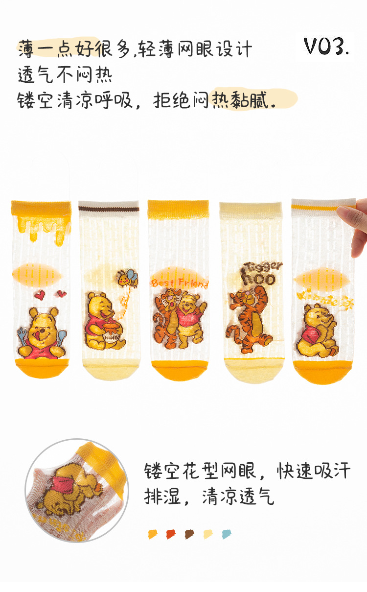 여름 얇은 통기성 어린이 양말 만화 위니 베어 어린이 양말 메쉬 어린이 양말 아기 양말