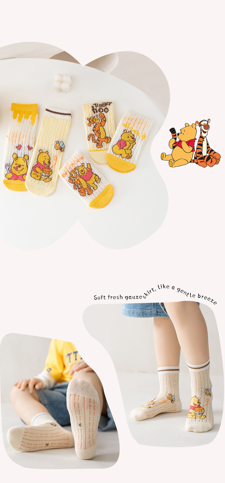 여름 얇은 통기성 어린이 양말 만화 위니 베어 어린이 양말 메쉬 어린이 양말 아기 양말스토어 가기