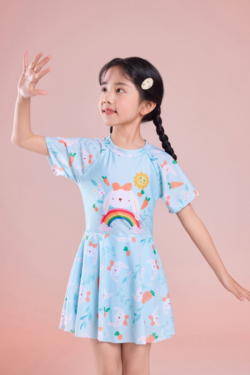 워터 탑 어린이 수영복 소녀 중 어린이 스포티 스타일 원피스 스커트 수영복 사이버 온천 뜨거운 판매 수영복