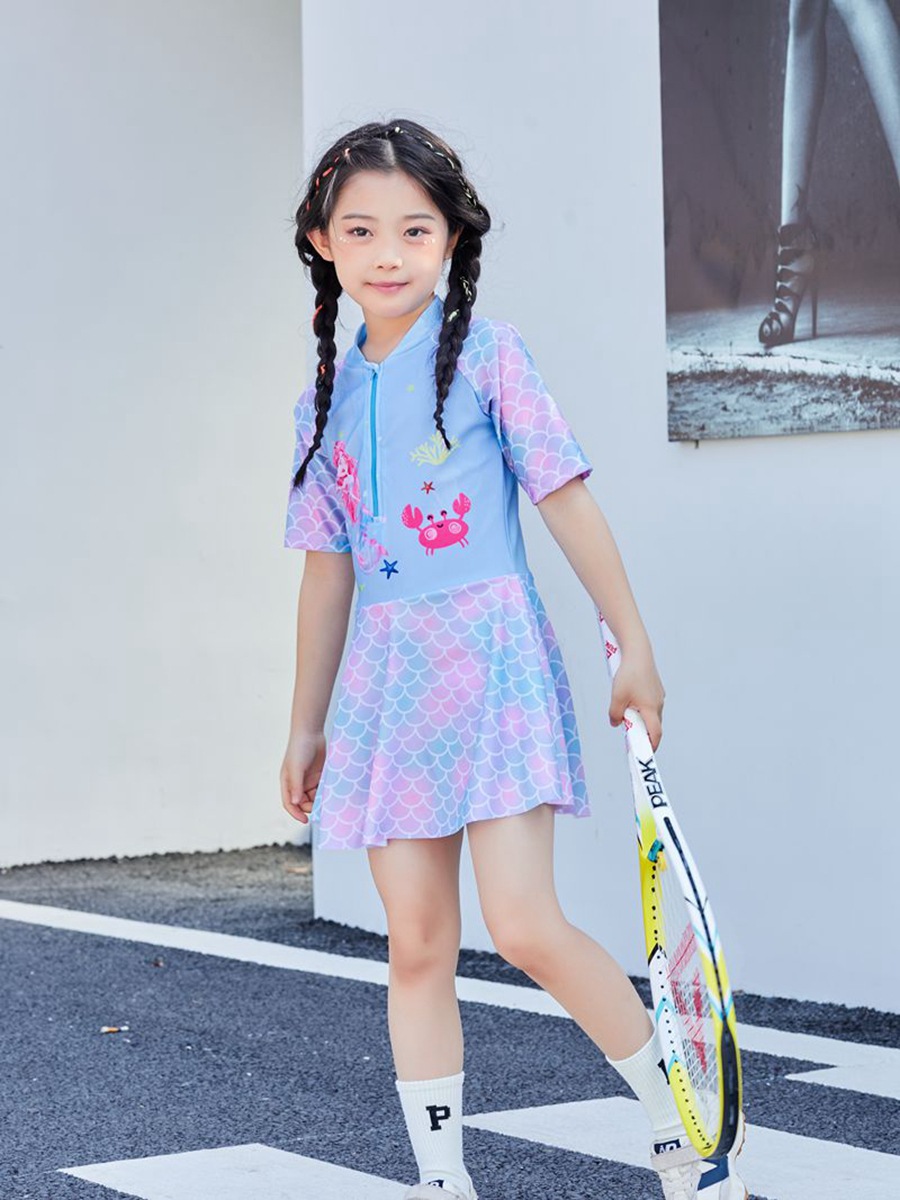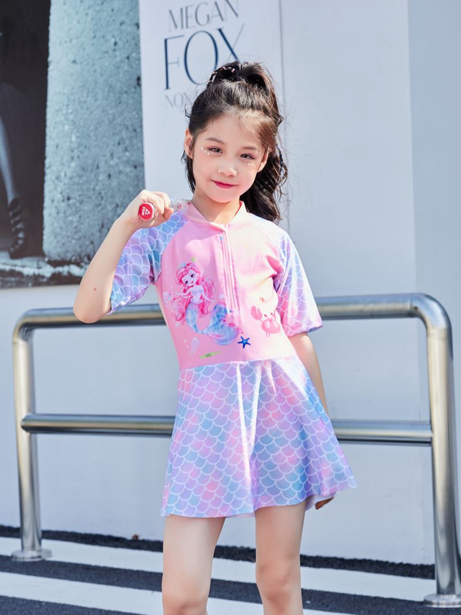 워터 탑 어린이 수영복 소녀 중 어린이 스포티 스타일 원피스 스커트 수영복 사이버 온천 뜨거운 판매 수영복스토어 가기