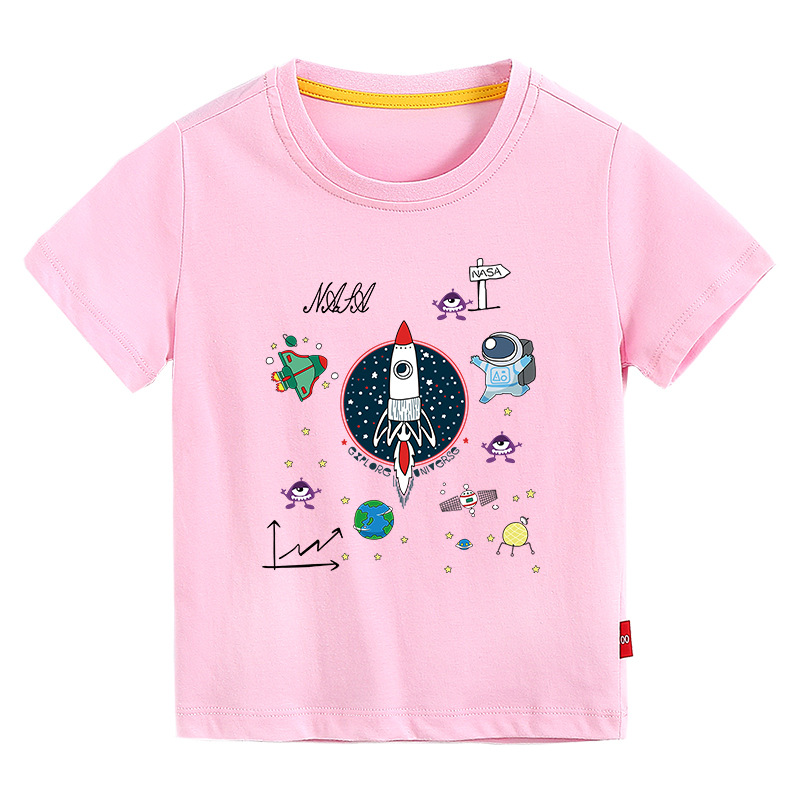 • 핑크 짧은 소매 T-셔츠-항공 우주 로켓 #