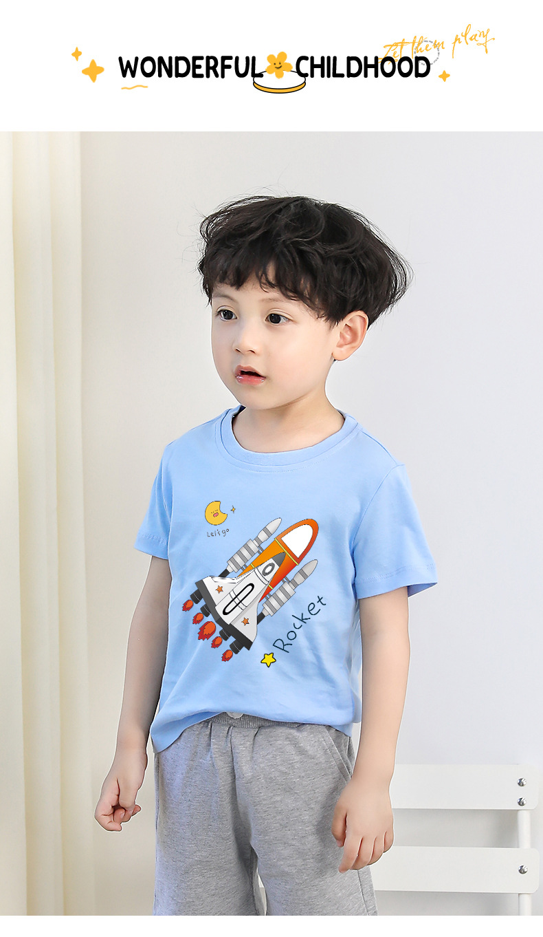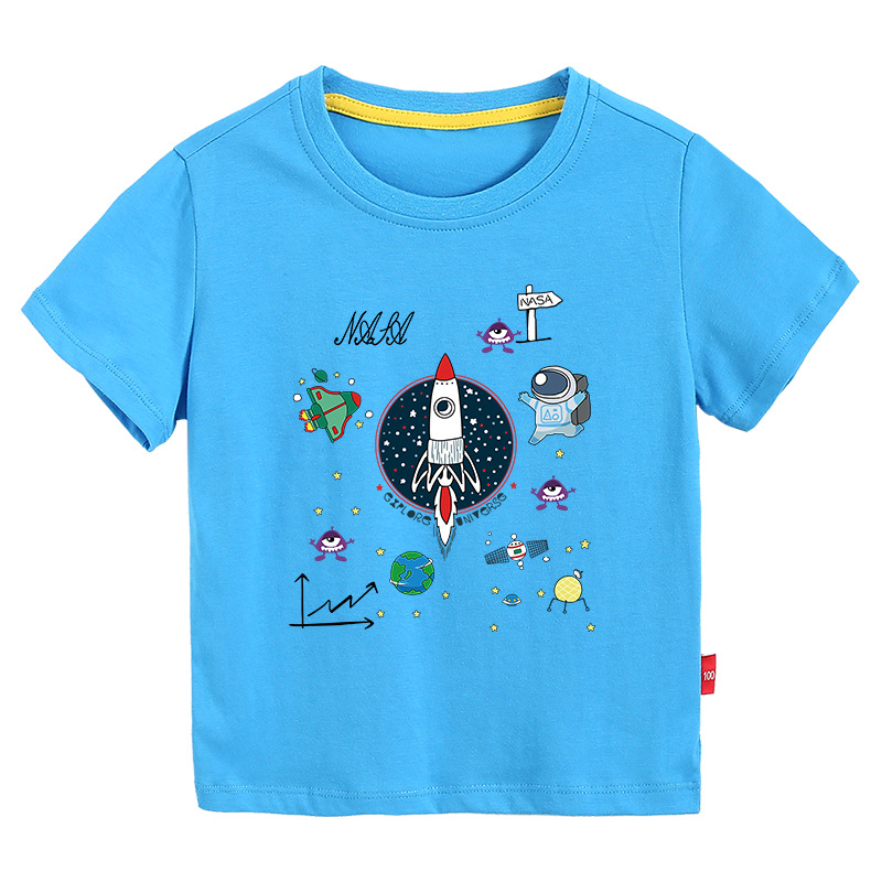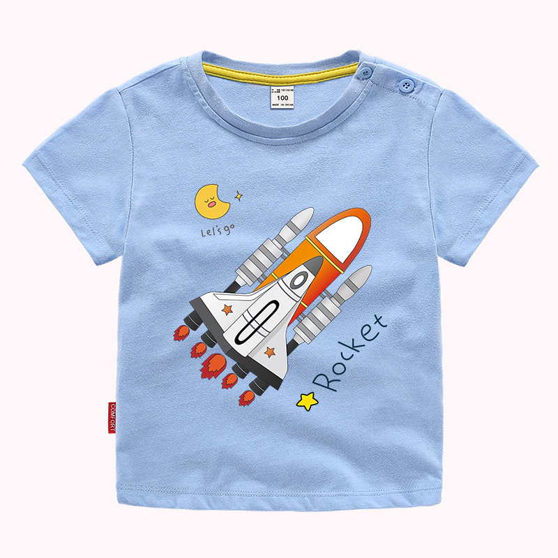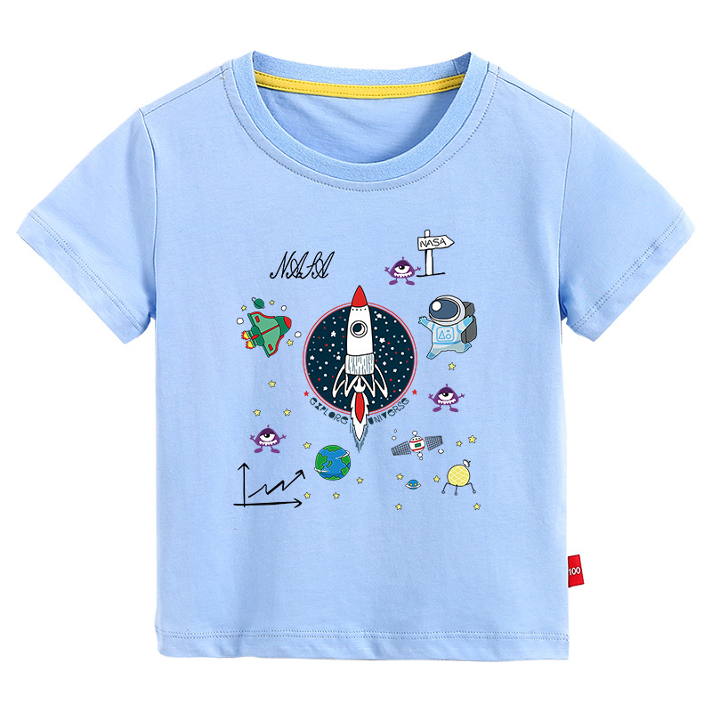 • 라이트 블루 짧은 소매 T-셔츠-항공 우주 로켓 #