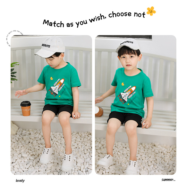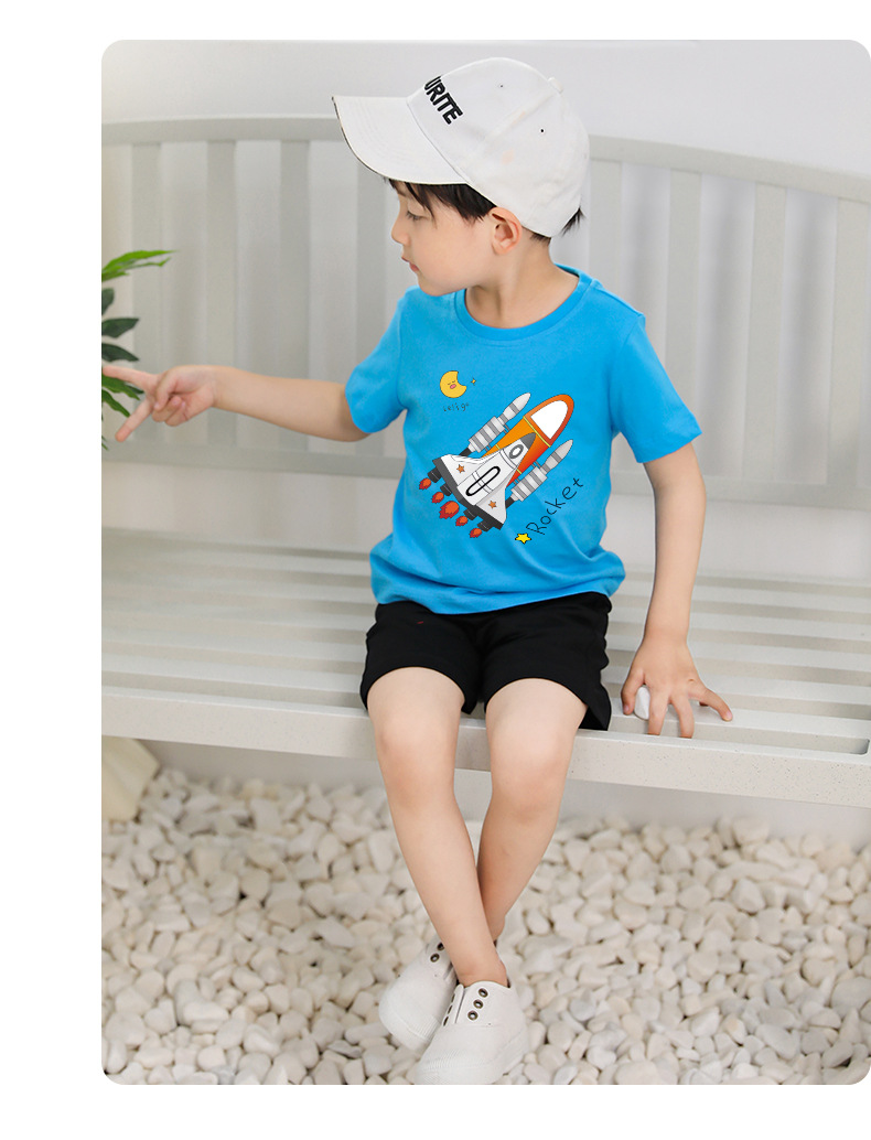 어린이 의류 새 인쇄 반팔 재킷 소년 순면 크루 넥 반팔 티셔츠 어린이 아기 여름 옷 1스토어 가기