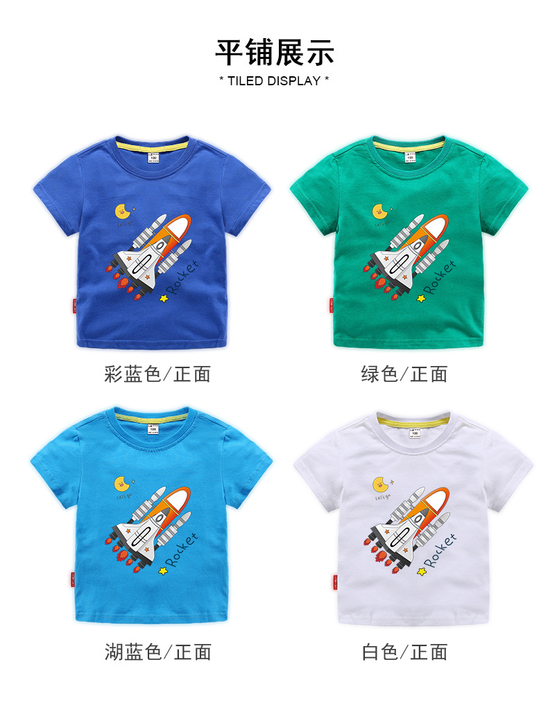 • 컬러 블루 짧은 소매 T-셔츠-항공기 로켓 #