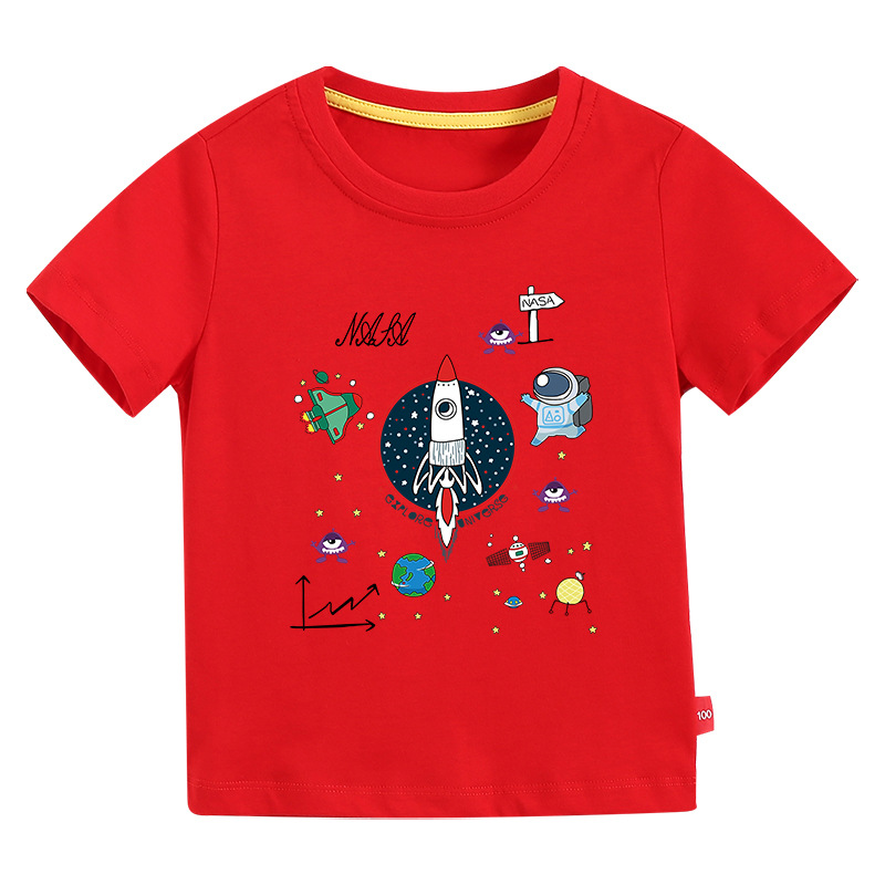 • 빨간 짧은 소매 T-셔츠-항공 우주 로켓 #