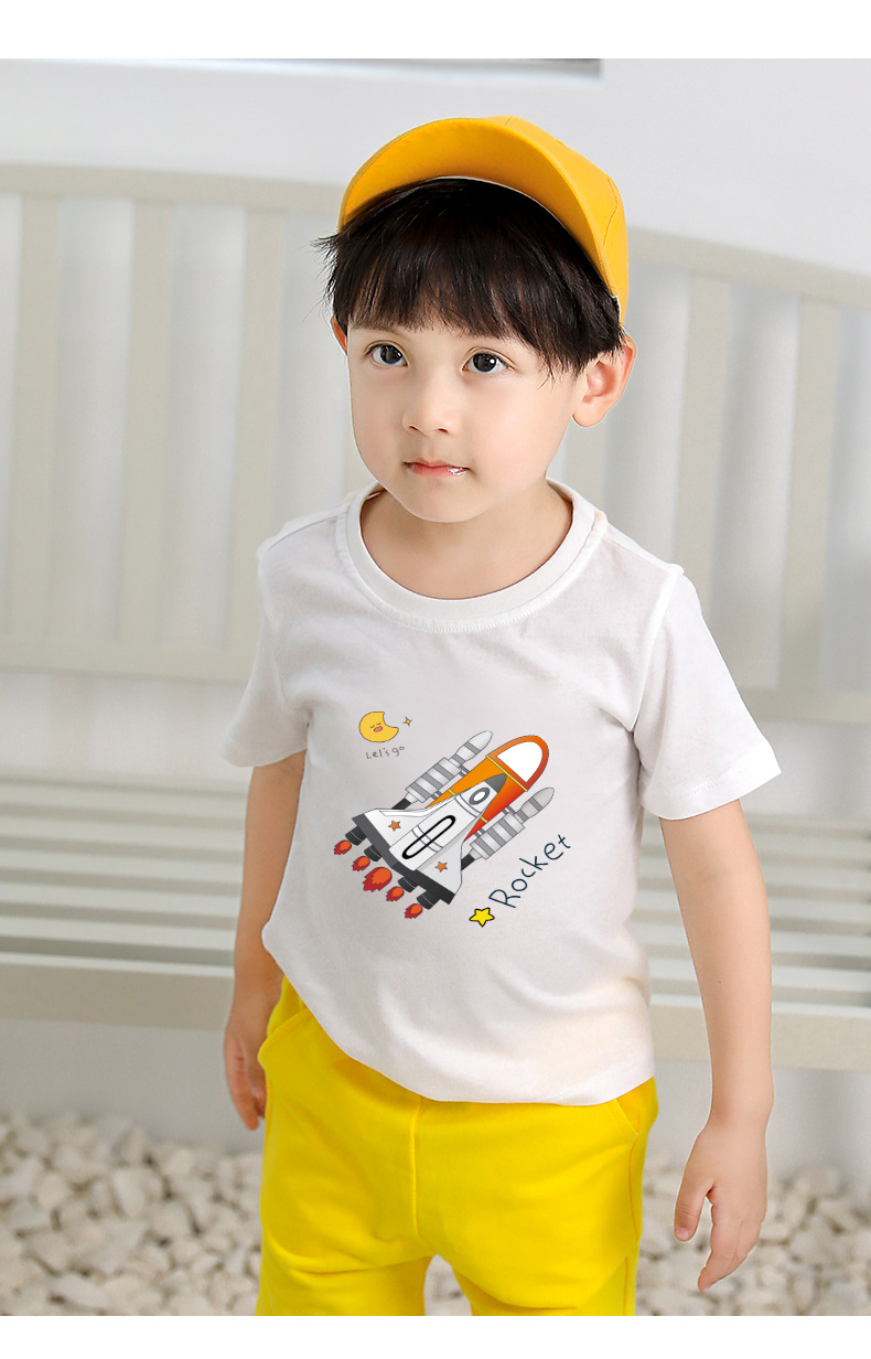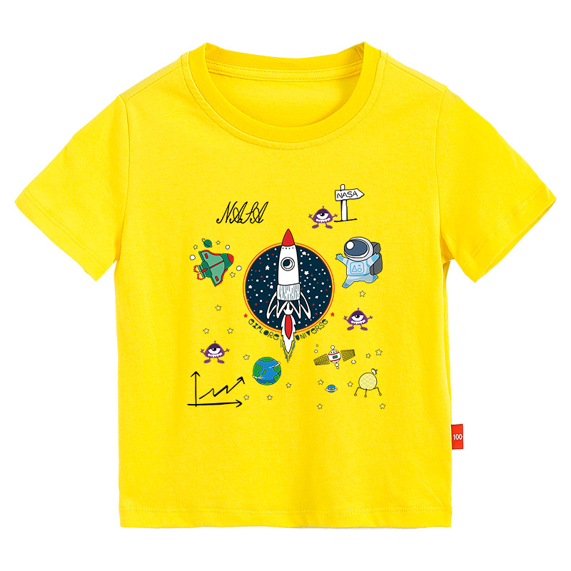• 노란색 짧은 소매 T-셔츠-항공 우주 로켓 #