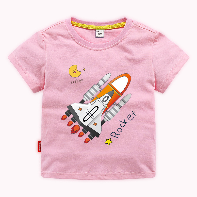 • 핑크 짧은 소매 T-셔츠-비행기 로켓 #