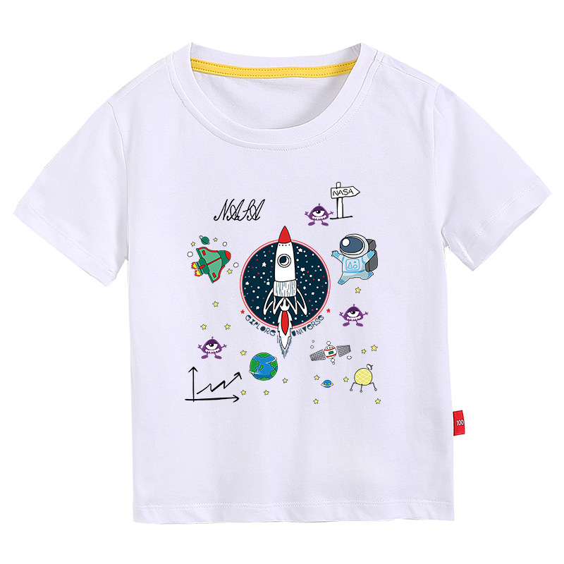 • 흰색 짧은 소매 T-셔츠-항공 우주 로켓 #