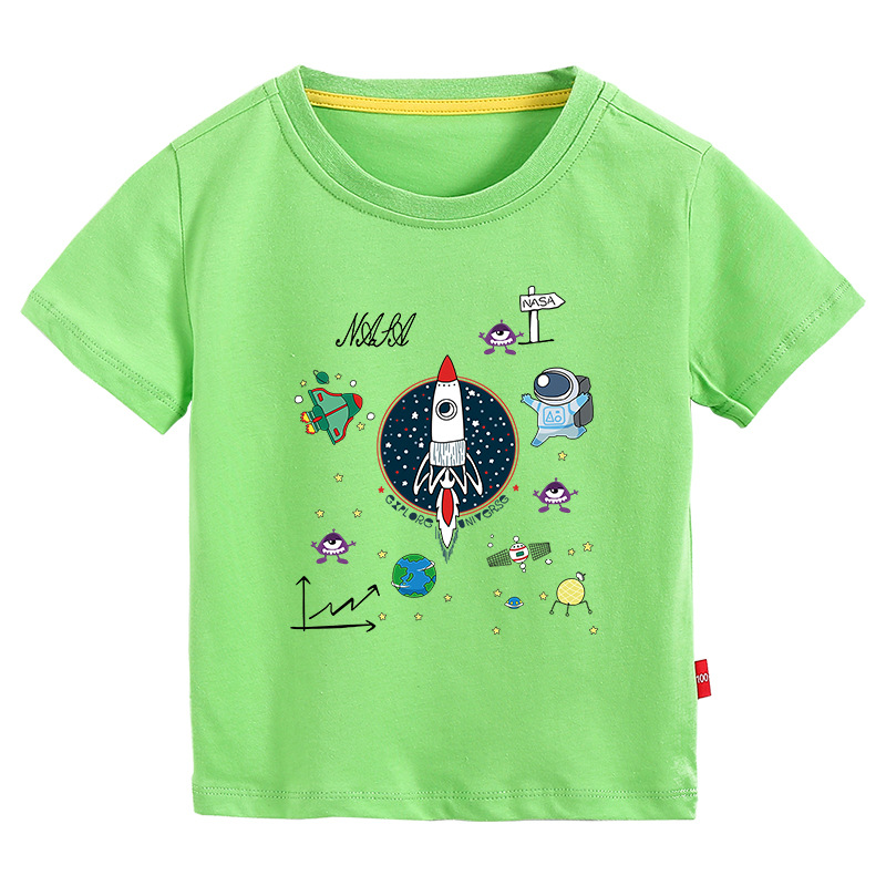 • 라이트 그린 짧은 소매 T-셔츠-항공 우주 로켓 #