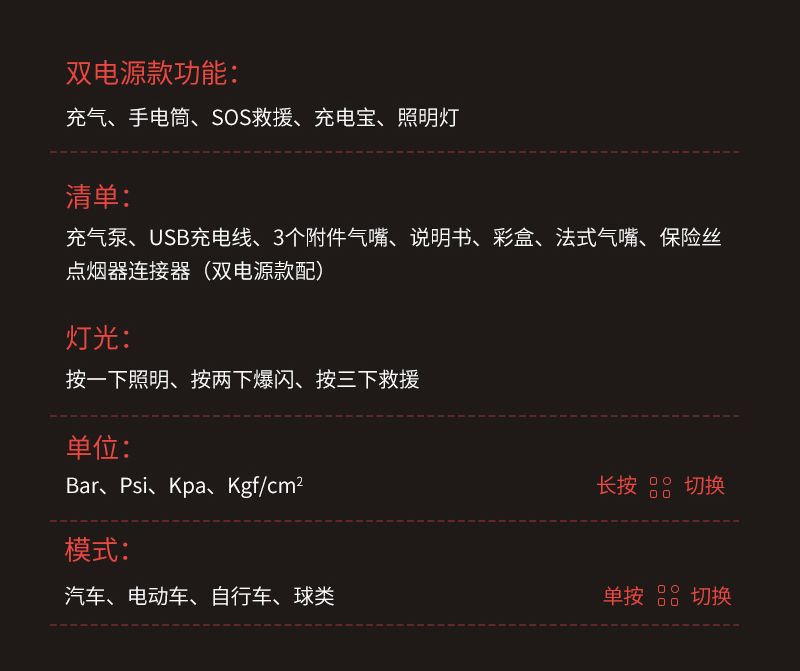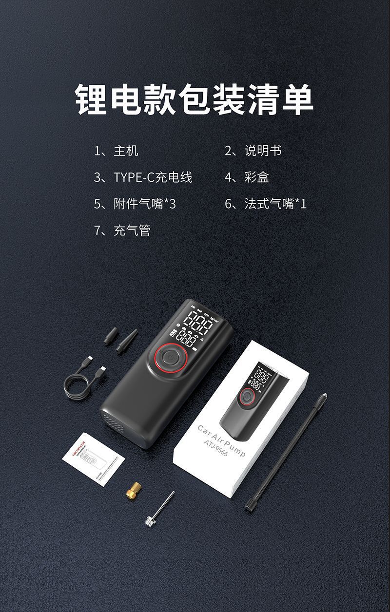 包装:彩盒、说明书、主机、气嘴包、充气管、type-c充电线