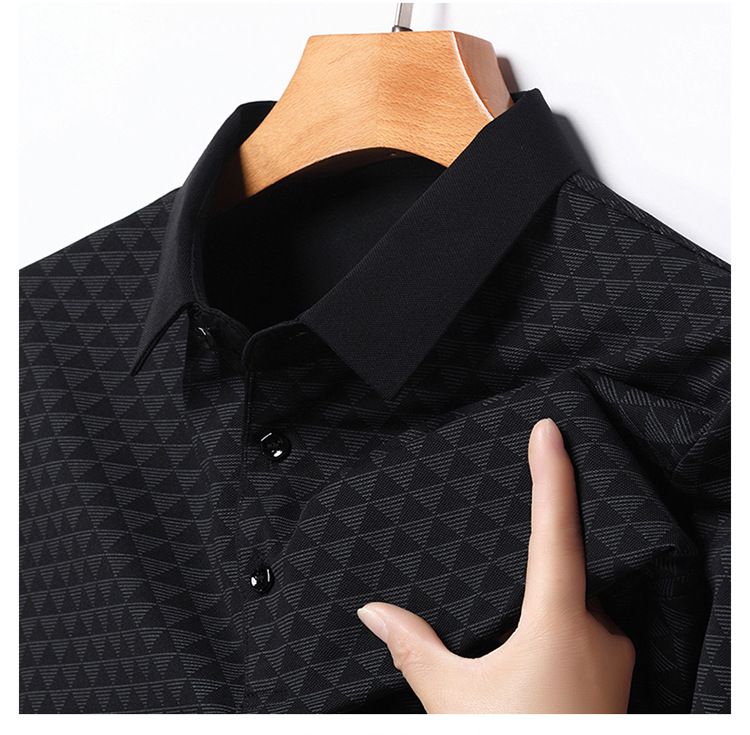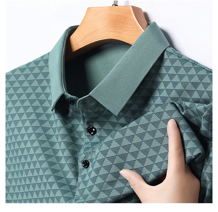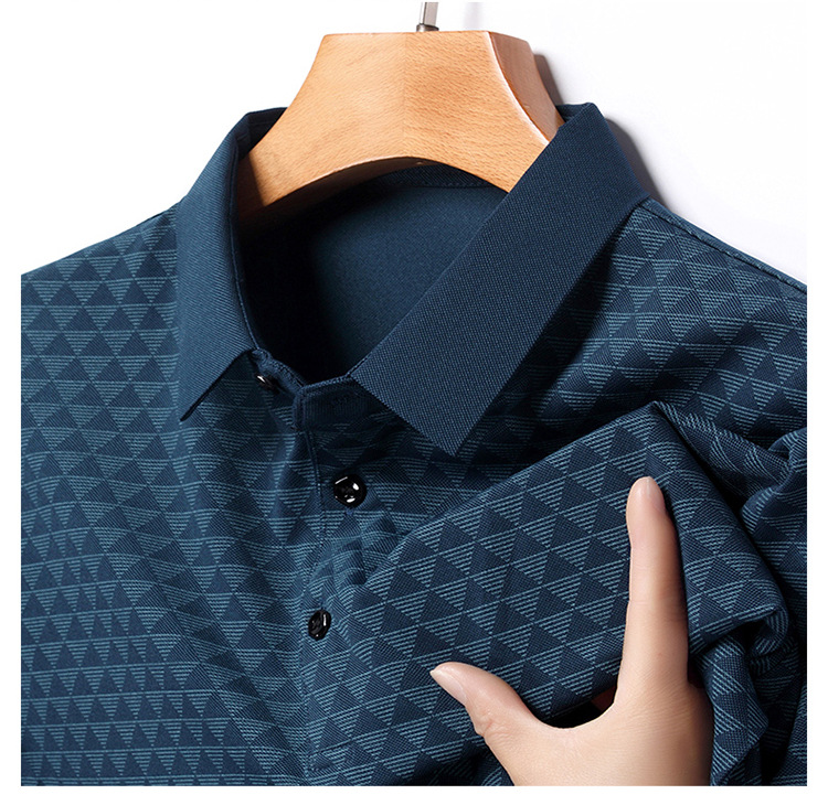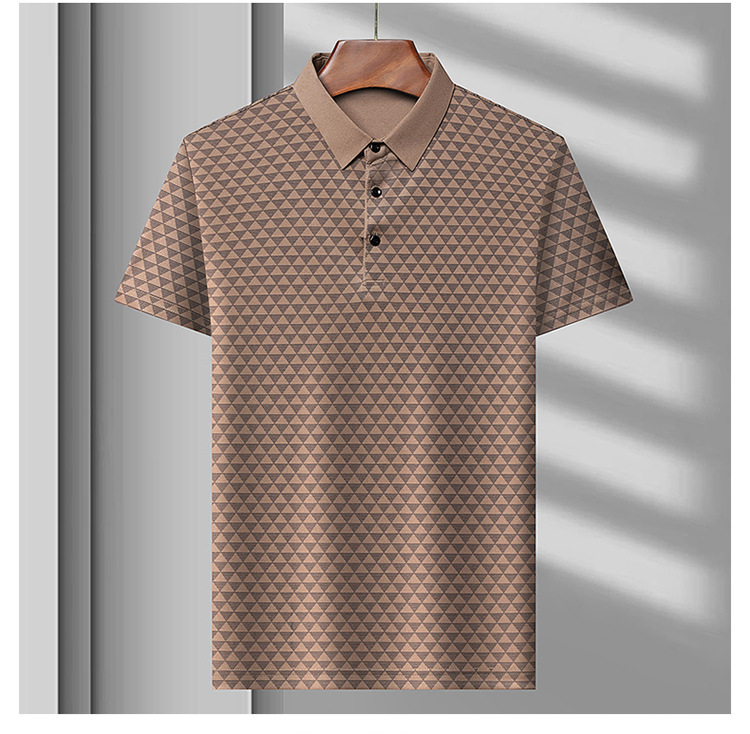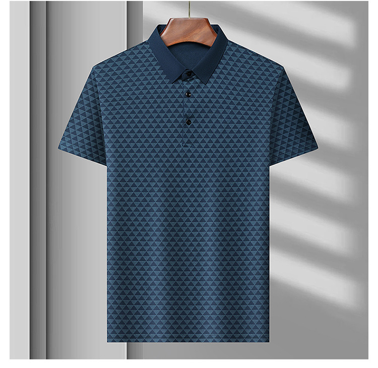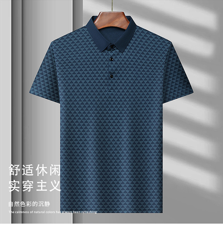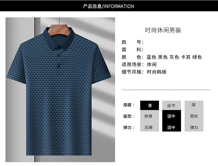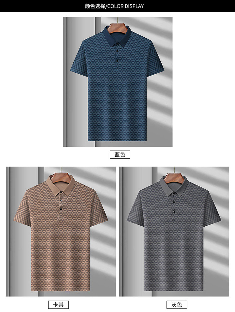 중년 반팔 티셔츠 남성 아버지 여름 아이스 실크 옷깃 여름 폴로 얇은 탑 중년 및 노인스토어 가기