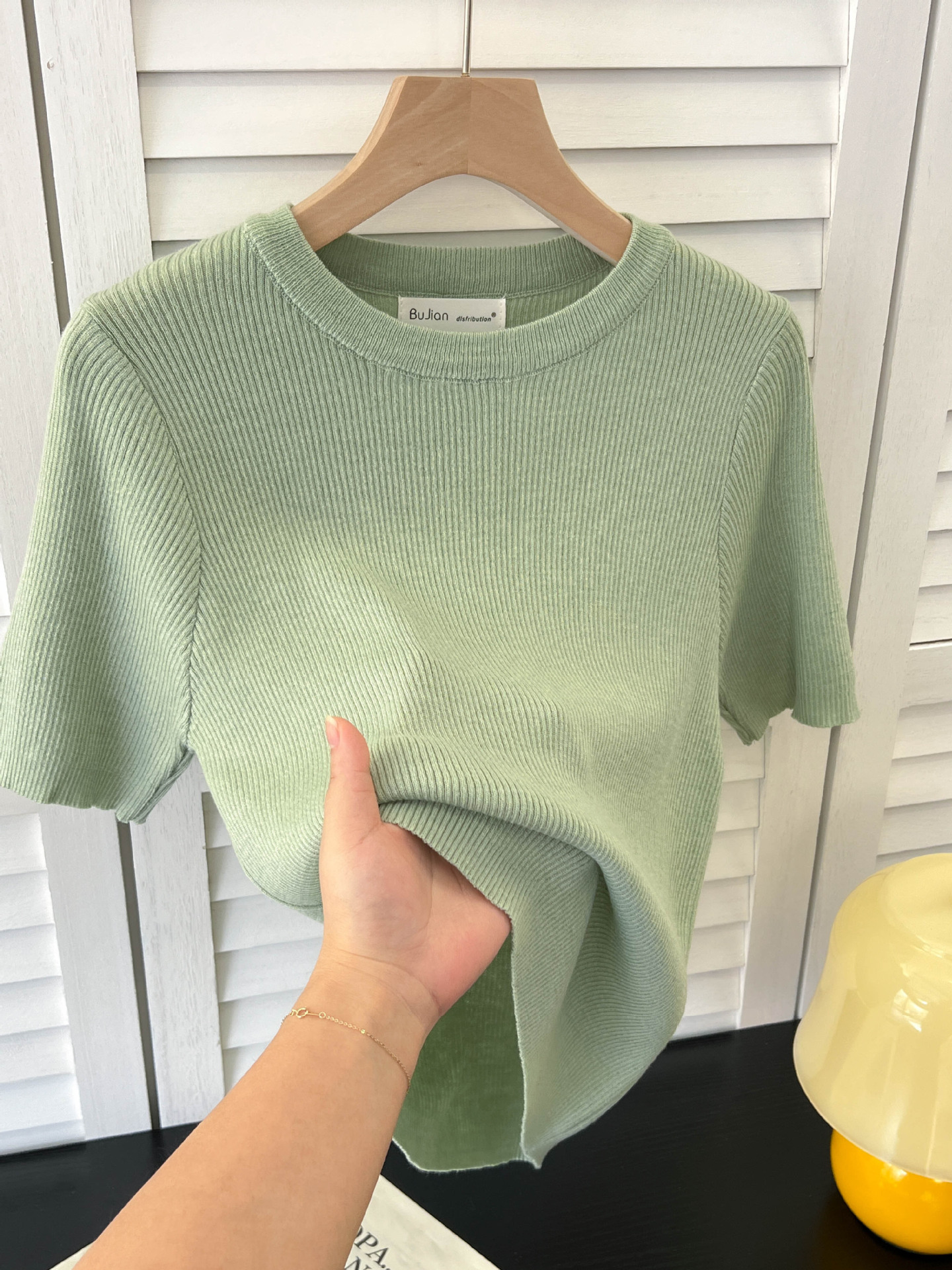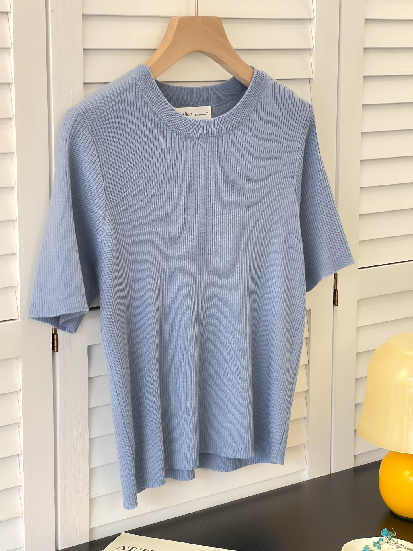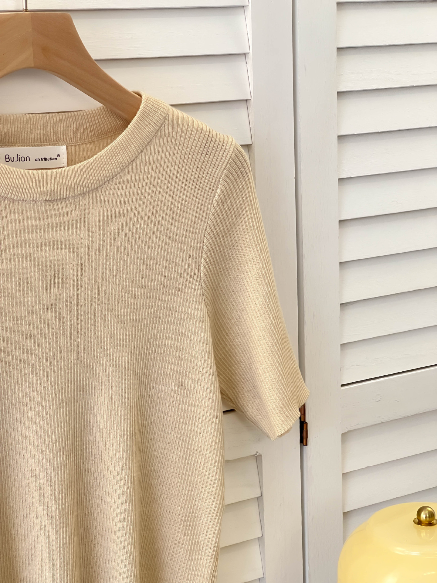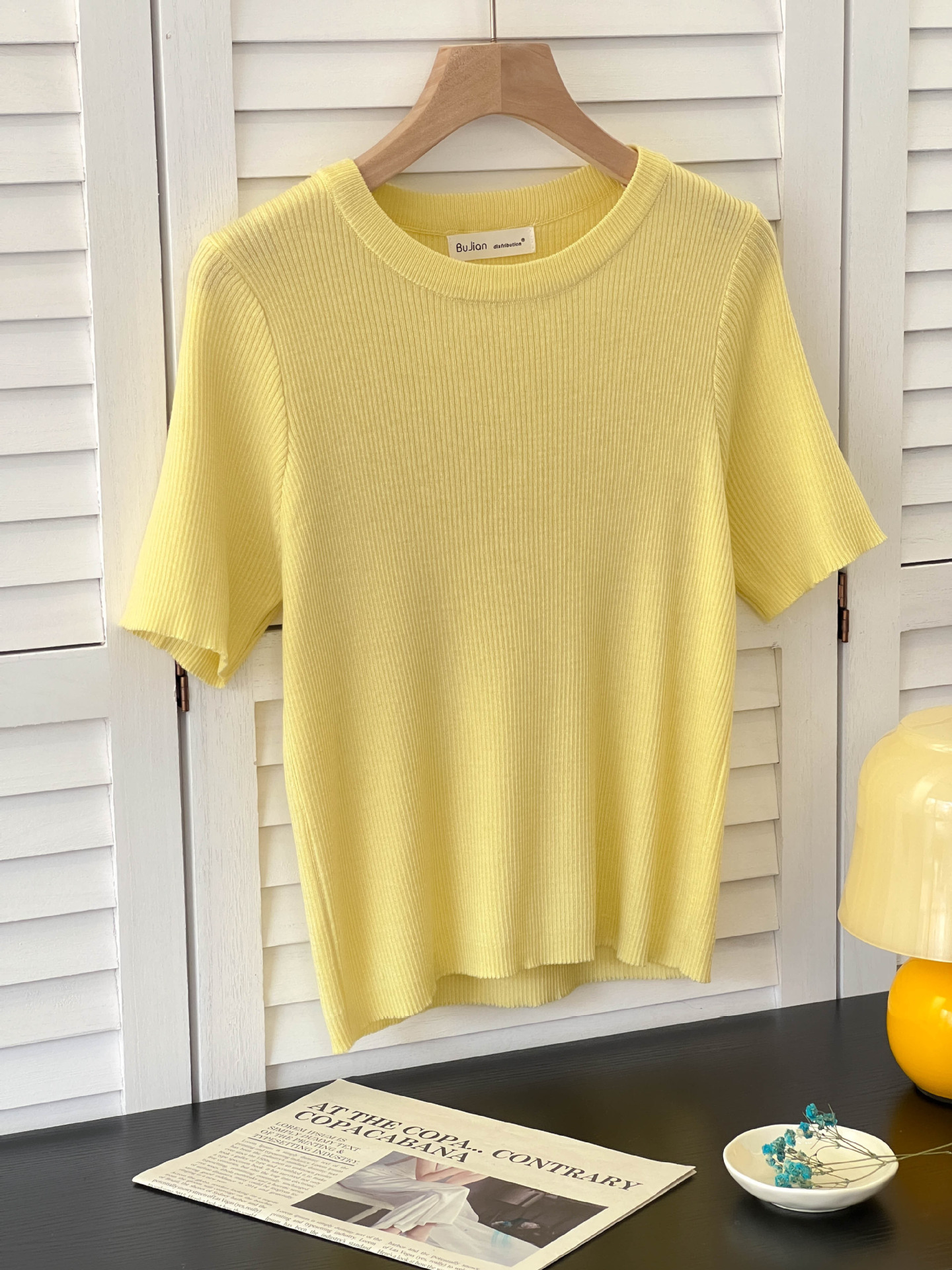 아이스 실크 크림 옐로우 라운드 넥 반팔 니트 티셔츠 여성 여름 한국 스타일 소프트 왁스 연령 감소 짧은 홍콩 스타일 티셔츠 탑스토어 가기