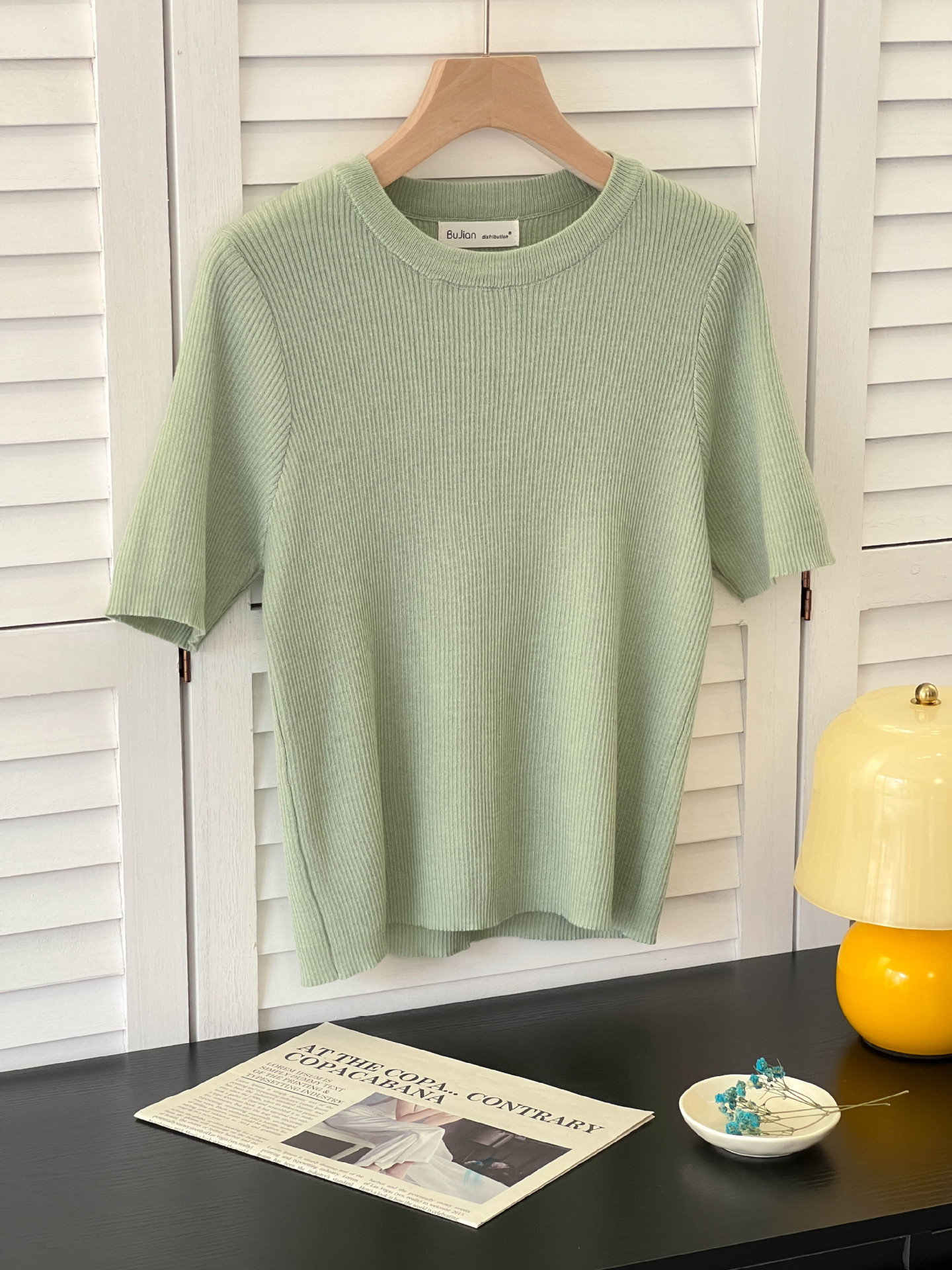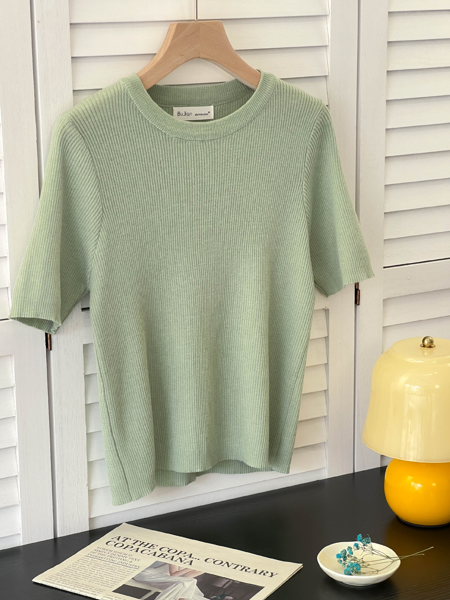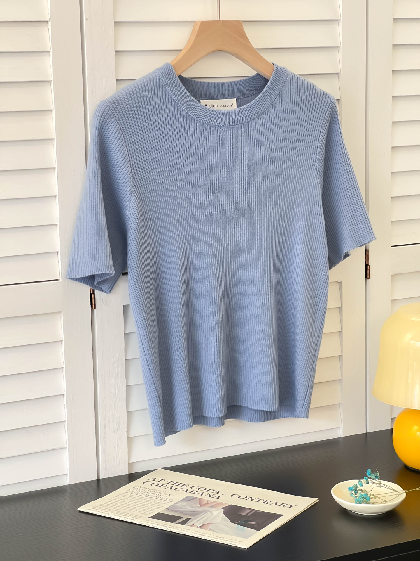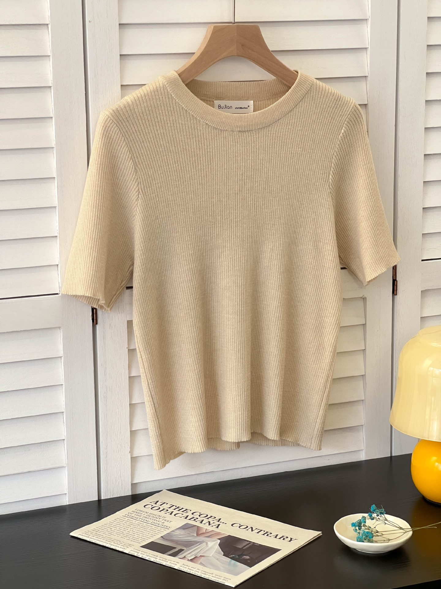 아이스 실크 크림 옐로우 라운드 넥 반팔 니트 티셔츠 여성 여름 한국 스타일 소프트 왁스 연령 감소 짧은 홍콩 스타일 티셔츠 탑스토어 가기