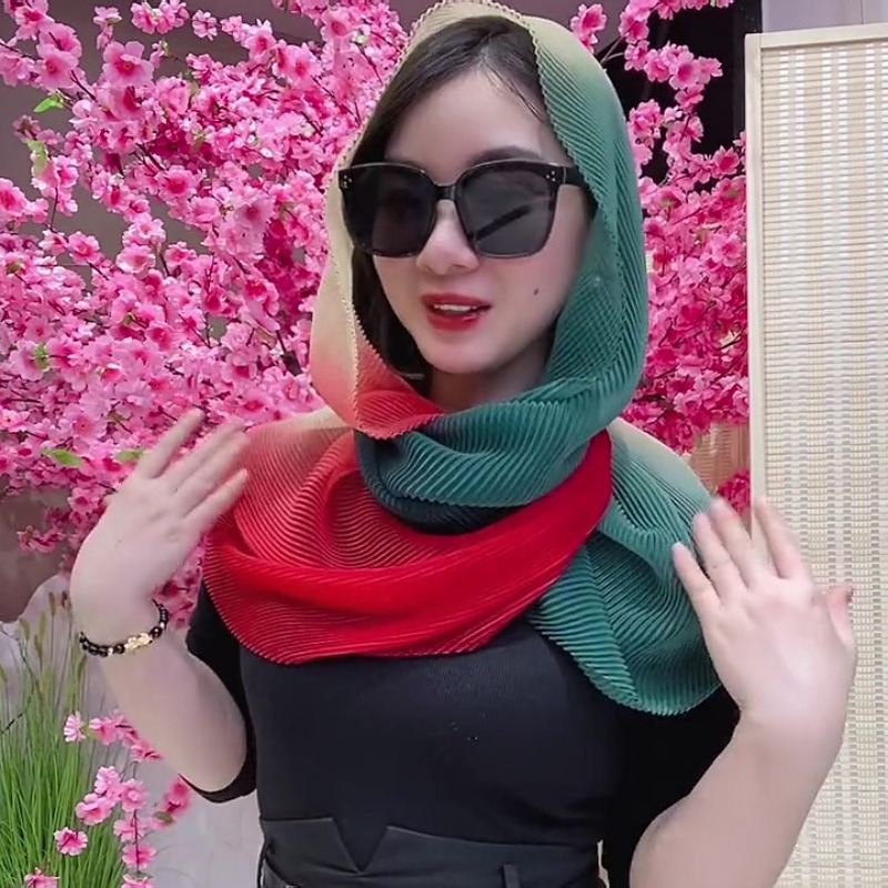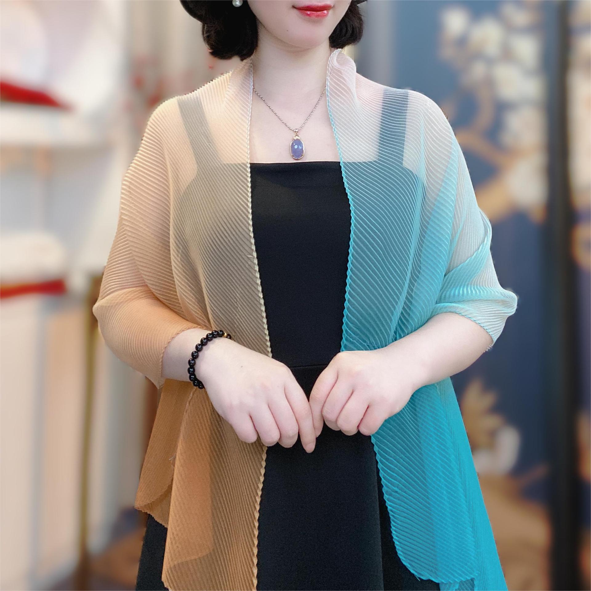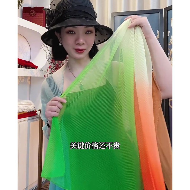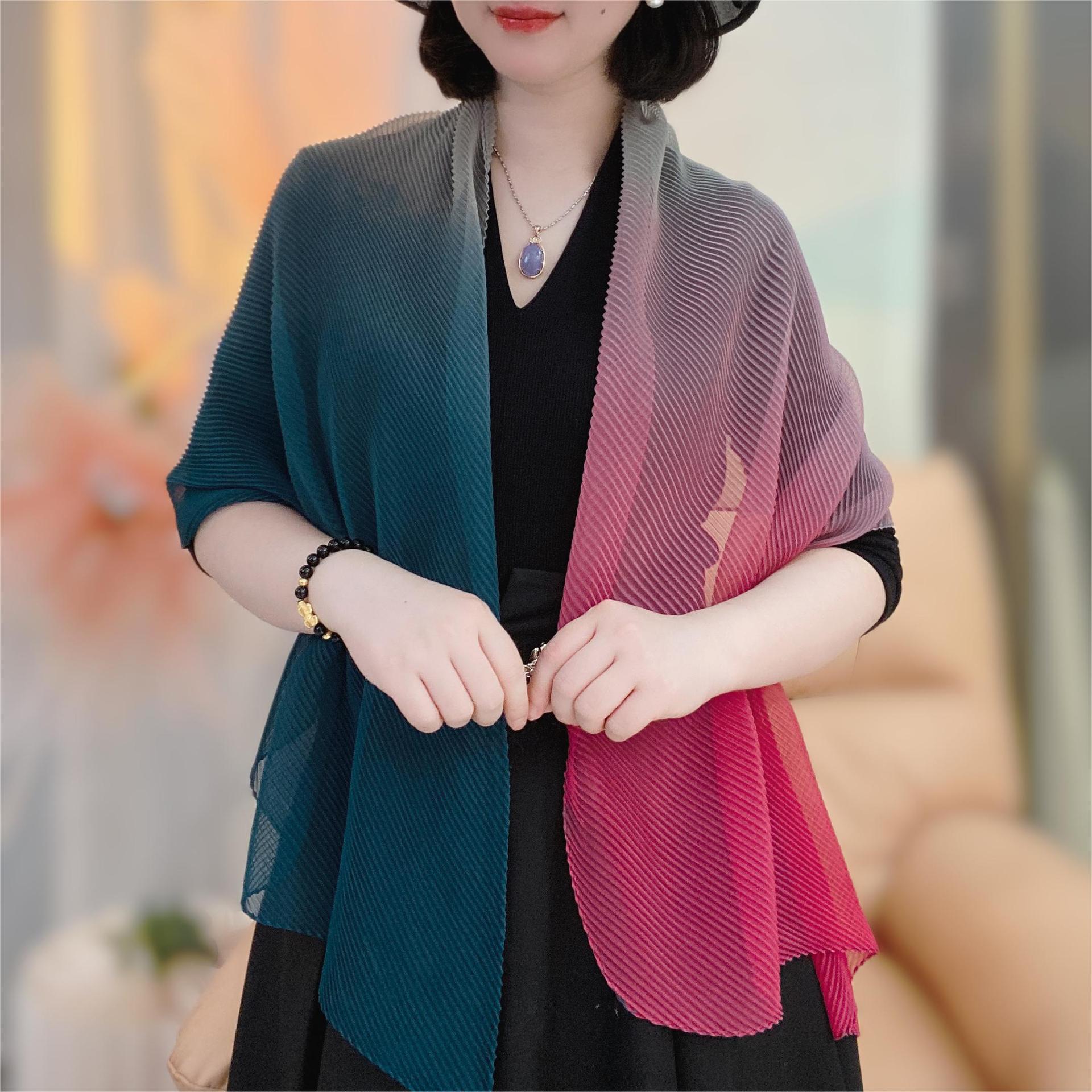 코코 뉴 레인보우 그라디언트 주름 스카프 불규칙한 베블 작은 스카프 여행 사진 비치 선 스크린 스카프스토어 가기