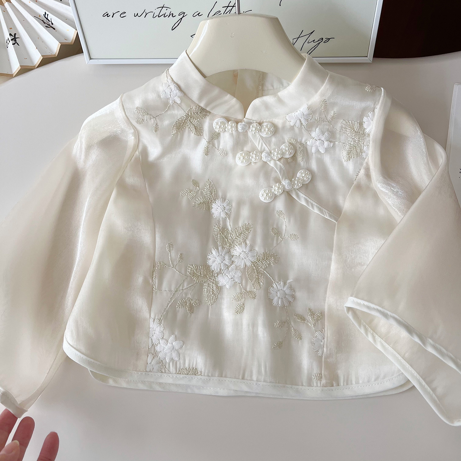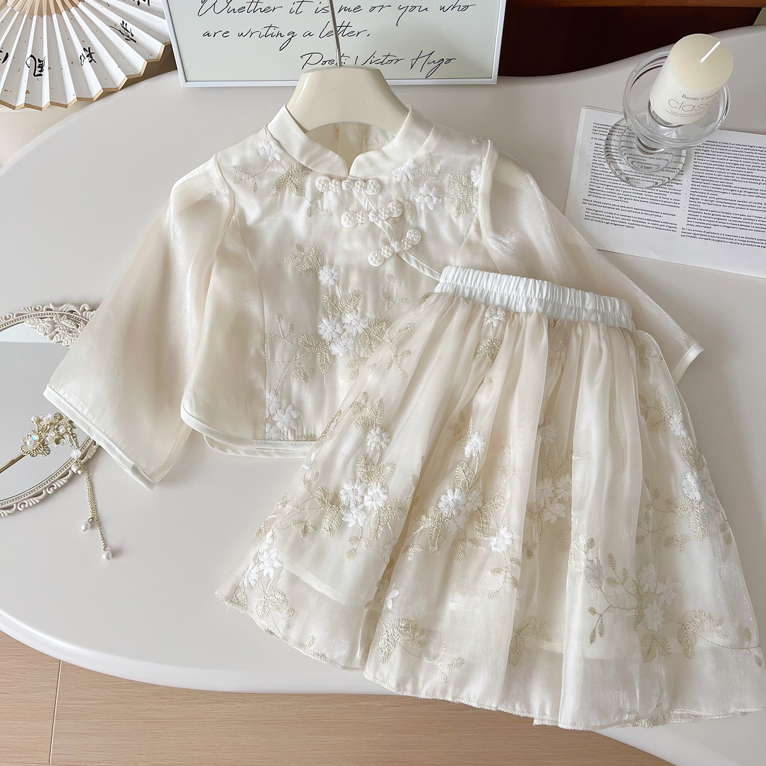 소녀 세트 2024 여름 새로운 중국 스타일 한푸 셔츠 스커트 세트 상쾌한 민족 스타일 세트