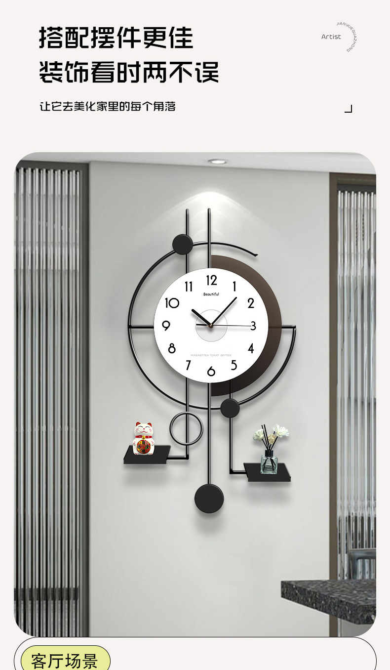 북유럽 거실 심플 모던 시계 무소음 가정용 2024 신상품 창의적인 인기 벽걸이 장식 시계 행운스토어 가기