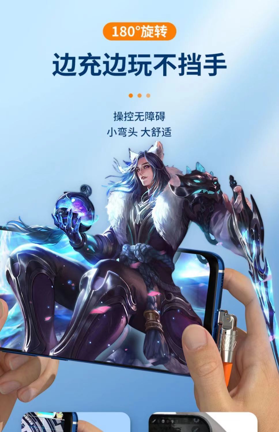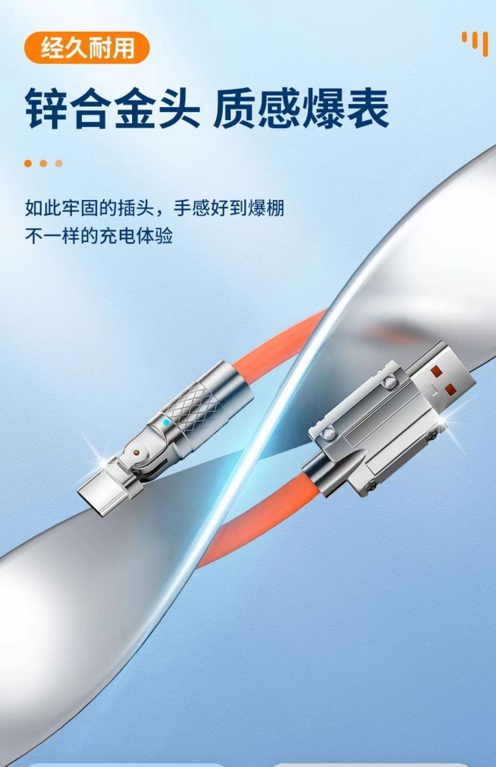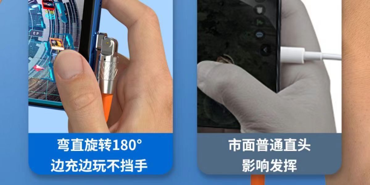 Apple Huawei 고속 충전 충전 케이블에 적합한 제조업체의 180도 회전 아연 합금 두꺼운 부드러운 접착제 기계 데이터 케이블