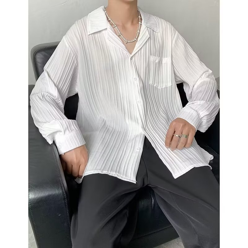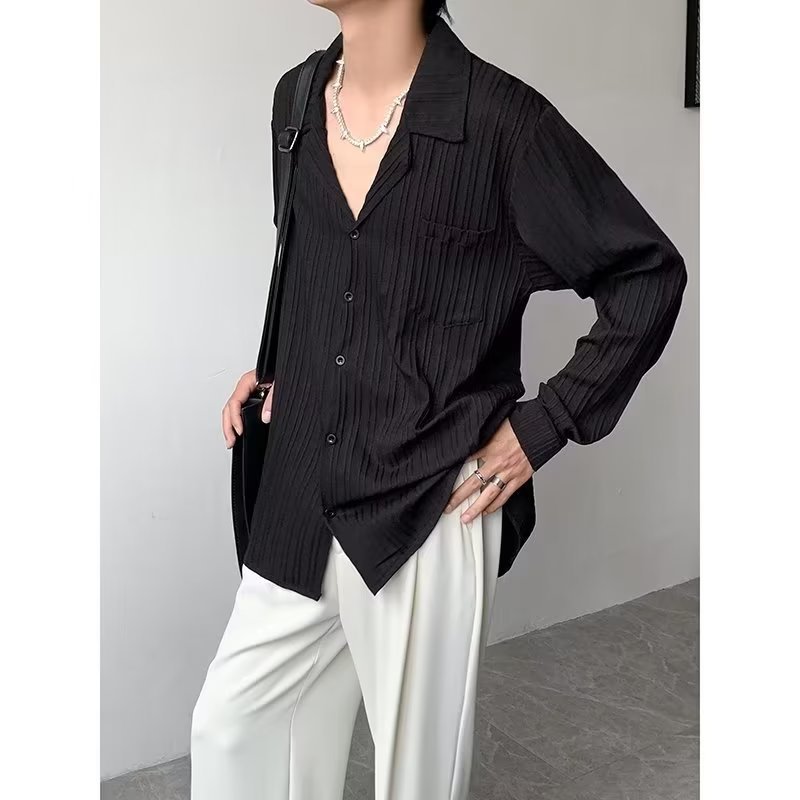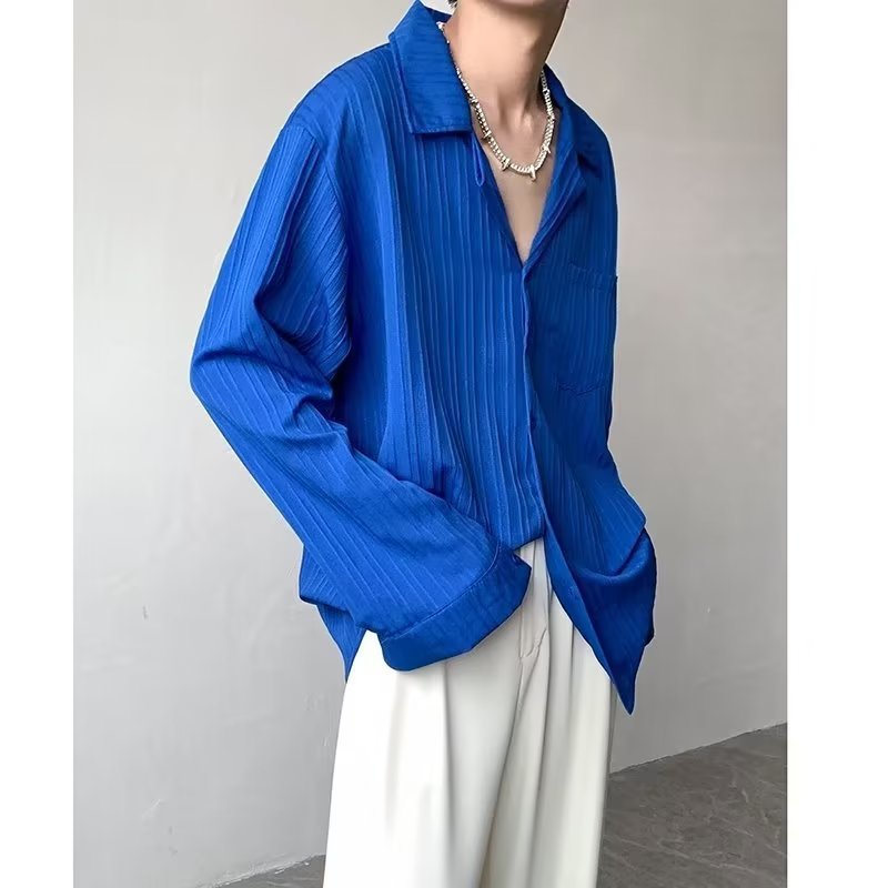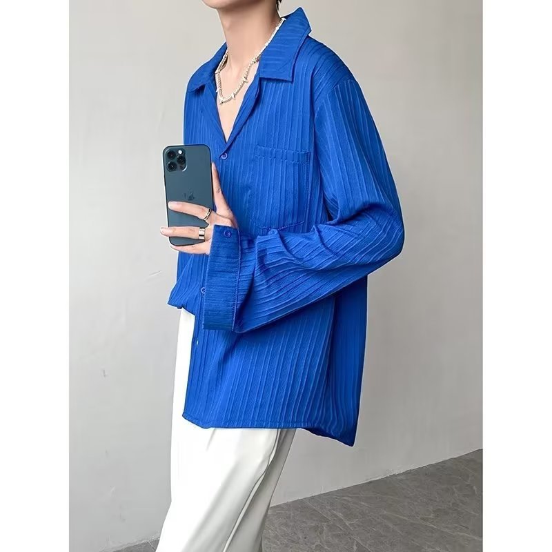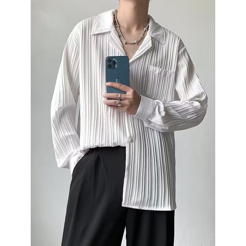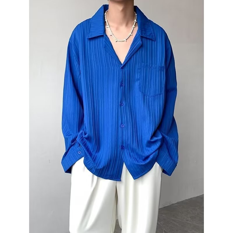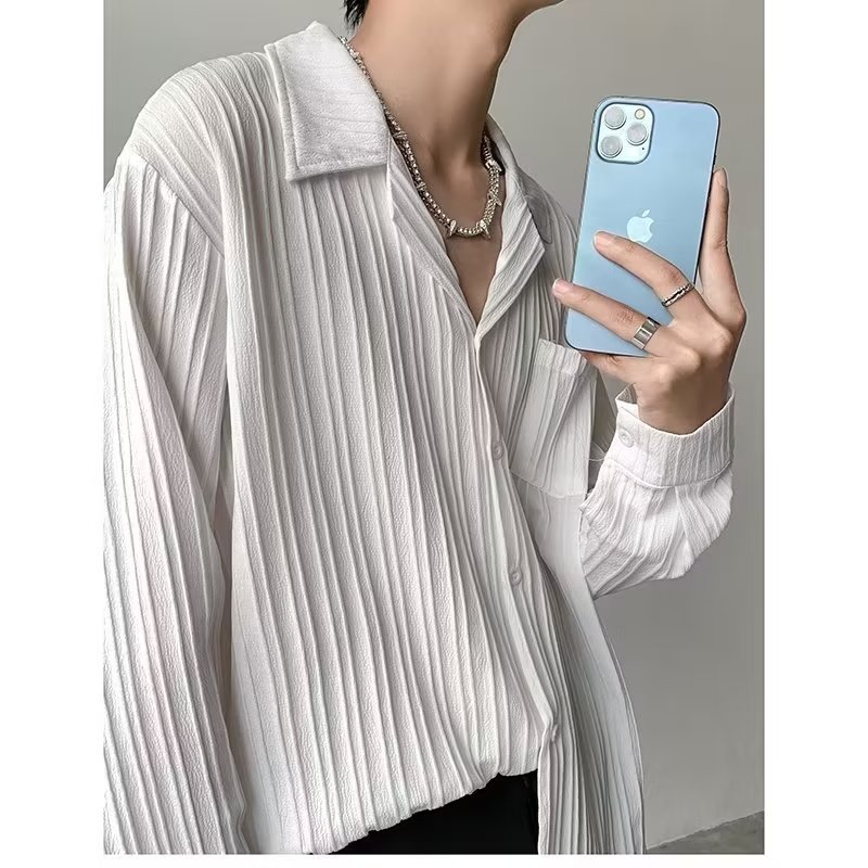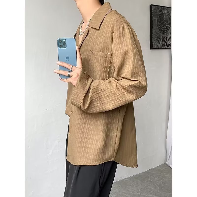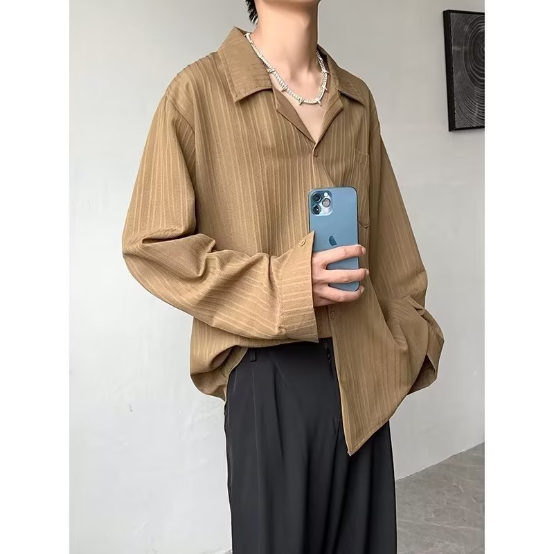 가벼운 성숙한 스타일 긴팔 셔츠 남자의 여름 유행 하이 엔드 센스 루즈 탑 인 한국 스타일 리퍼 잘 생긴 내부 셔츠