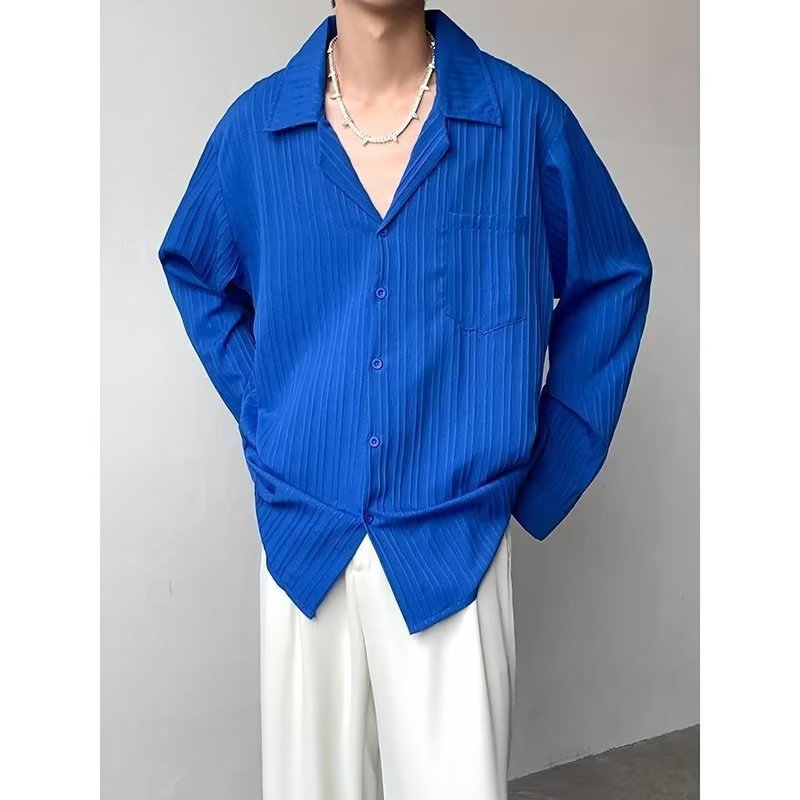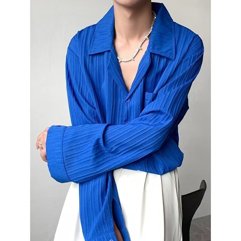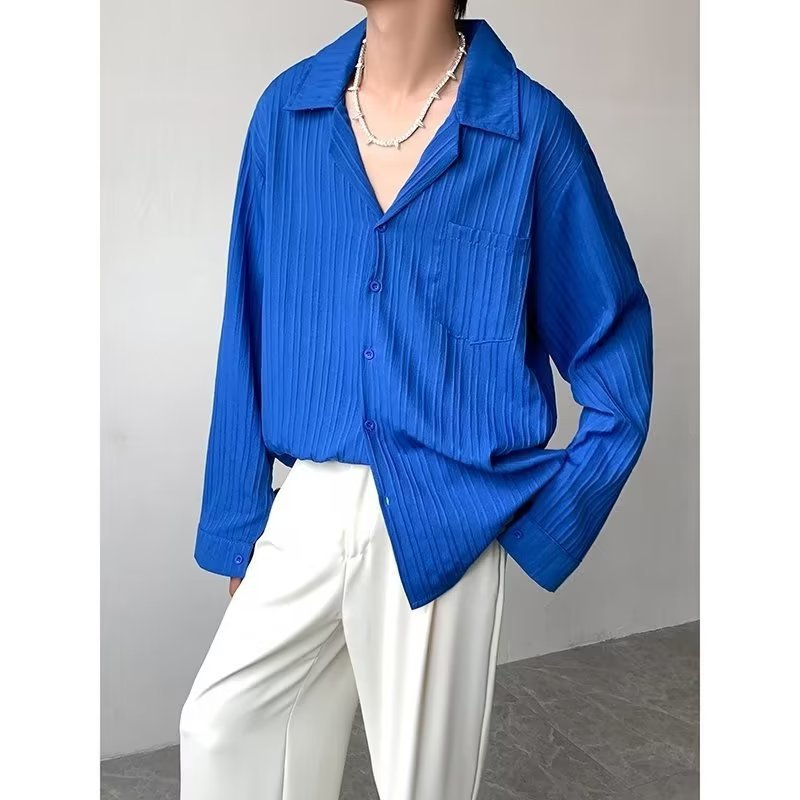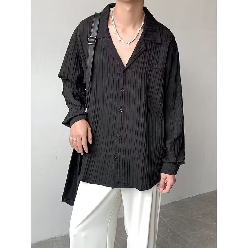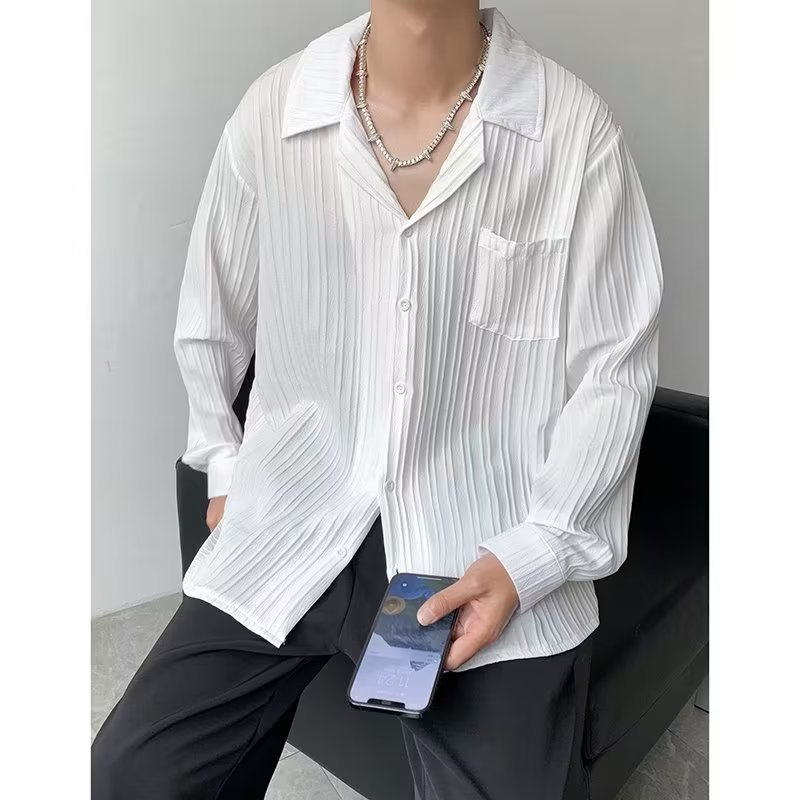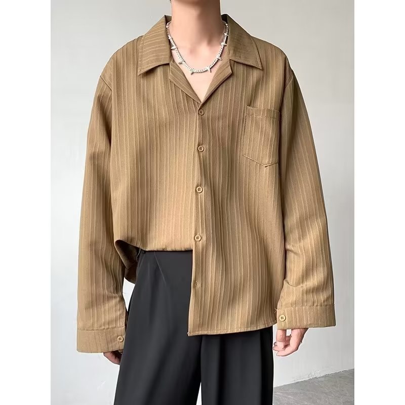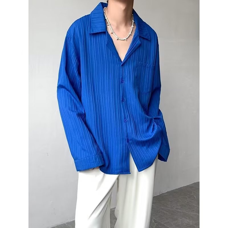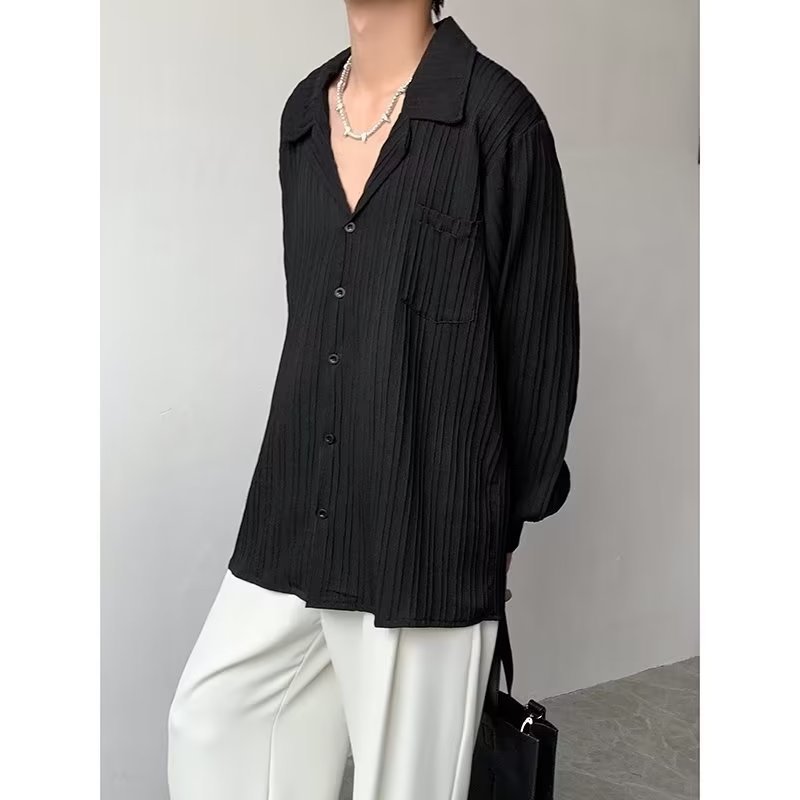 가벼운 성숙한 스타일 긴팔 셔츠 남자의 여름 유행 하이 엔드 센스 루즈 탑 인 한국 스타일 리퍼 잘 생긴 내부 셔츠