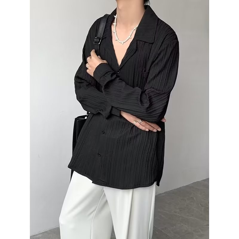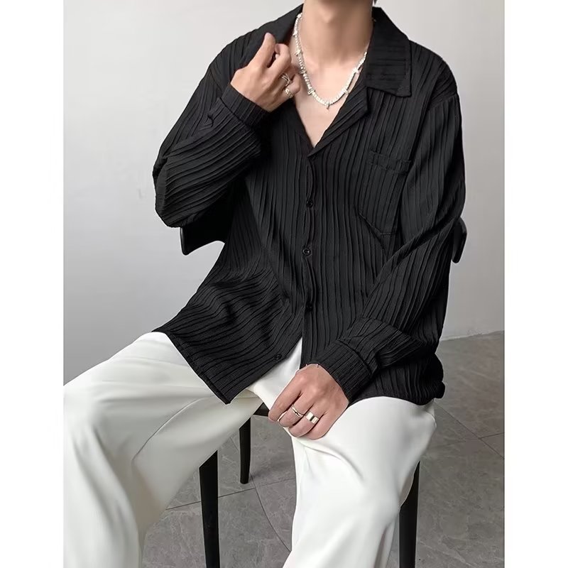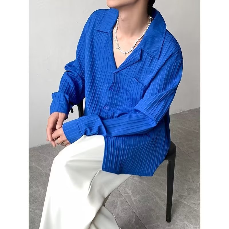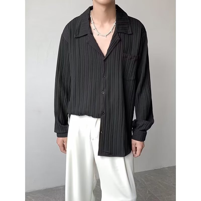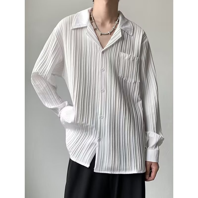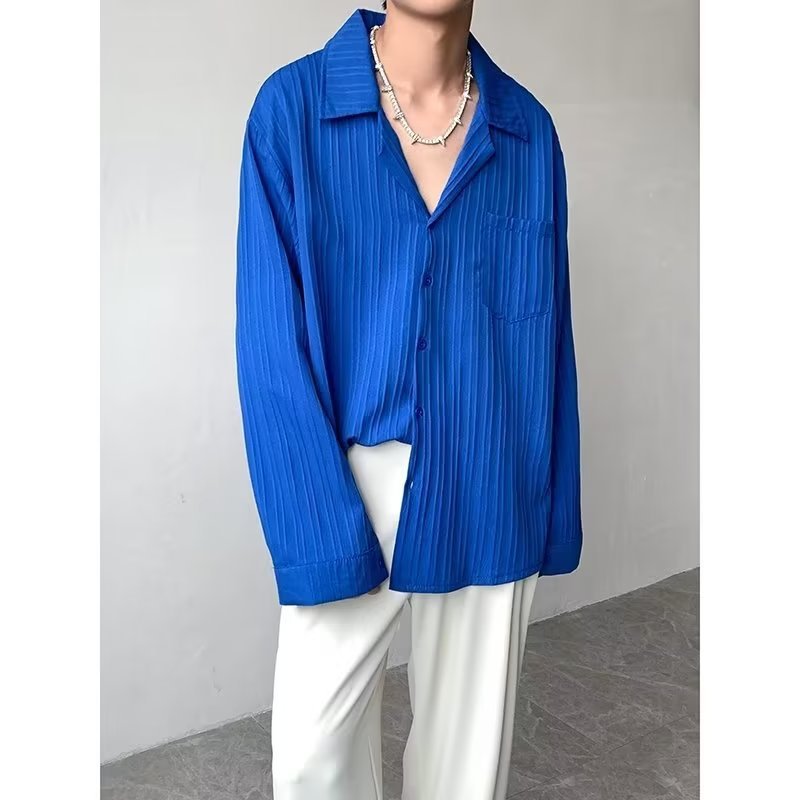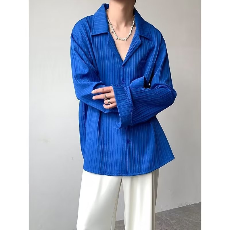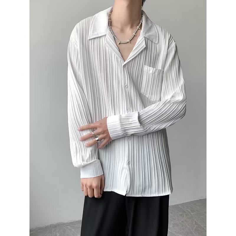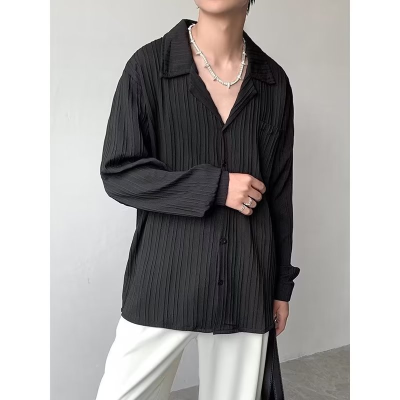 가벼운 성숙한 스타일 긴팔 셔츠 남자의 여름 유행 하이 엔드 센스 루즈 탑 인 한국 스타일 리퍼 잘 생긴 내부 셔츠