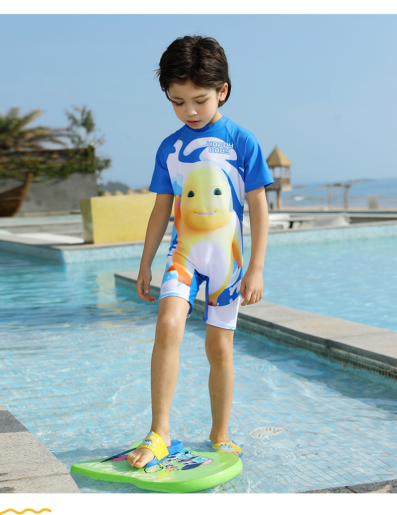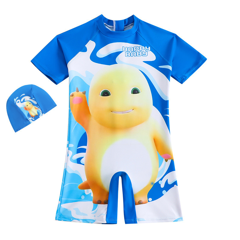 수영 모자 아기 해변 태양 보호 수영복 만화 빠른 건조 온천 소년 수영복을위한 소년의 작은 우유 용 양면 수영복스토어 가기