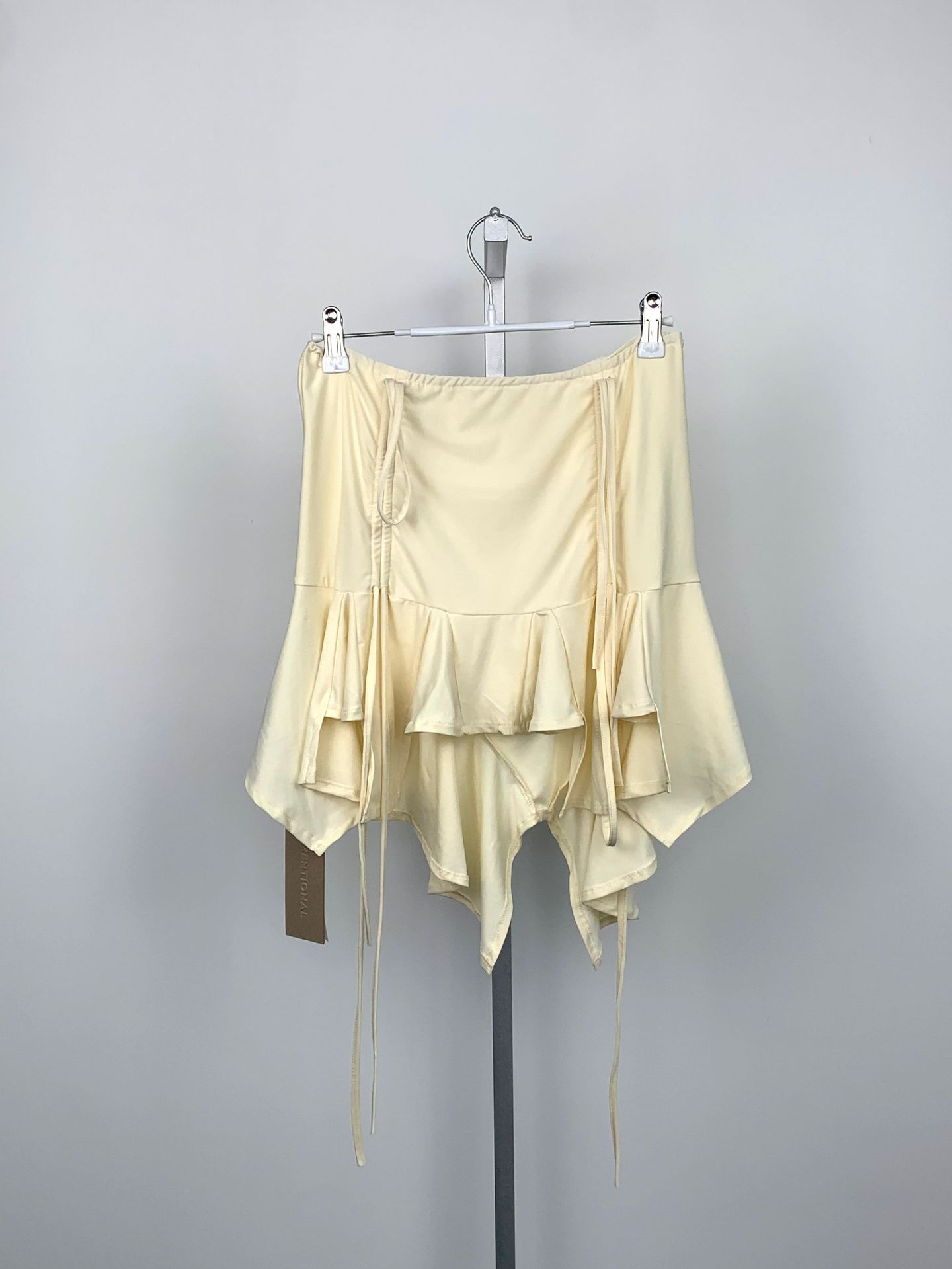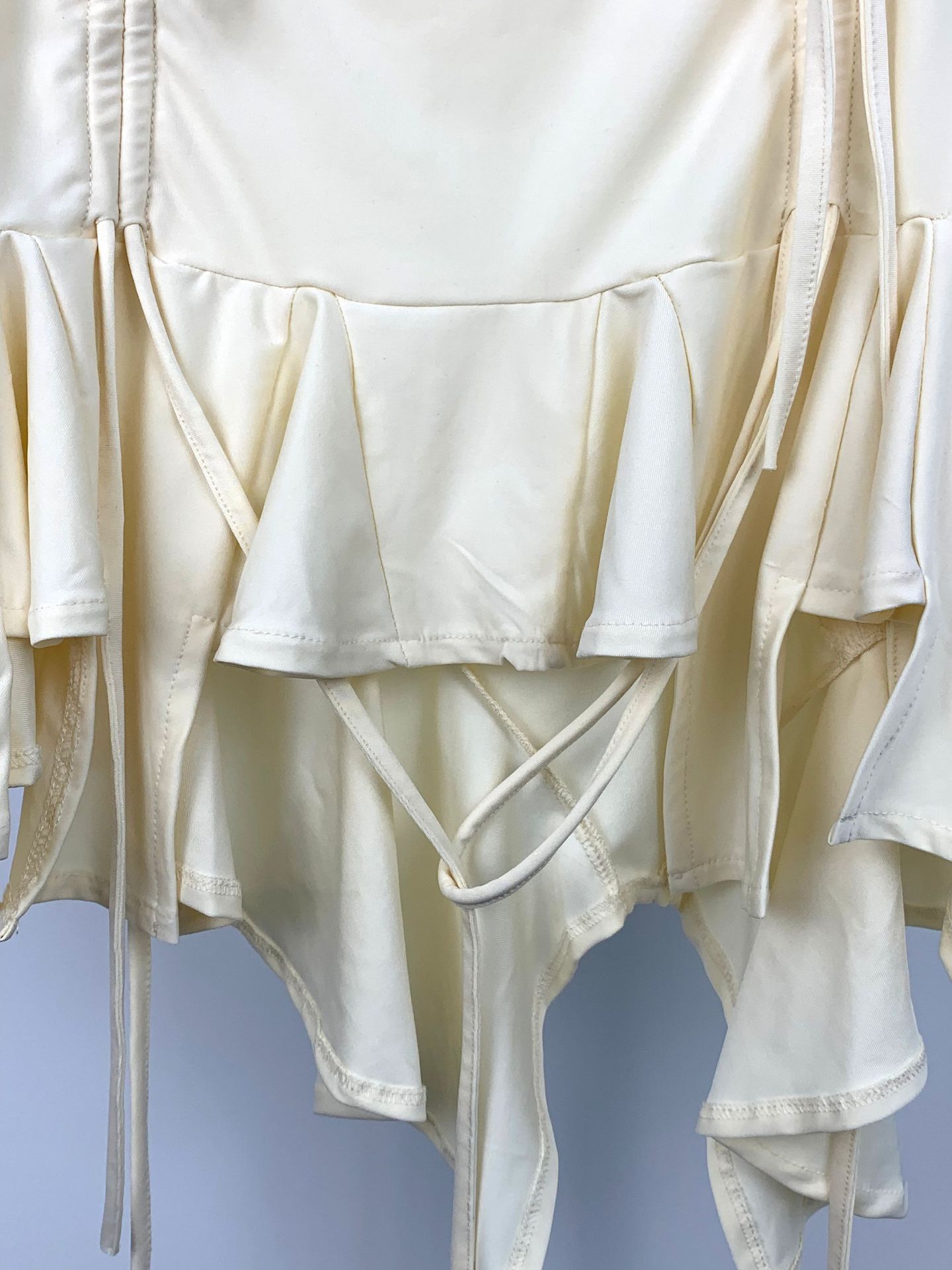 Y2K 고딕 펑크 불규칙한 미니 스커트 스커트 레이플드 주름 레이스 업 스커트