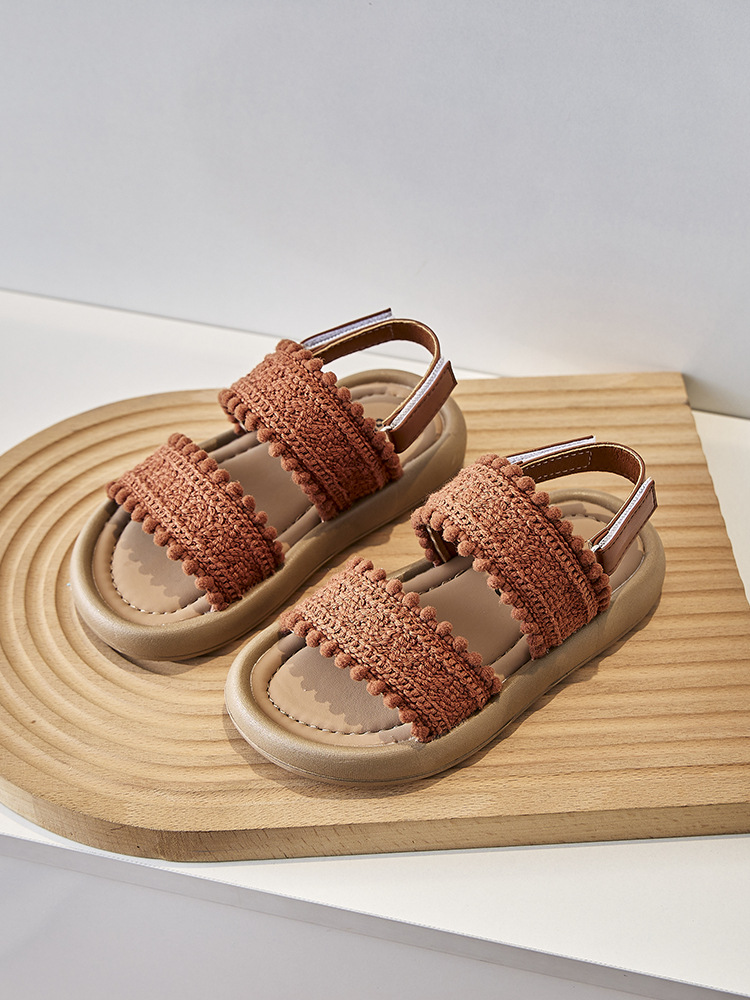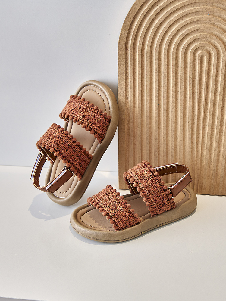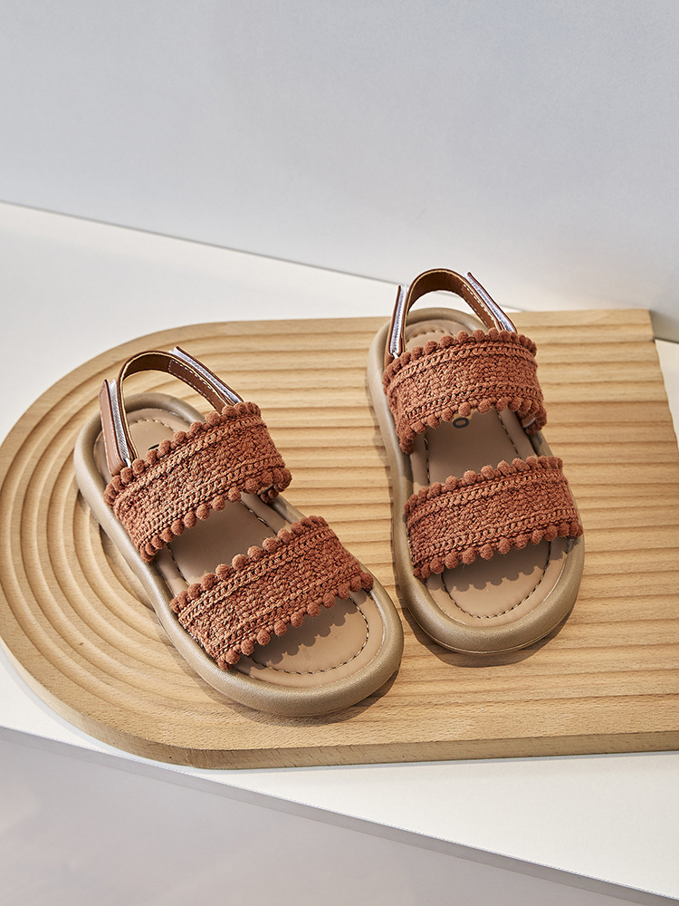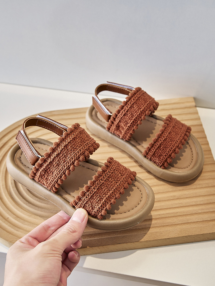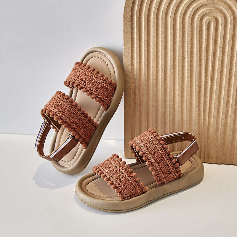 어린이 샌들 작은 향기 오픈 발가락 부드러운 밑창 미끄럼 방지 겉옷 어린 소녀 유행 샌들 2025 새로운 소녀 샌들
