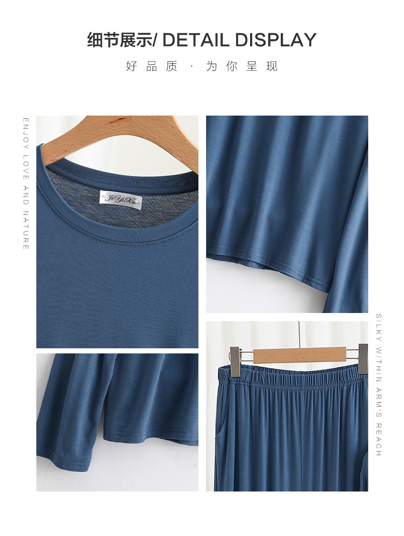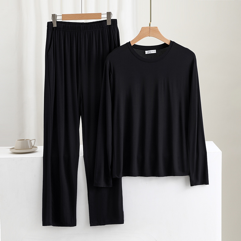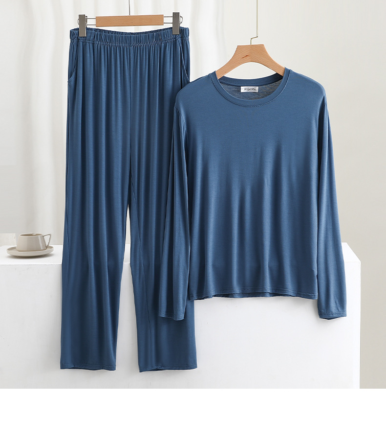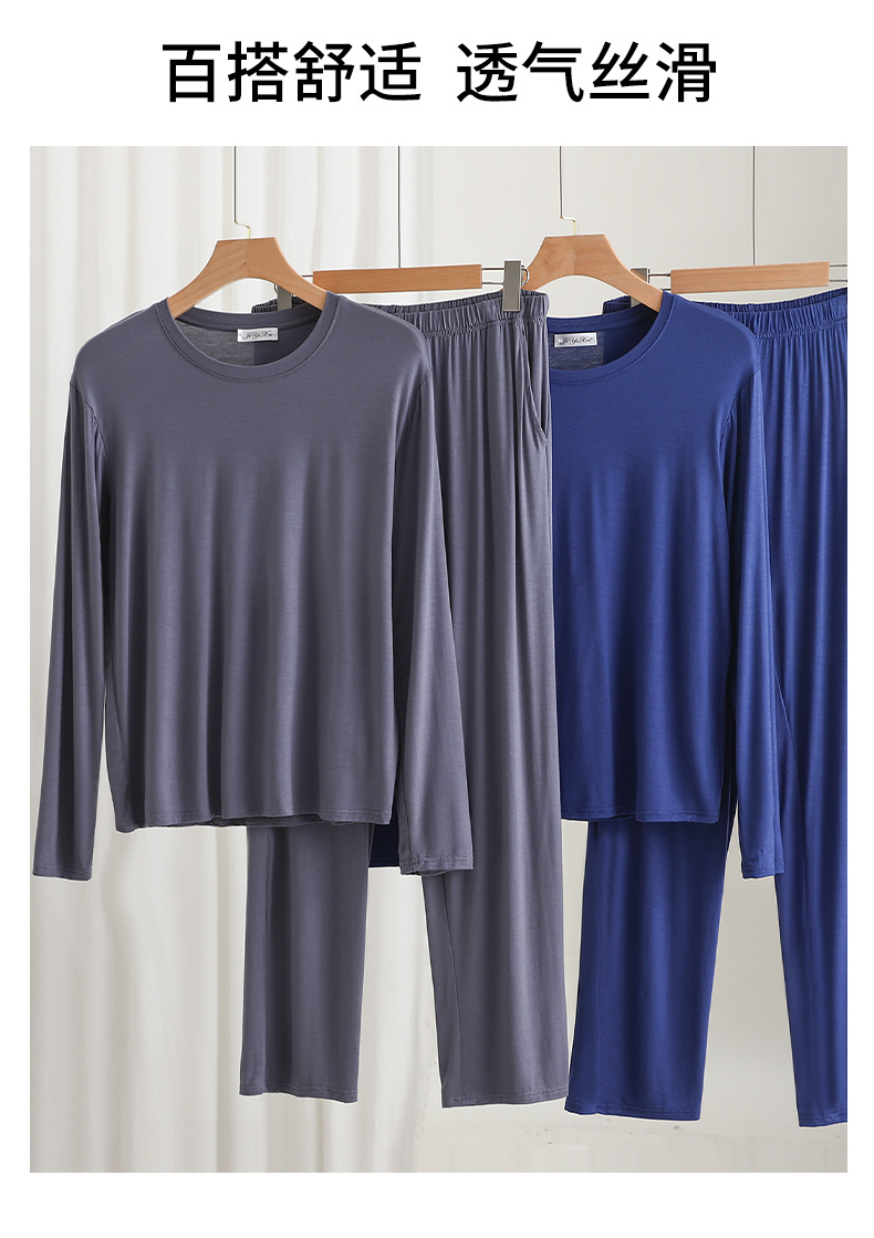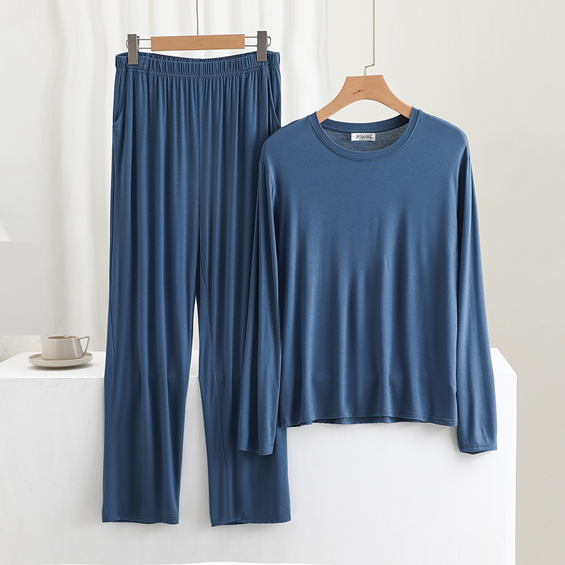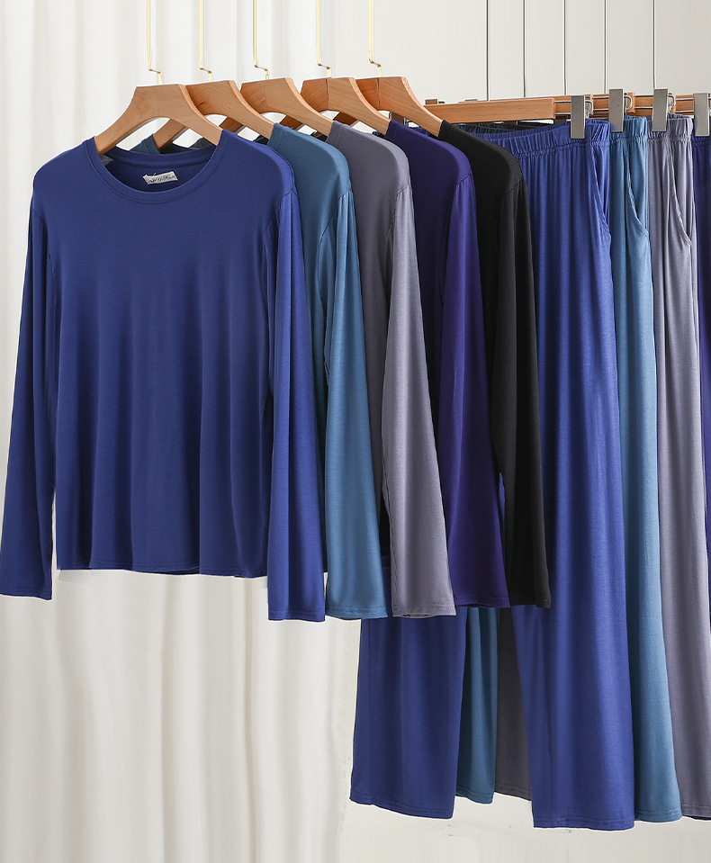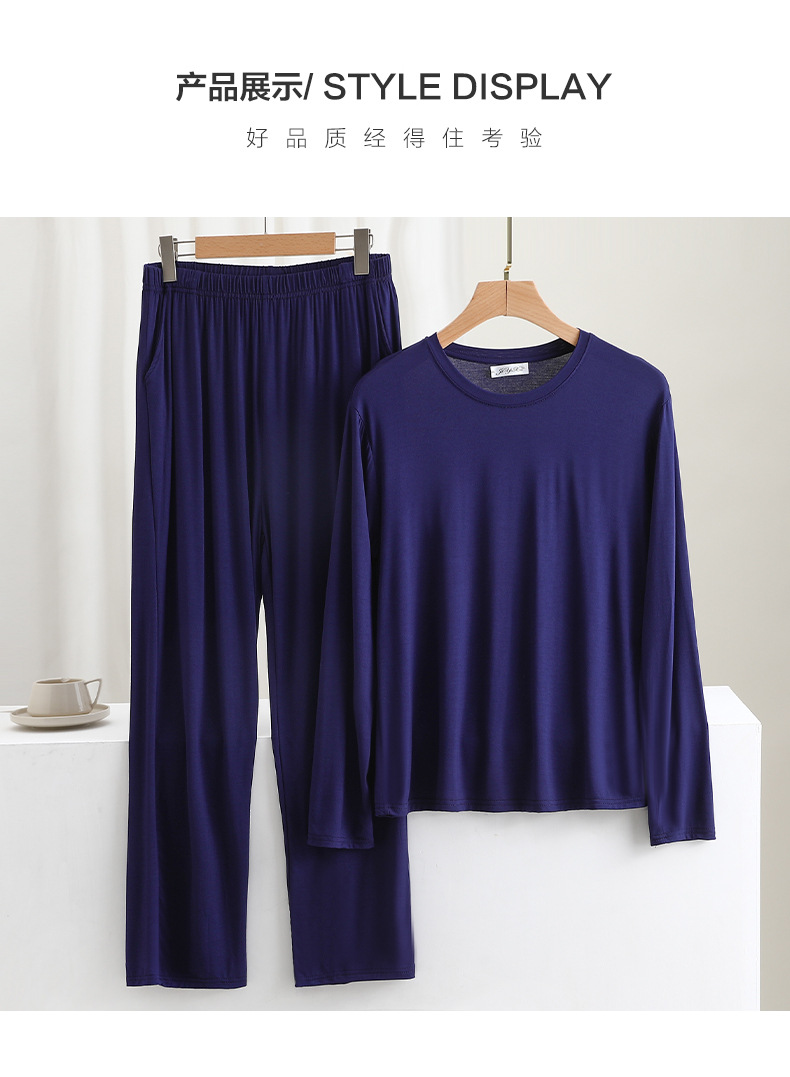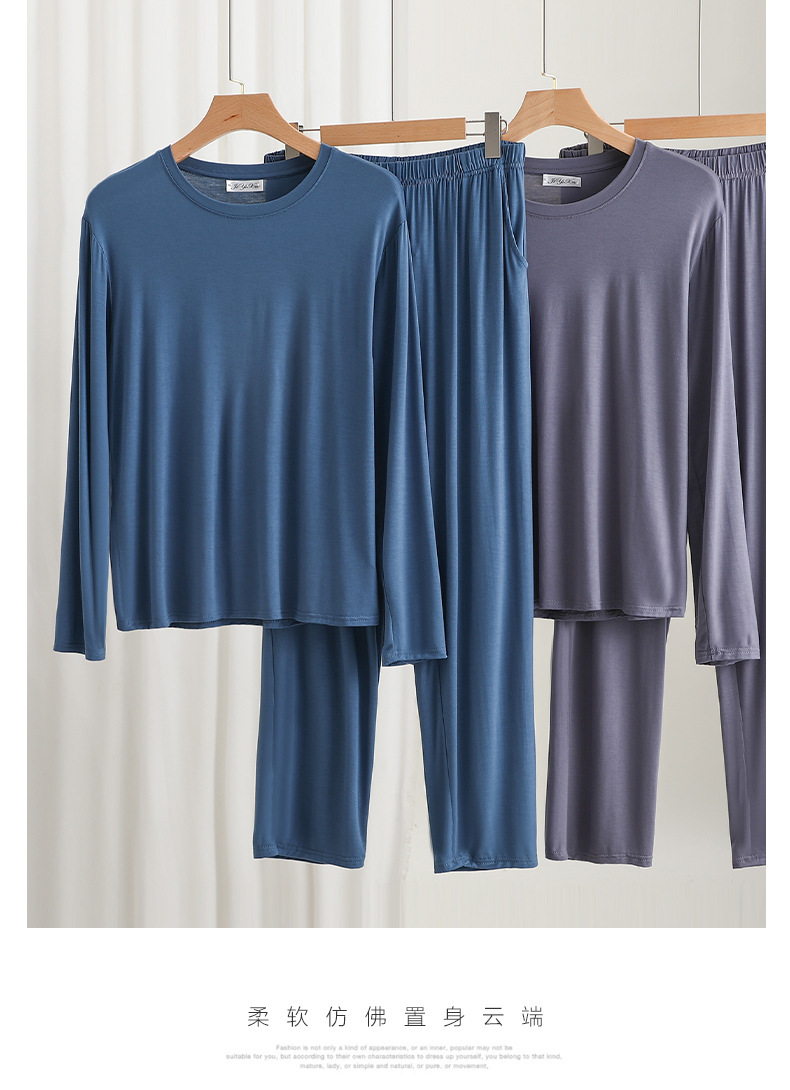 莫代尔男士宽松长袖长裤家居服套装可外穿大码睡衣睡裤休闲两件套