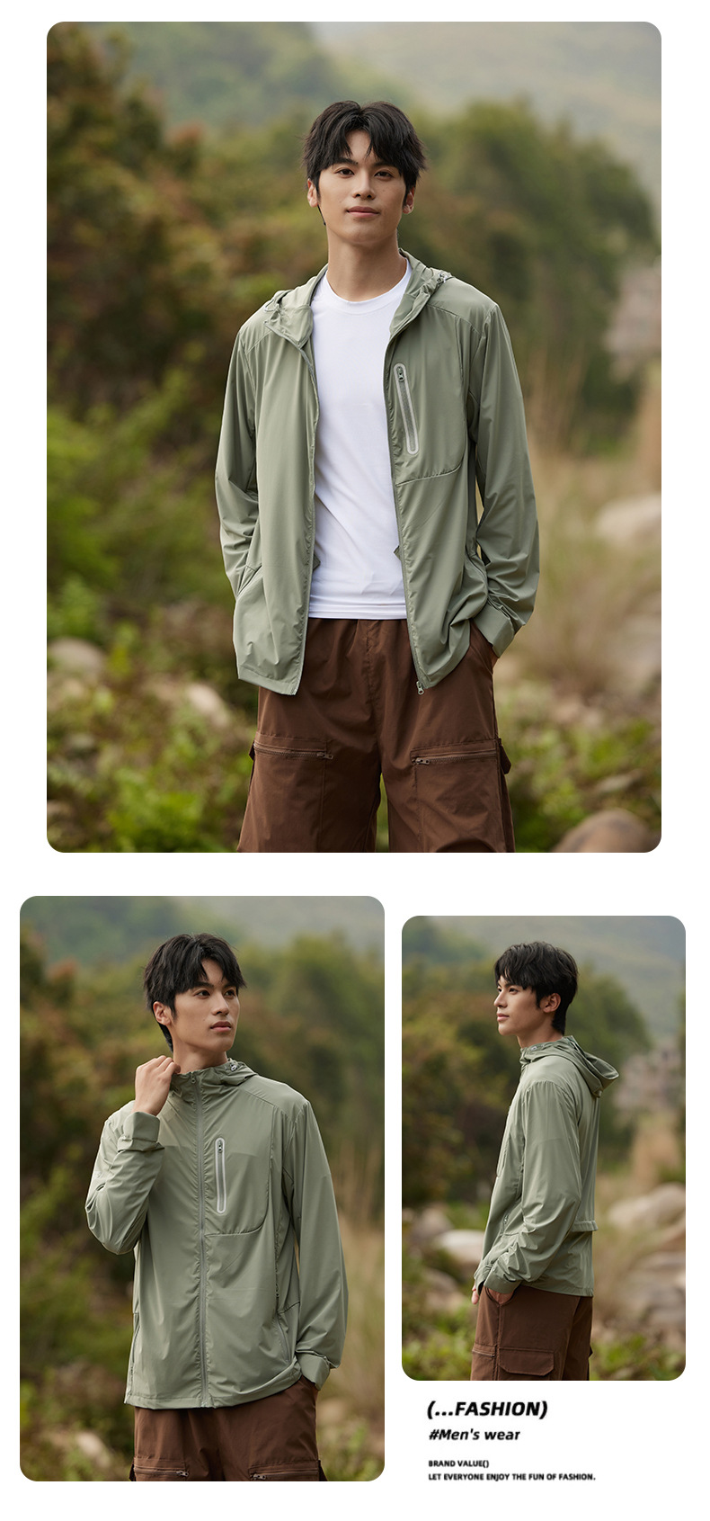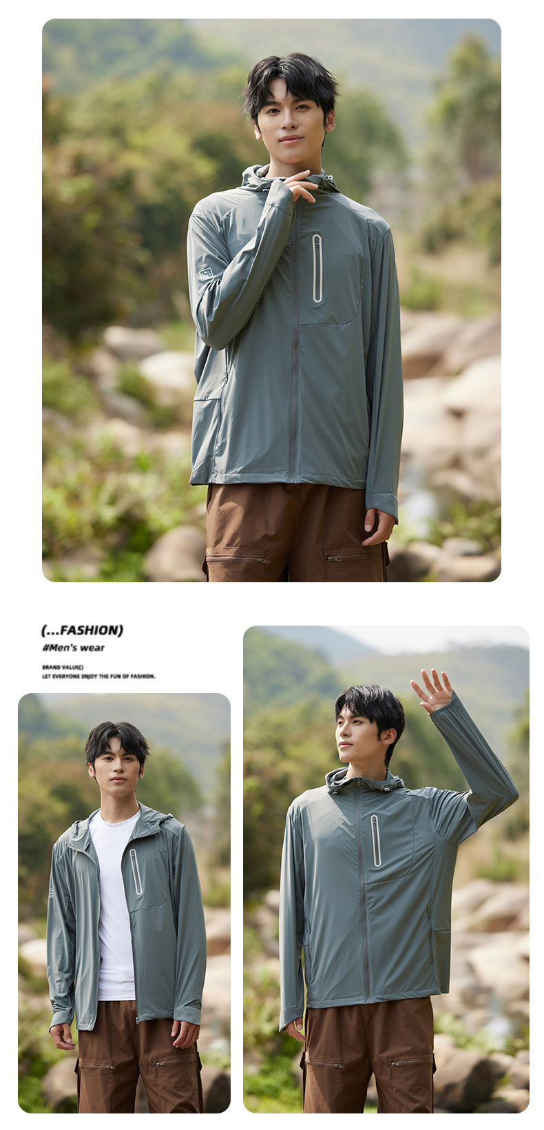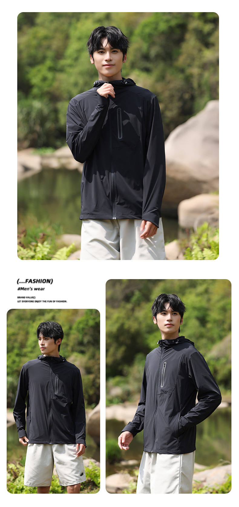 여름 남성 선 스크린 의류 아이스 실크 얇은 통기성 재킷 야외 선 스크린 의류 UV 보호 낚시 의류 스킨 의류