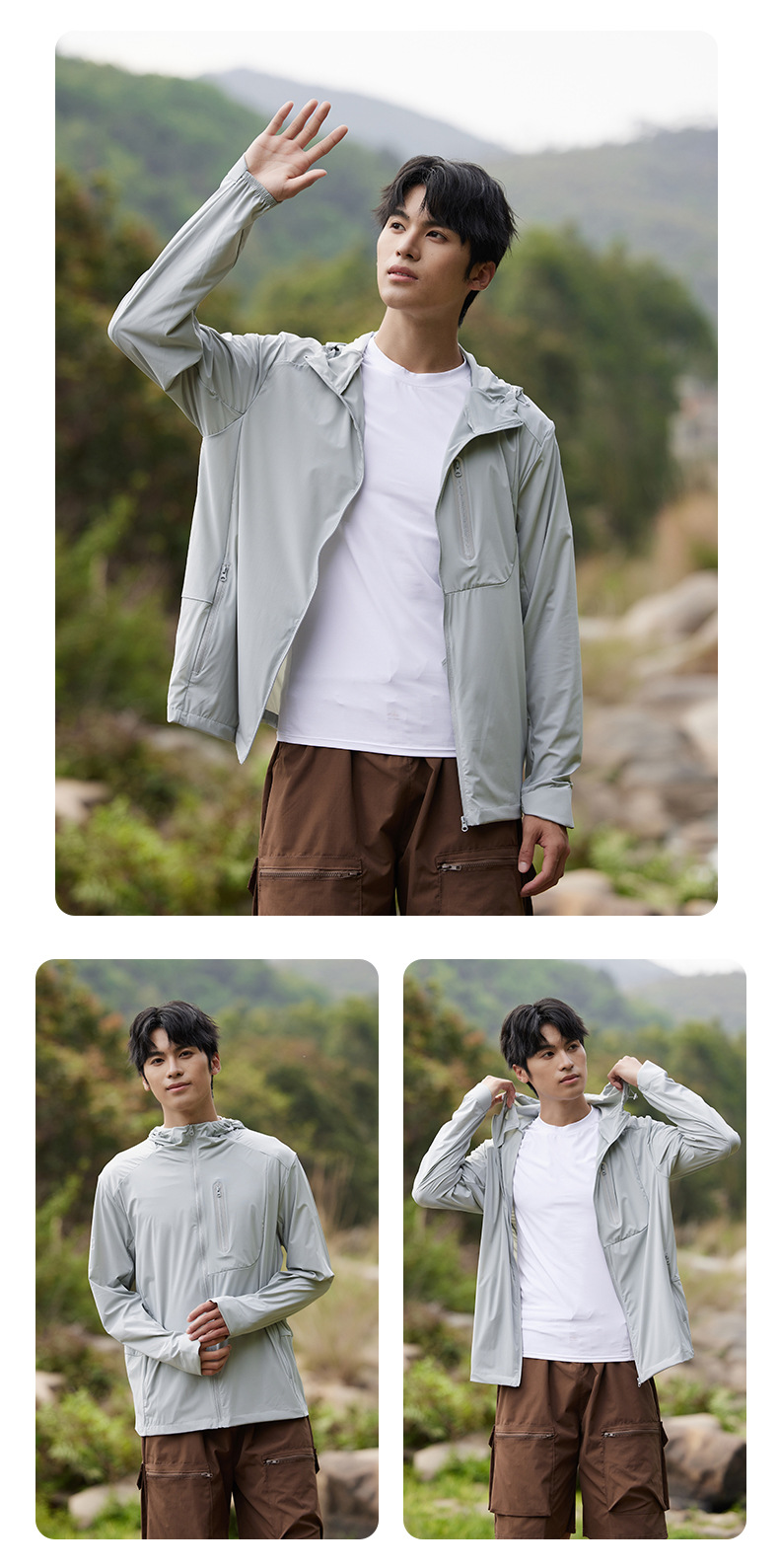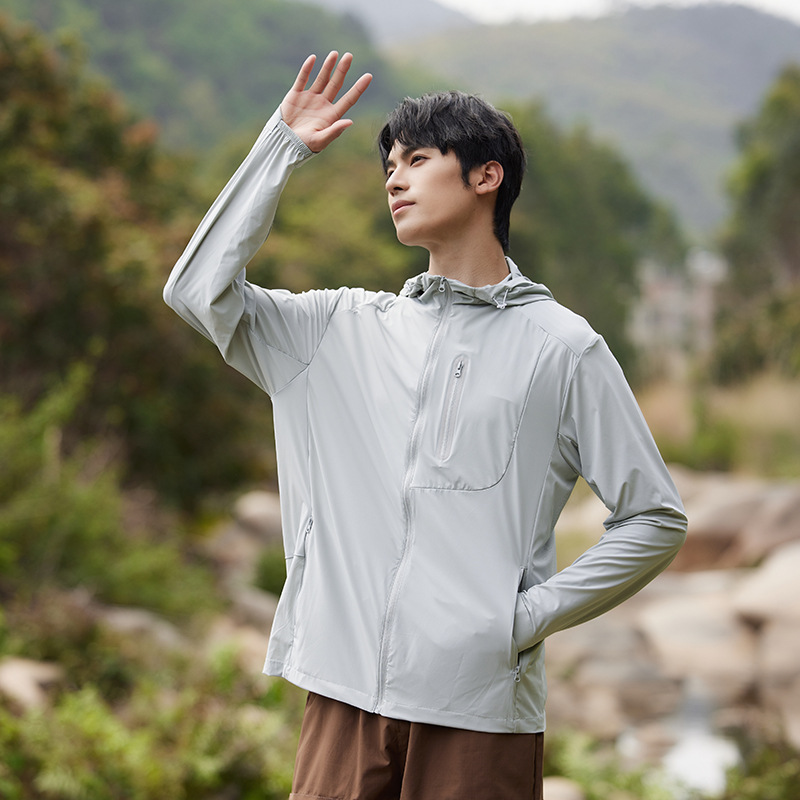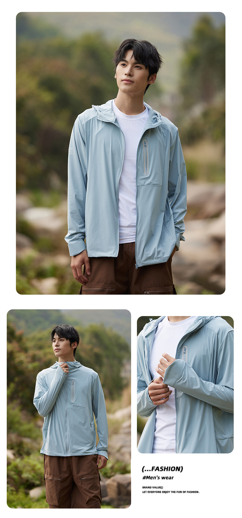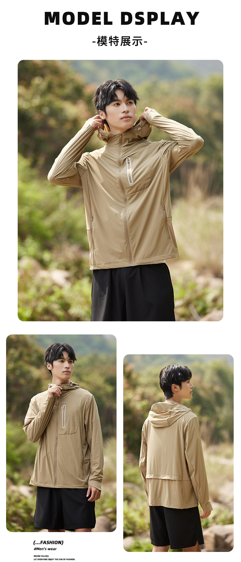 여름 남성 선 스크린 의류 아이스 실크 얇은 통기성 재킷 야외 선 스크린 의류 UV 보호 낚시 의류 스킨 의류