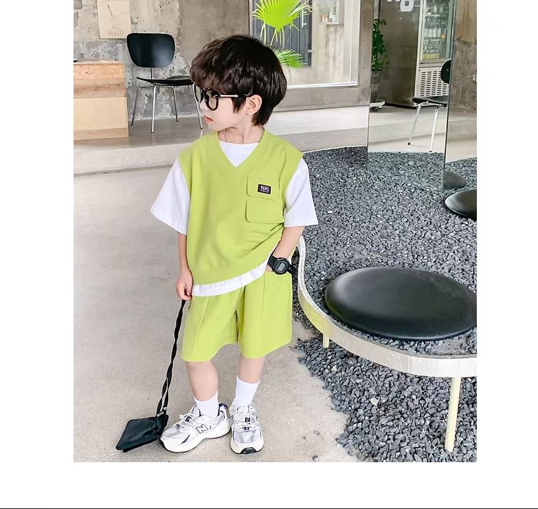 • 녹색 가짜 투피스 여름 세트 JIECHEN