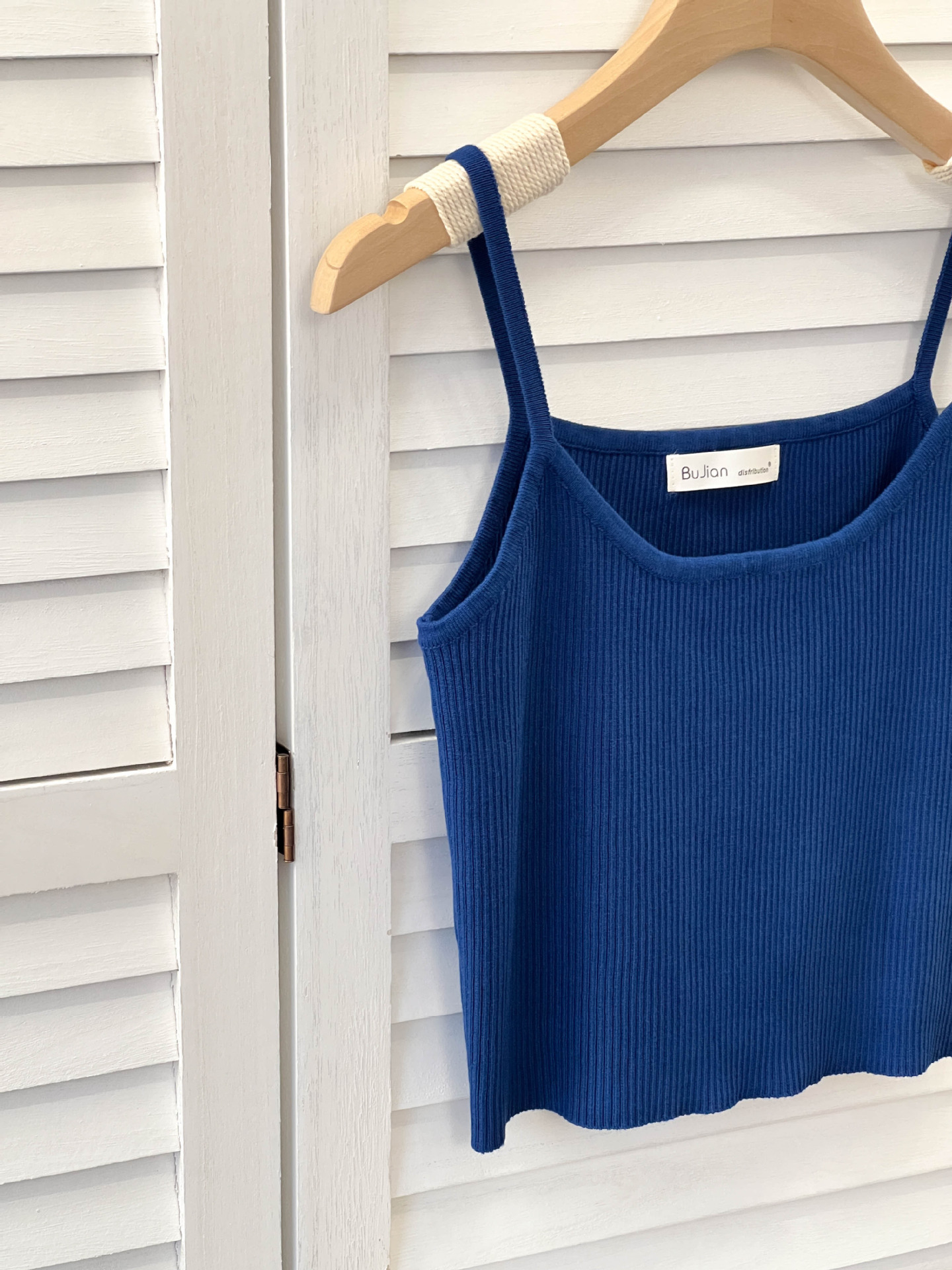 조용한 여름 빈티지 홍콩 스타일 플랫 니트 카미 솔 블루 슬리밍 짧은 정상