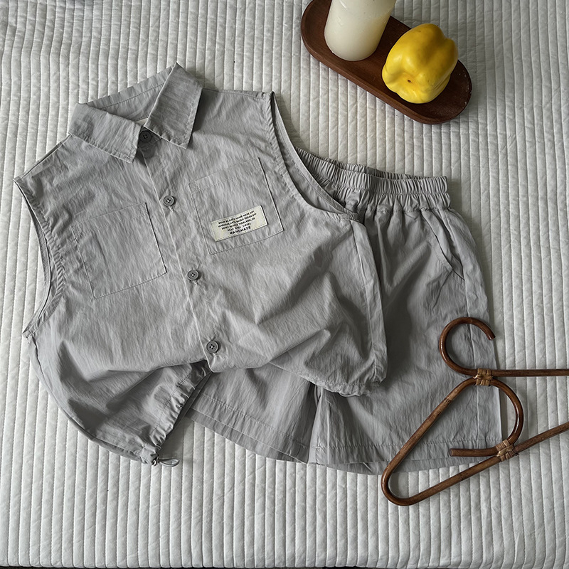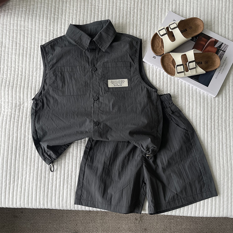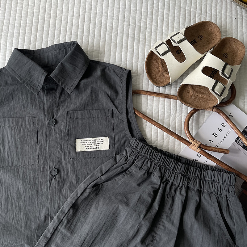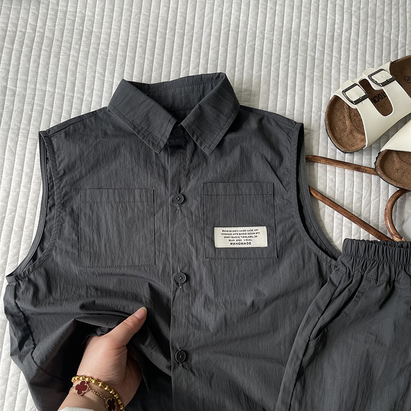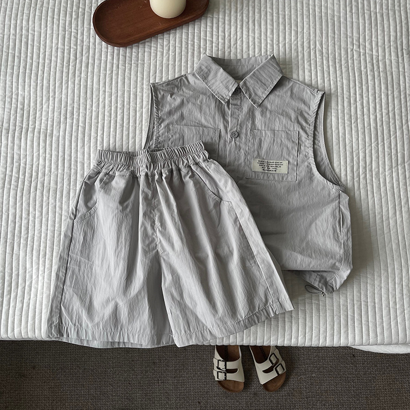 클리어런스 가격 어린이 세트 2024 여름 새 소년 소녀 민소매 셔츠 세트 아동복 도매