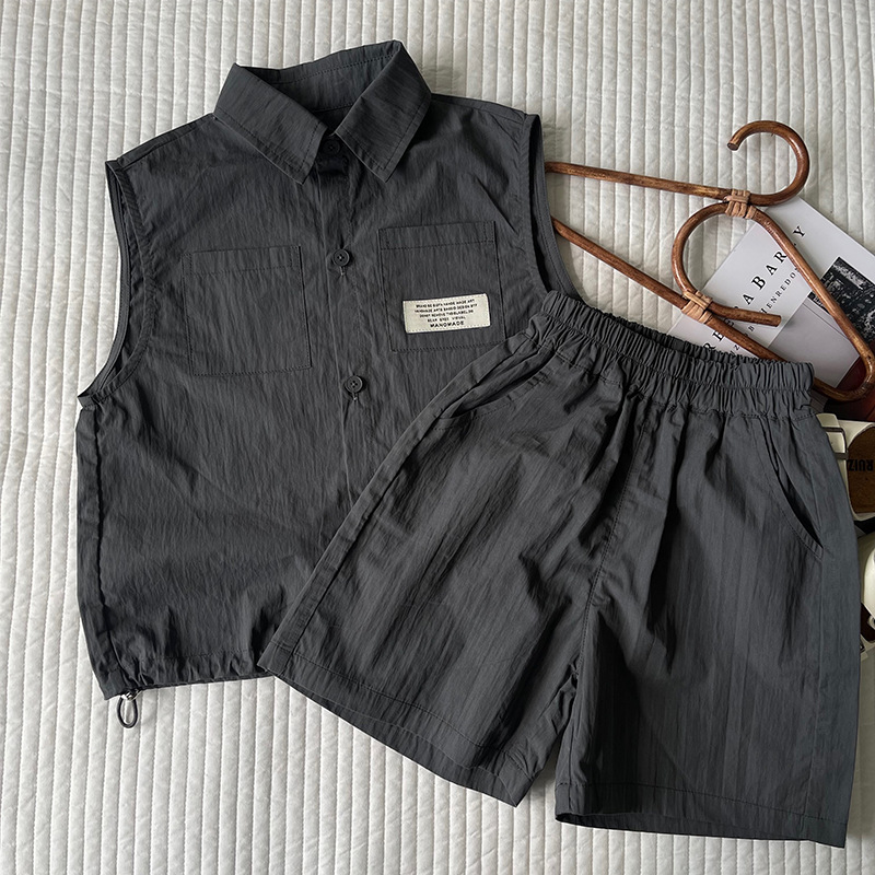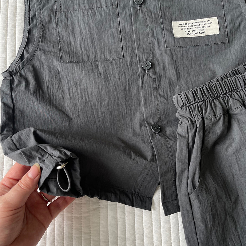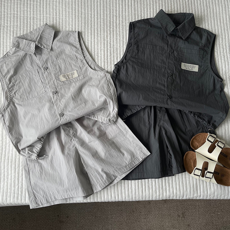 클리어런스 가격 어린이 세트 2024 여름 새 소년 소녀 민소매 셔츠 세트 아동복 도매스토어 가기