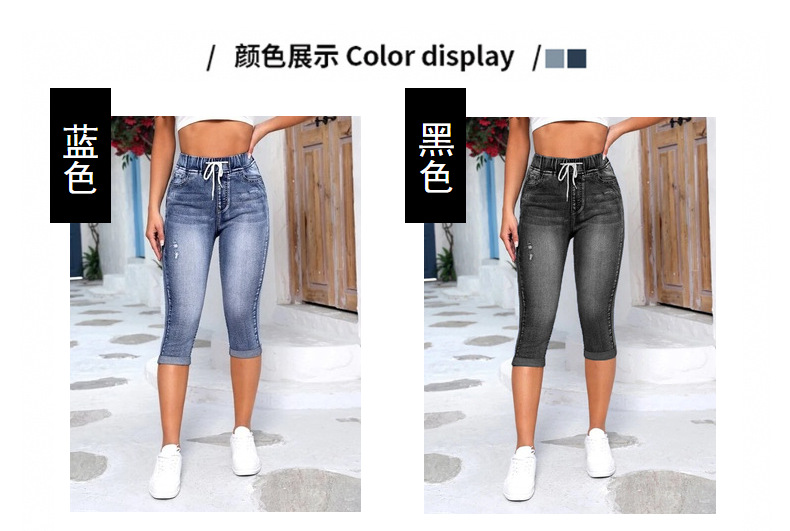 국경을 넘나 드는 유럽과 미국의 뜨거운 판매 여성 청바지 여성의 높은 탄성 허리 드로스트링 높은 허리 섹시한 찢어진 청바지스토어 가기