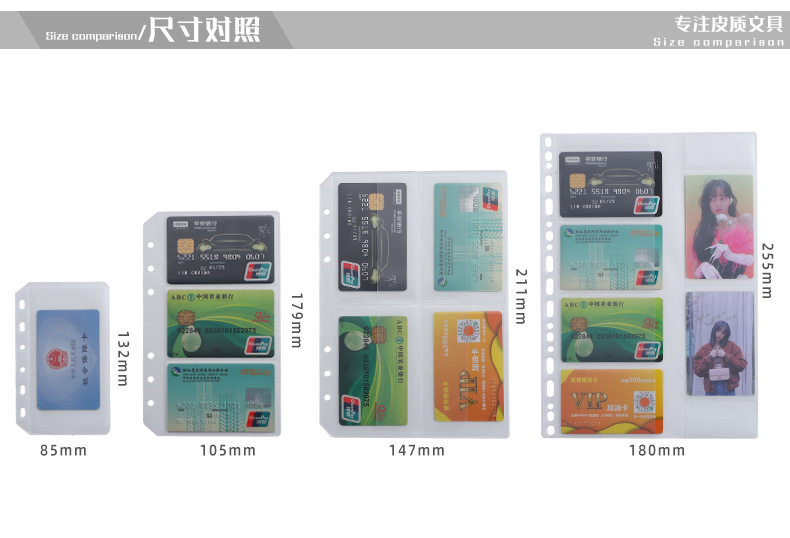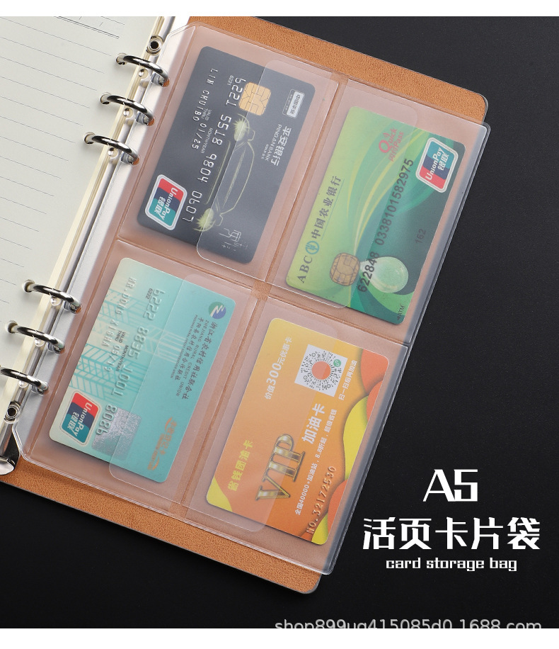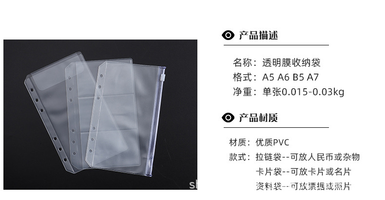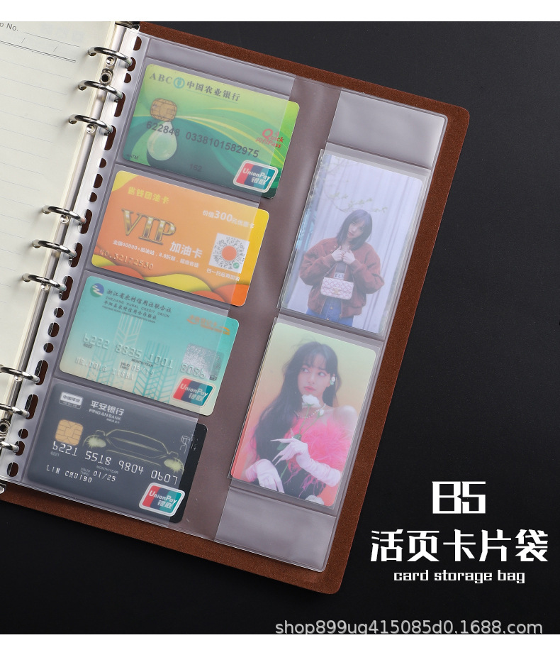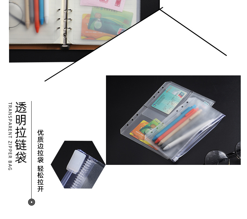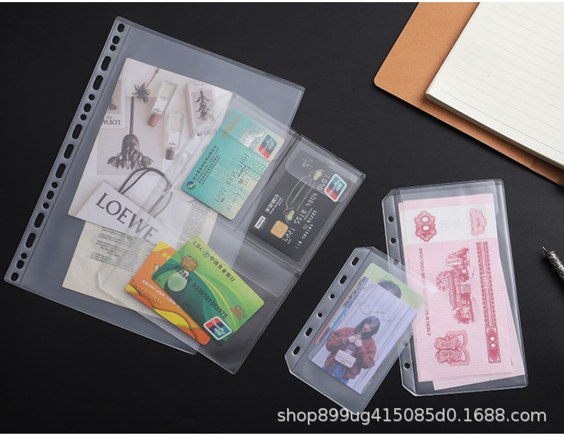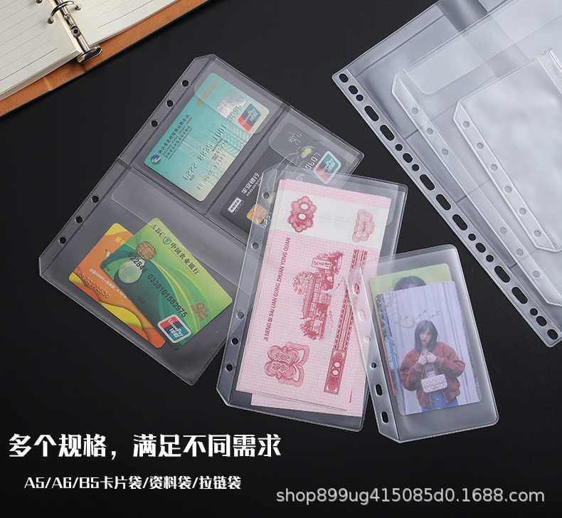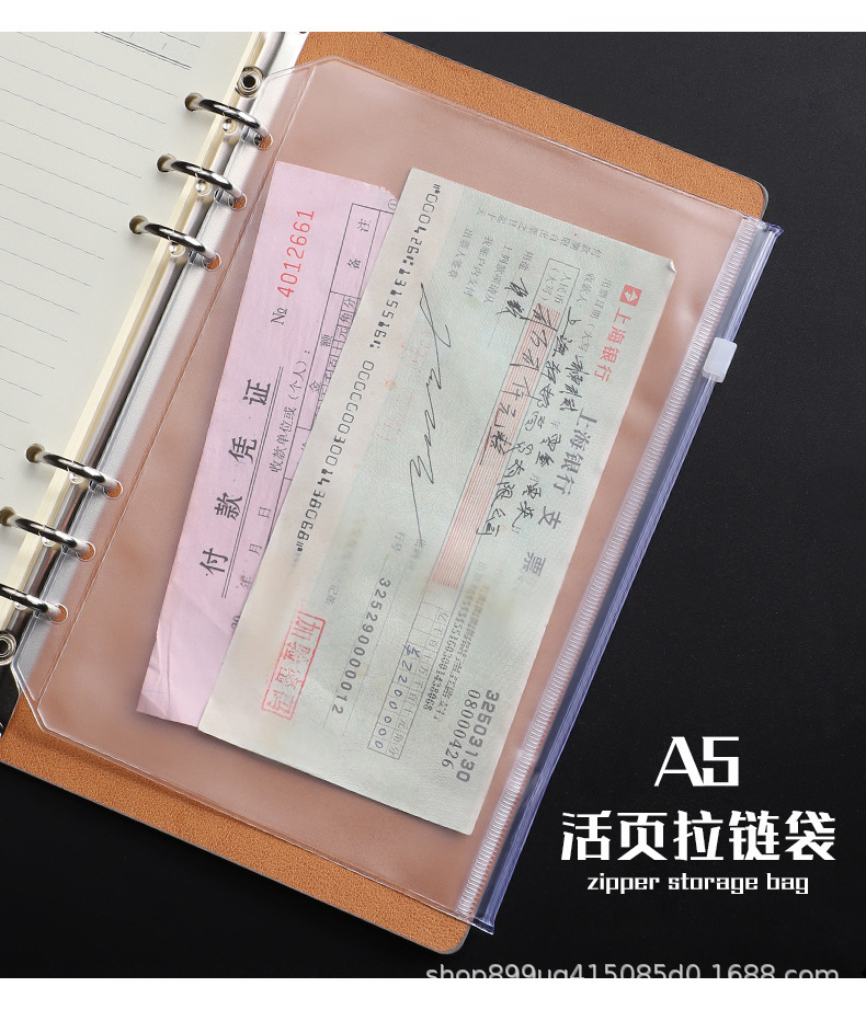 PVC 투명 가방 A6 느슨한 잎 지퍼 가방 A5 느슨한 잎 6 구멍 저장 정보 가방 명함 책 A7 느슨한 잎 가방